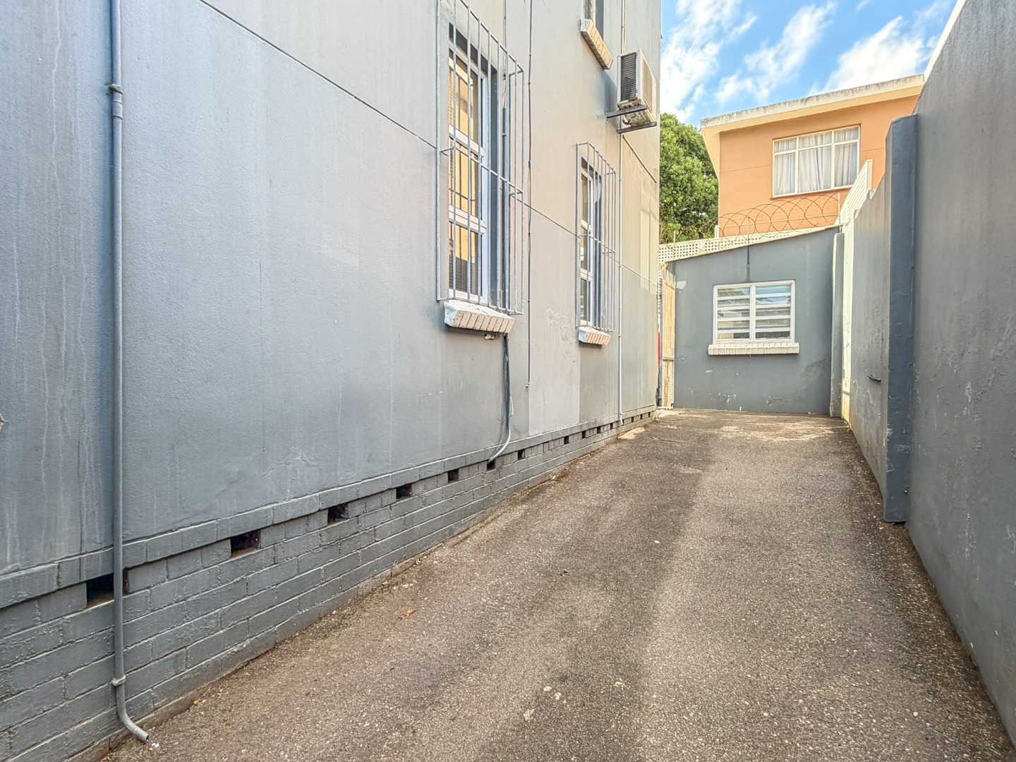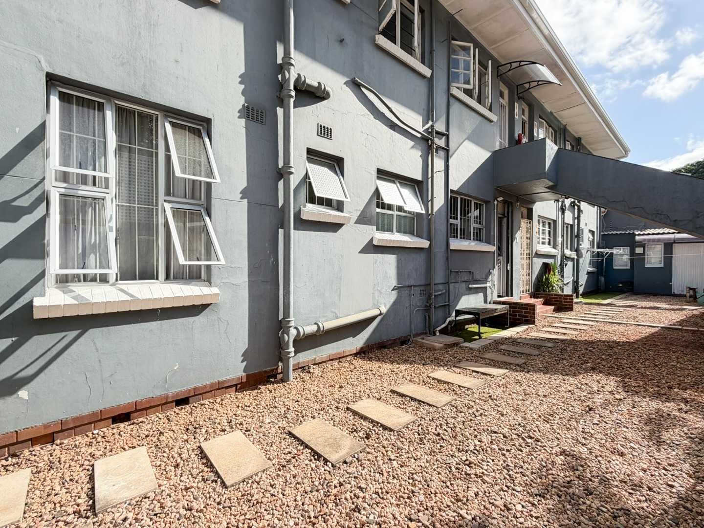 Large windows allow natural light and warmth to fill the living spaces, creating a bright and welcoming atmosphere throughout the home. The complex offers a communal outdoor entertainment area, ideal for relaxed braais and social gatherings. Residents also have access to a lock-up storeroom (currently shared between Units 2 and 4), providing valuable additional storage space. Parking is well catered for, with two secure parking bays located behind a roll-up garage door, as well as an additional parking space outside the complex. The area behind the garage remains accessible to the Body Corporate for maintenance, refuse removal, and general management.
