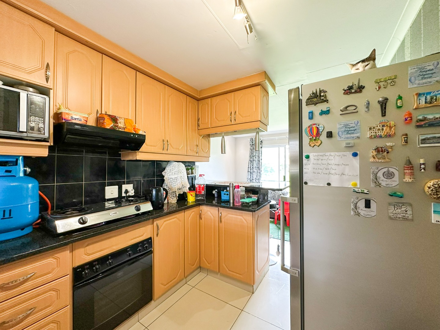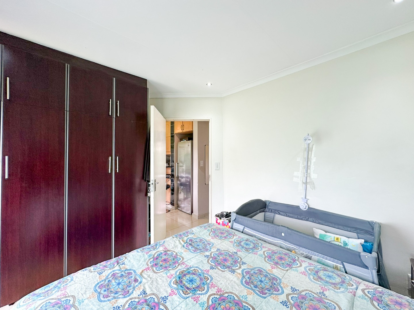 You are greeted by an open plan fitted kitchen with built in cupboards, an electric stove and oven. Lounge area leads to the rest of the apartment. Two bedrooms with built in cupboards. Fully tiled spacious bathroom.