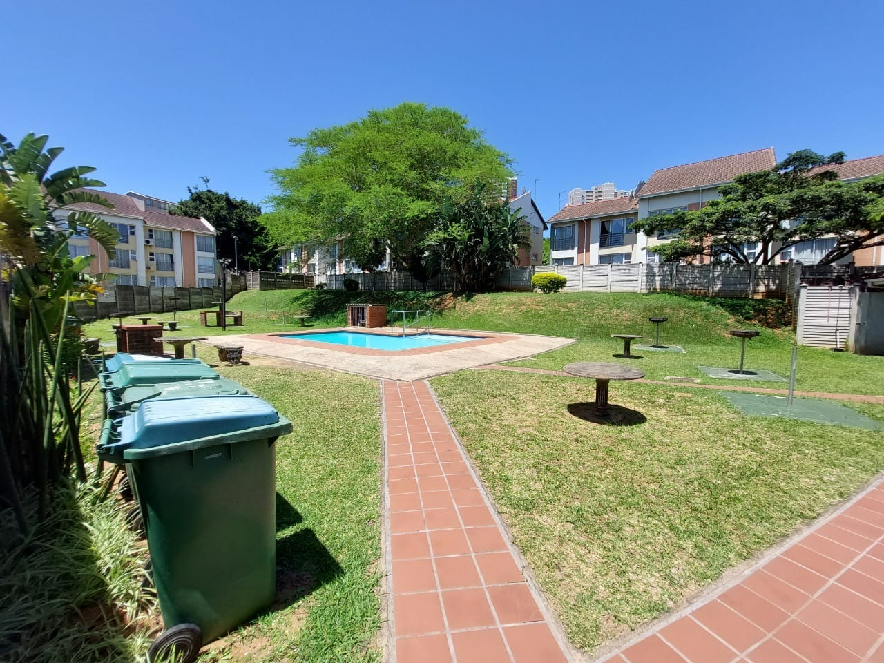 Communal pool. 24 hour manned security guard, electric fence, wall fence, boom gates, security post and CCTV cameras are the security features that this complex posses.