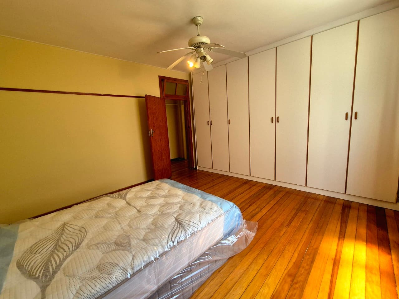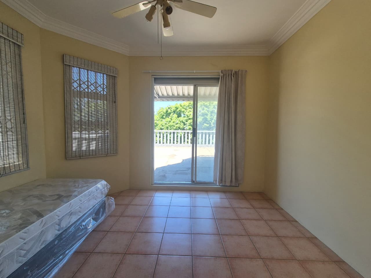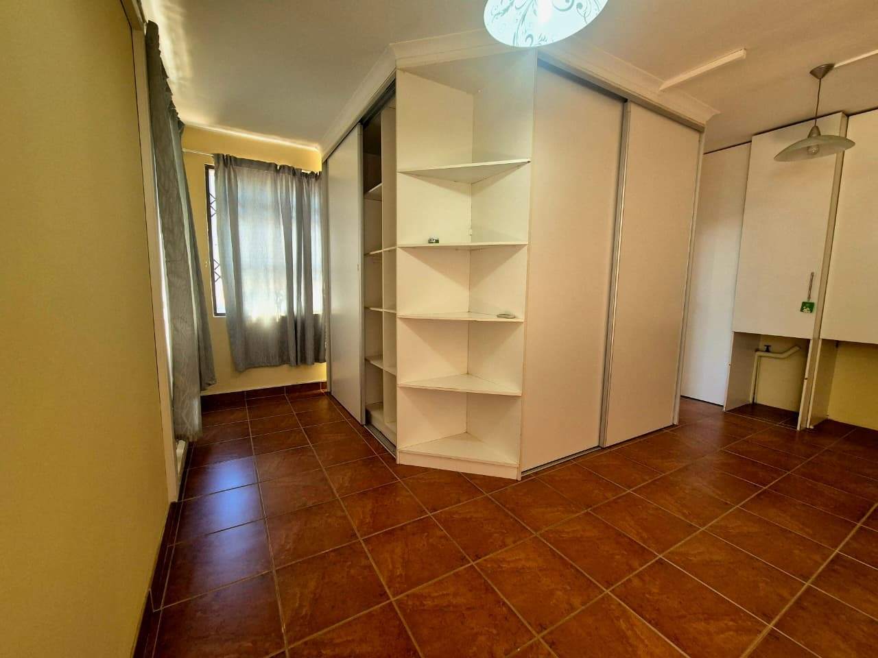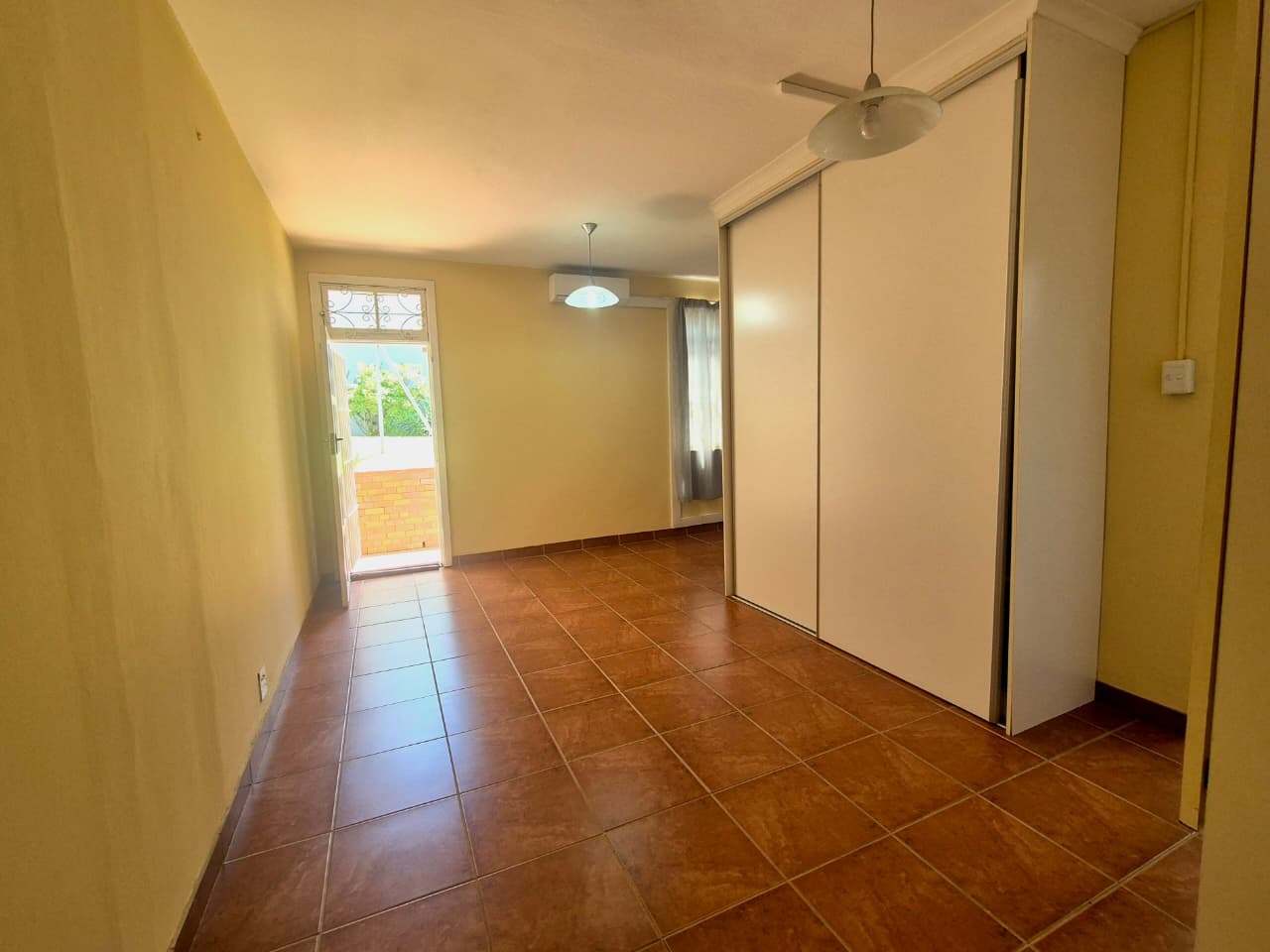 Down the hallway is the second bedroom, which offers ample built-in cupboard space. At the end of the passage is the main bedroom, featuring extensive storage and direct access to the communal outdoor area.