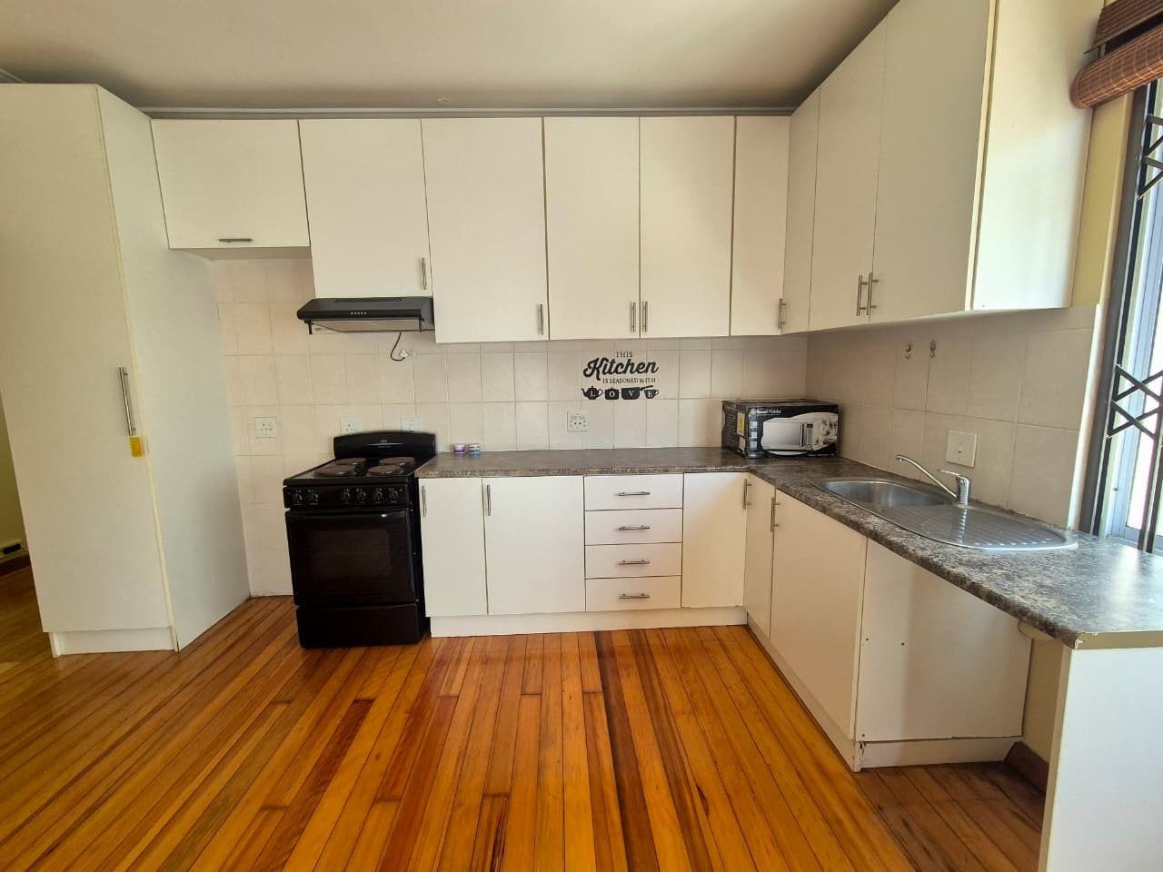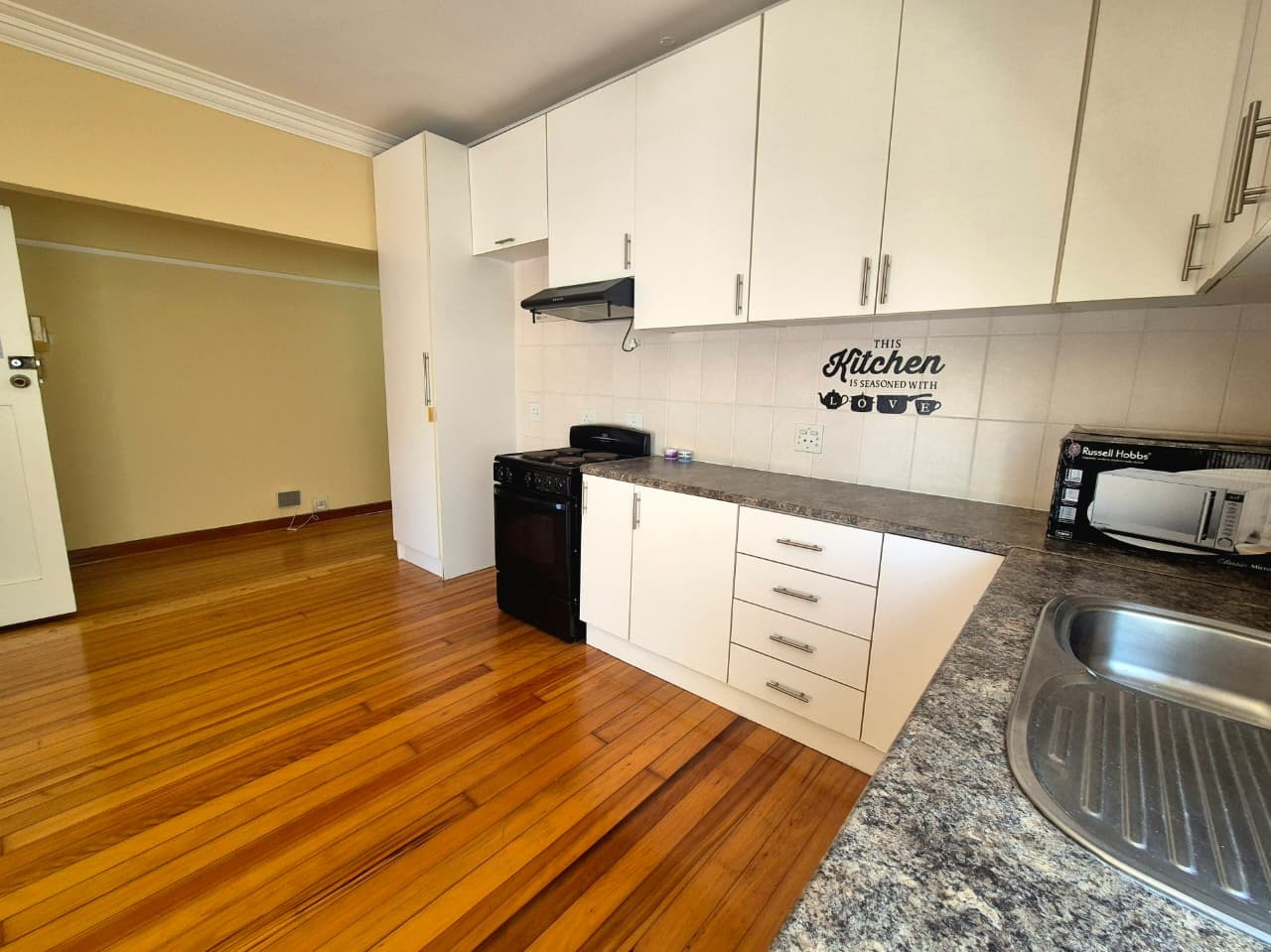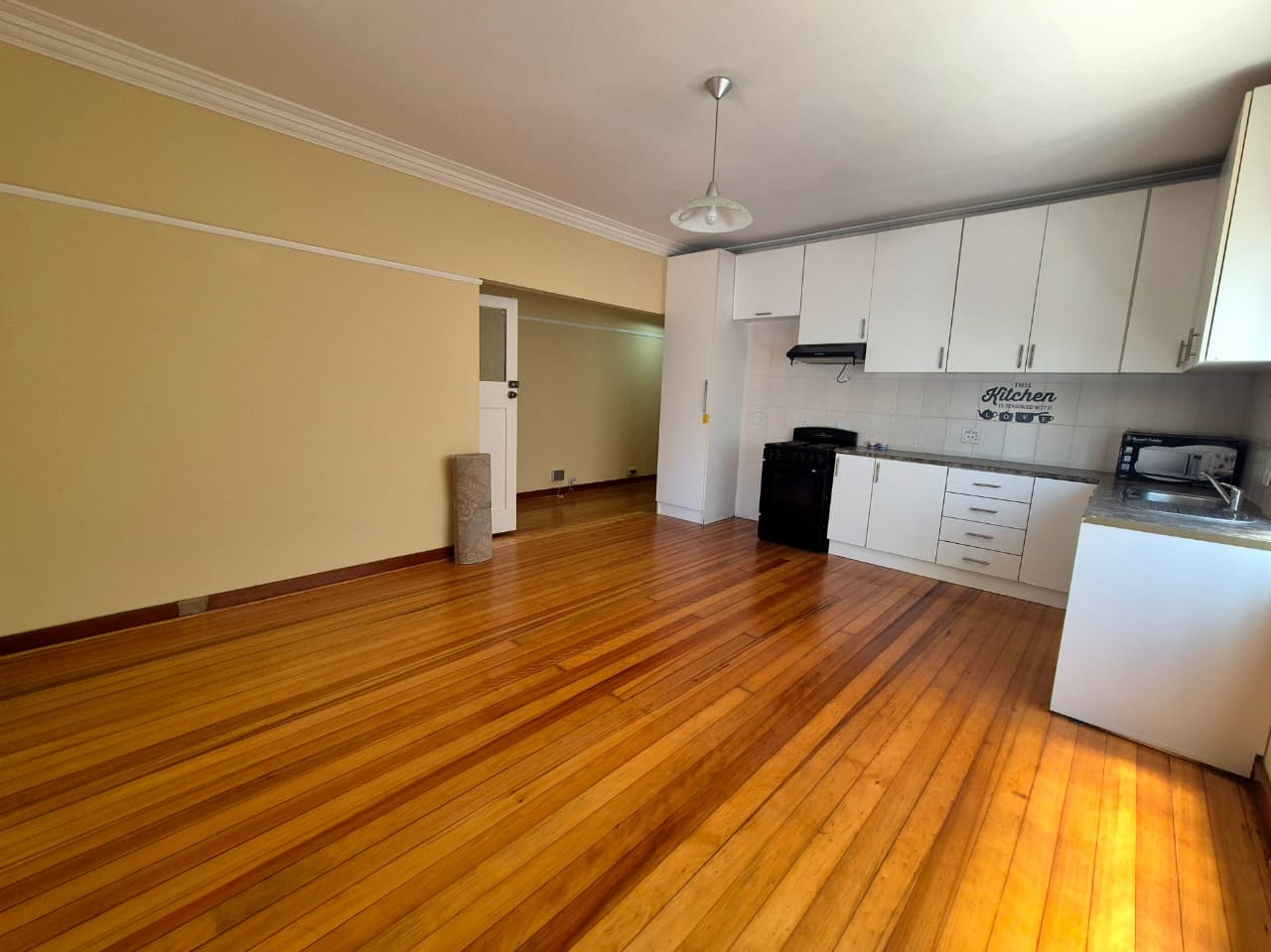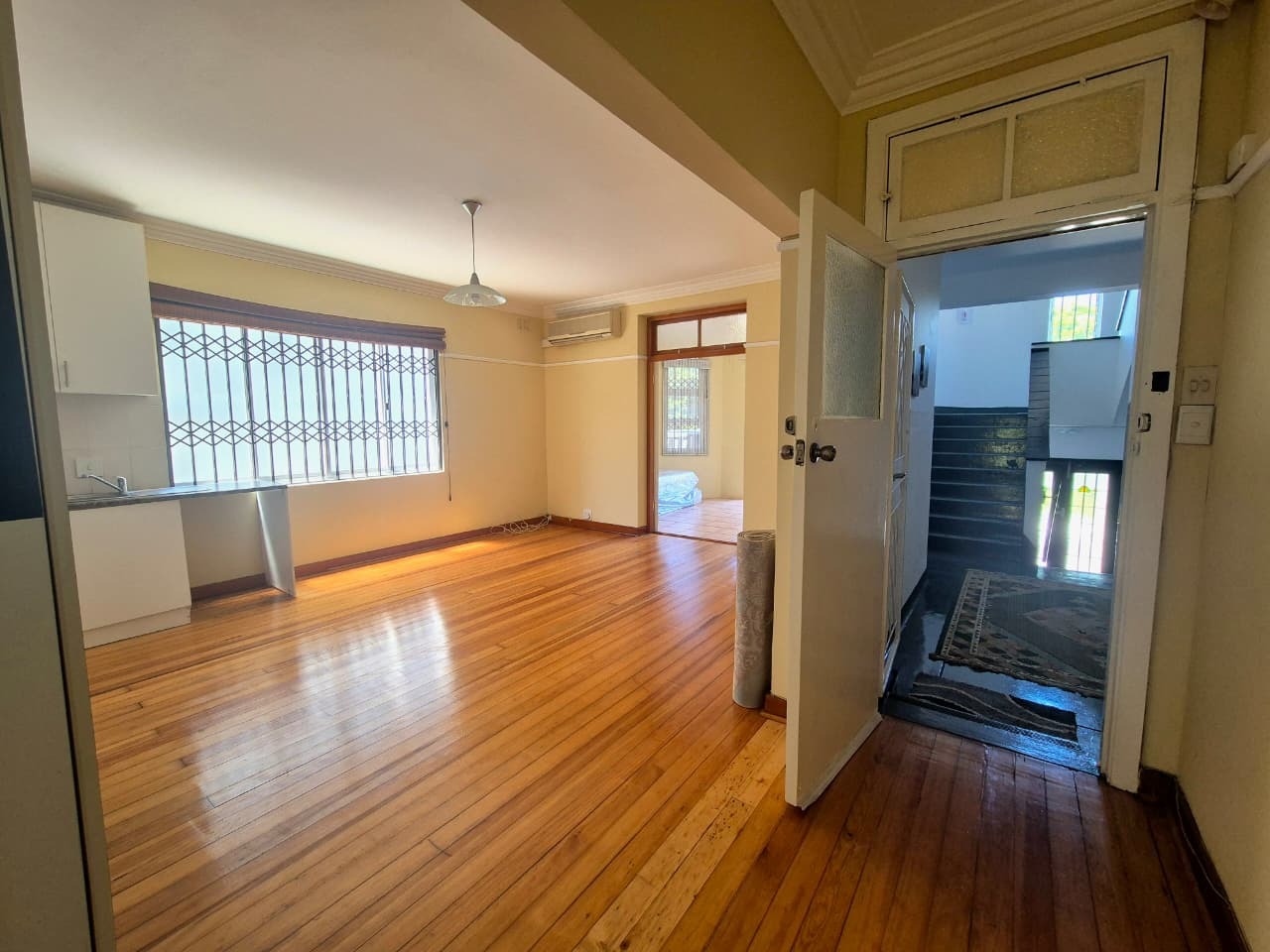 Upon entering the unit, you are welcomed by an open-plan kitchen that flows into a versatile half-bedroom space, which can be used as a dining area, study, or additional bedroom. The unit is fitted with wooden flooring throughout, in good condition.
