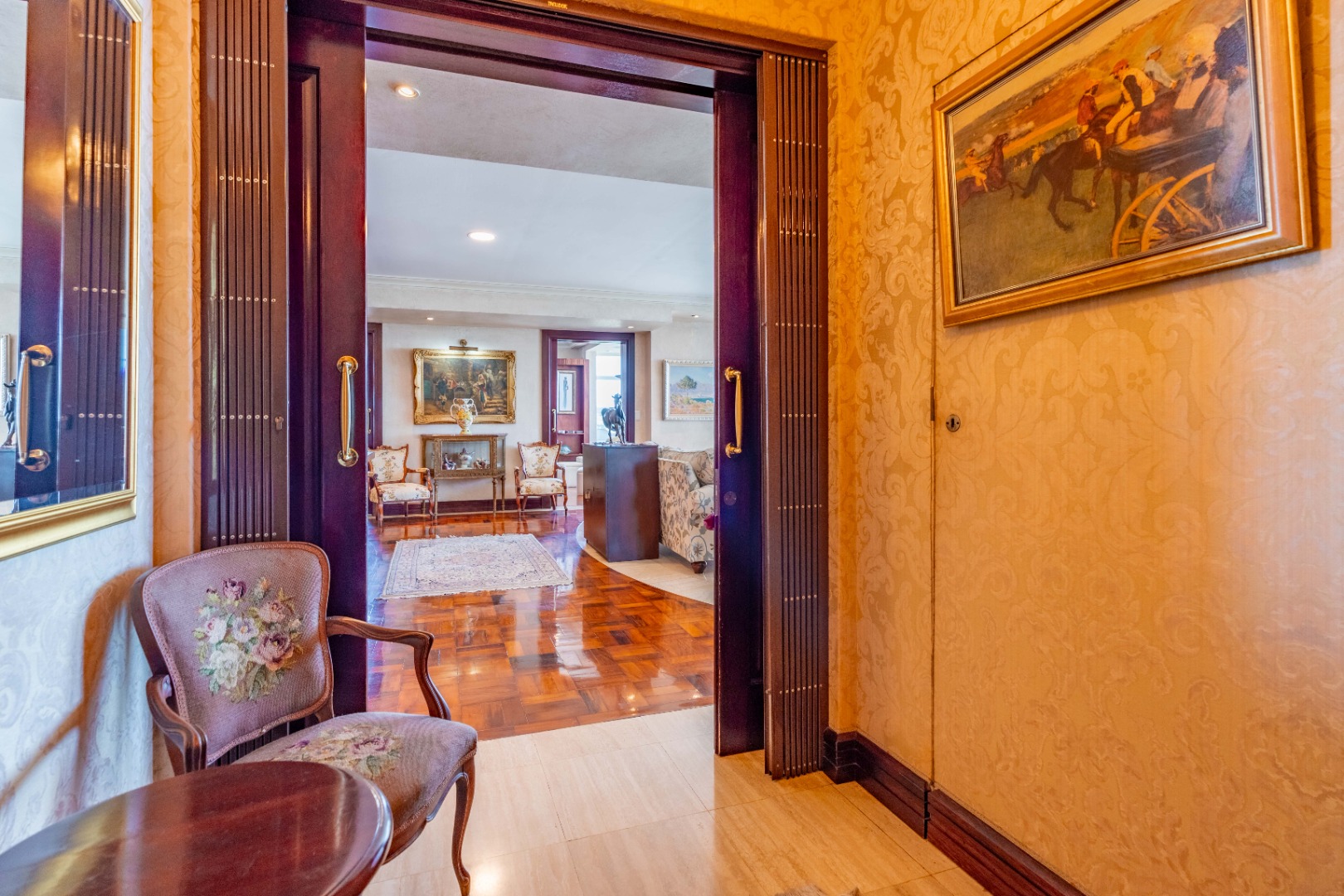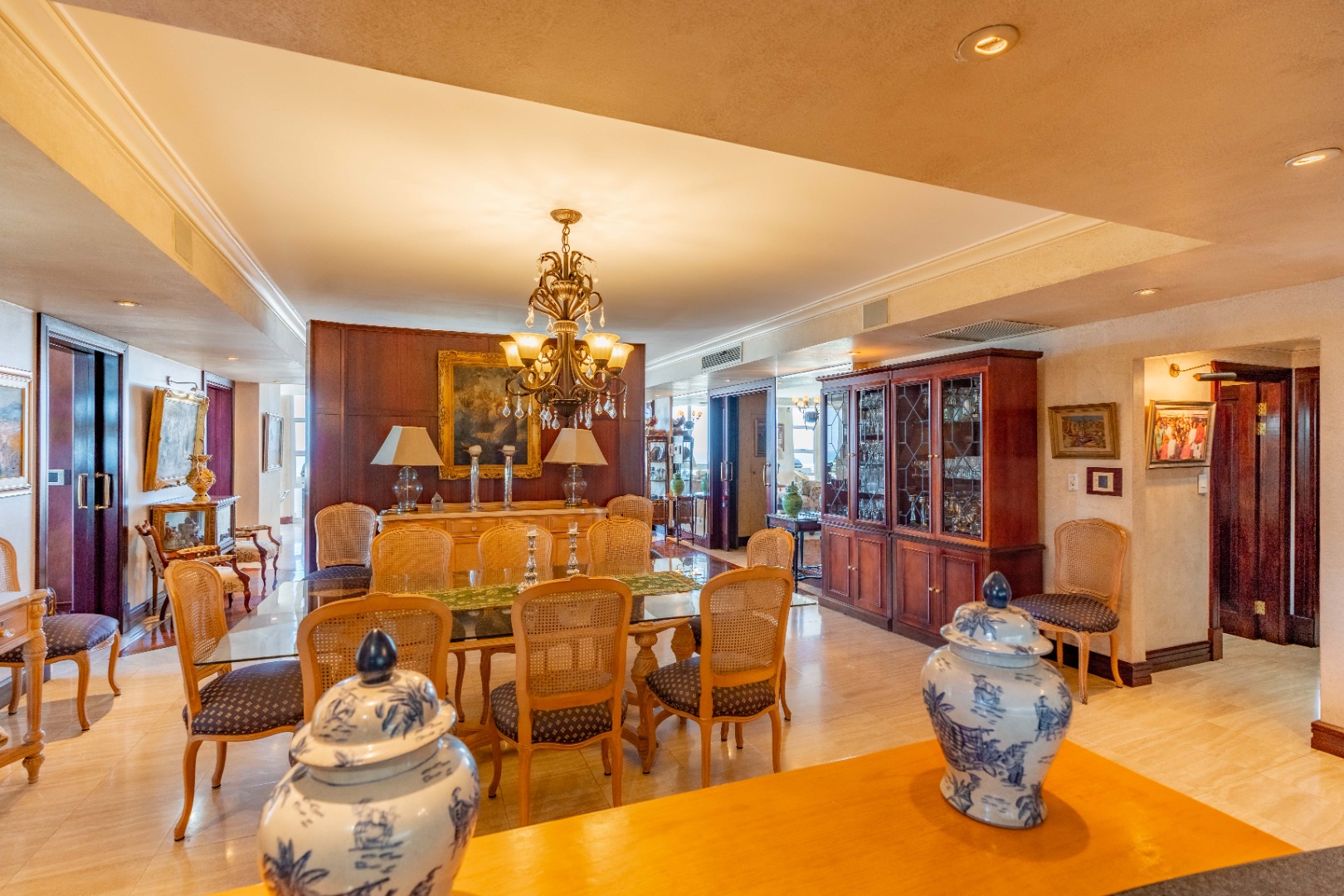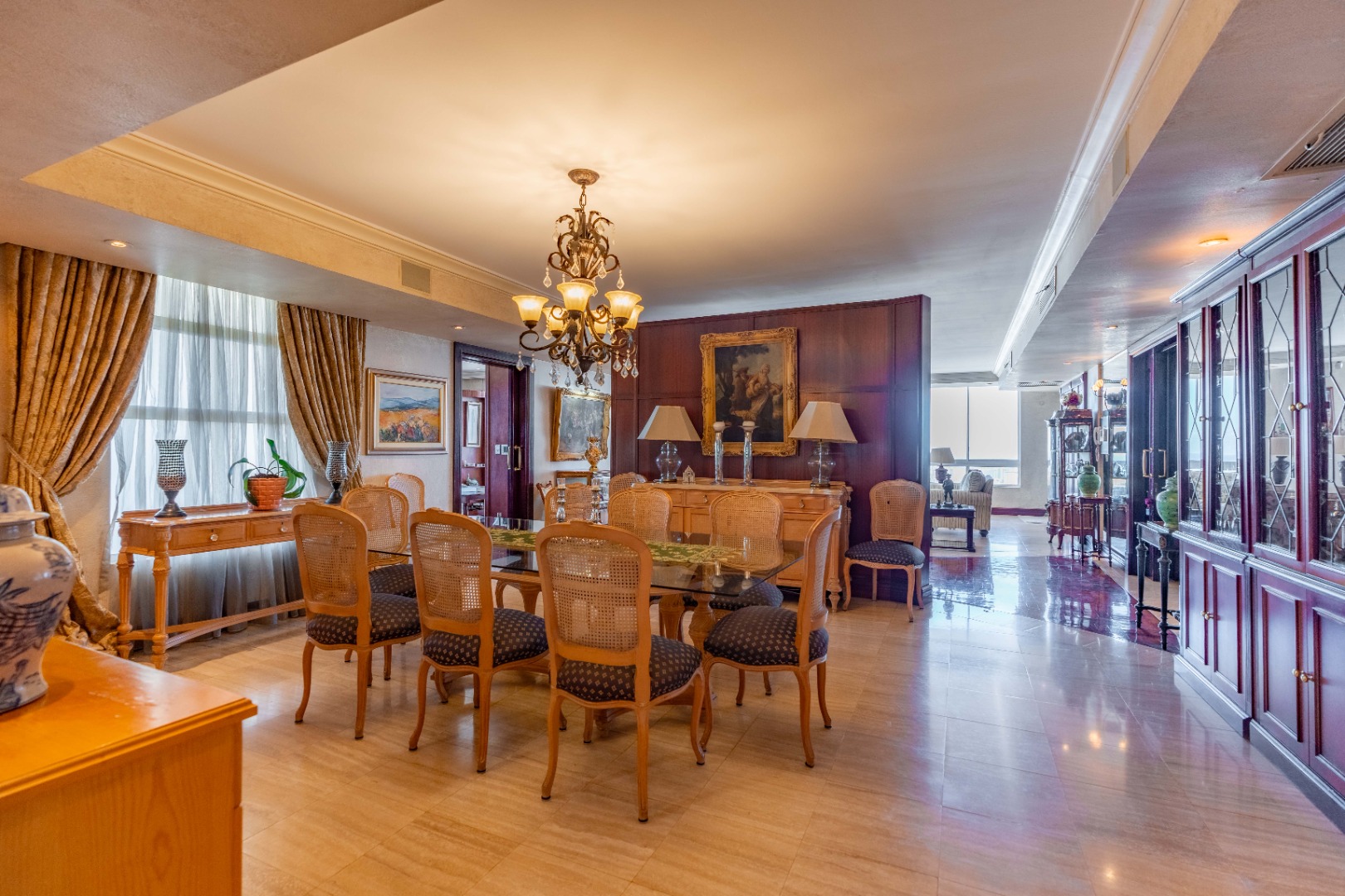 This is more than a residence—it’s a lifestyle. The building exudes timeless elegance with classic architecture, rich dark wood finishes, and tasteful, ornate detailing.