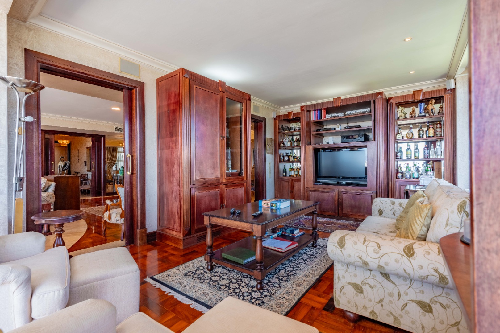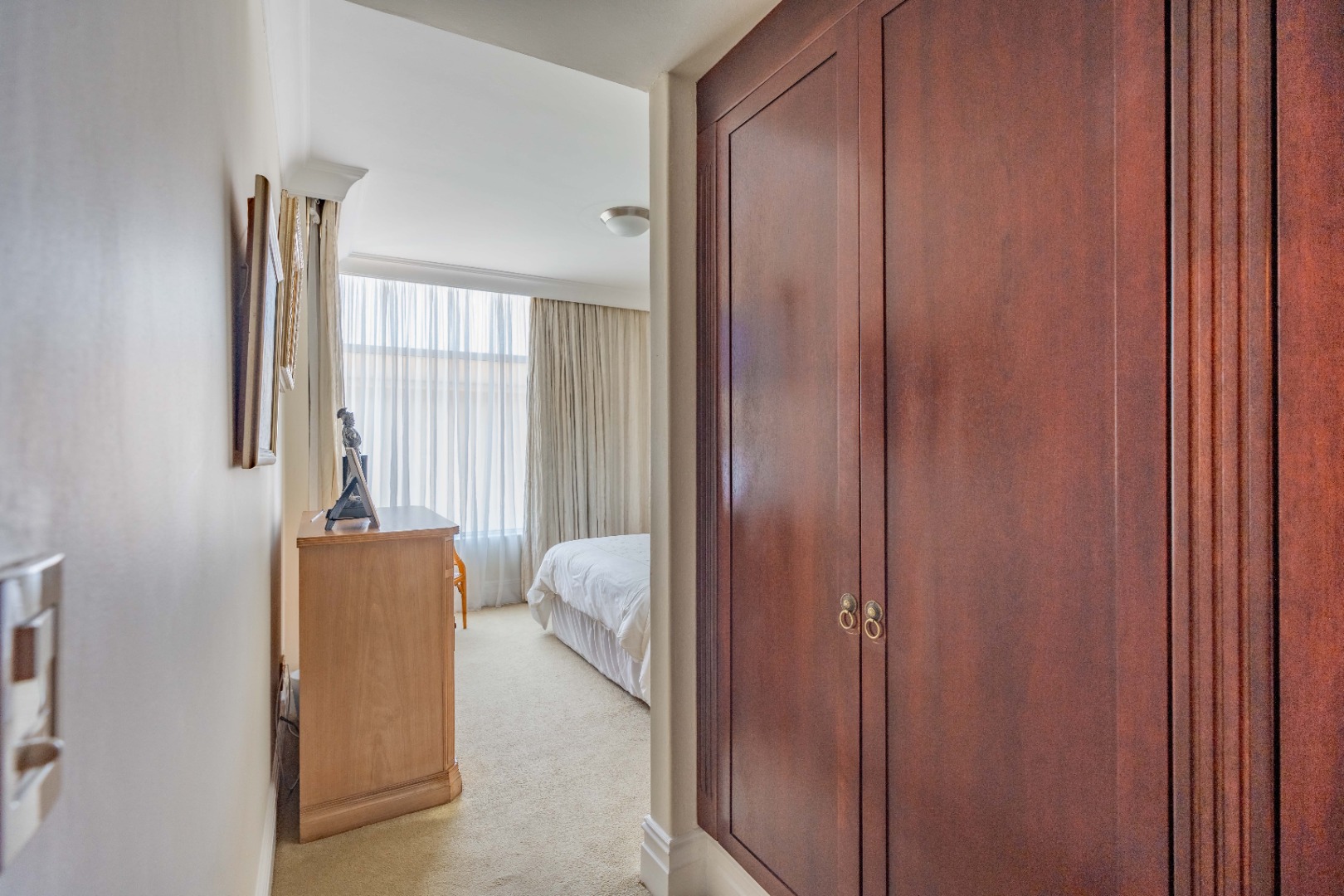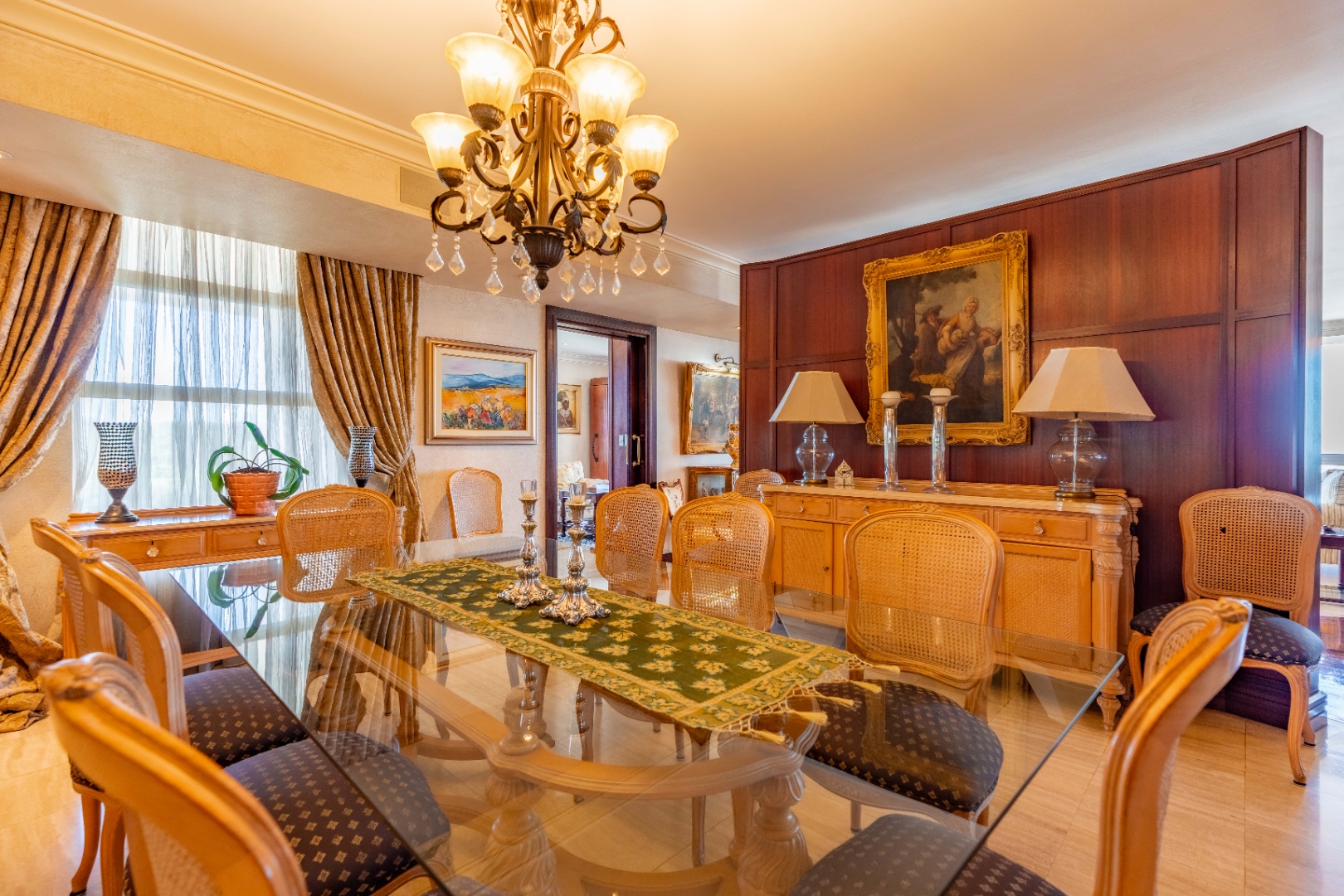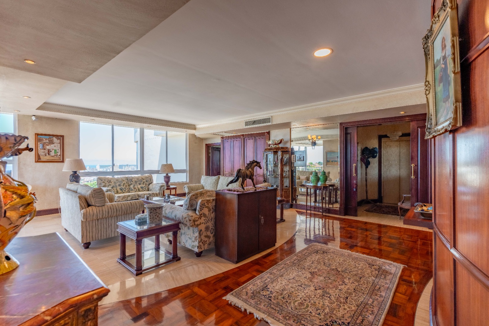 This is more than a residence—it’s a lifestyle. The building exudes timeless elegance with classic architecture, rich dark wood finishes, and tasteful, ornate detailing.