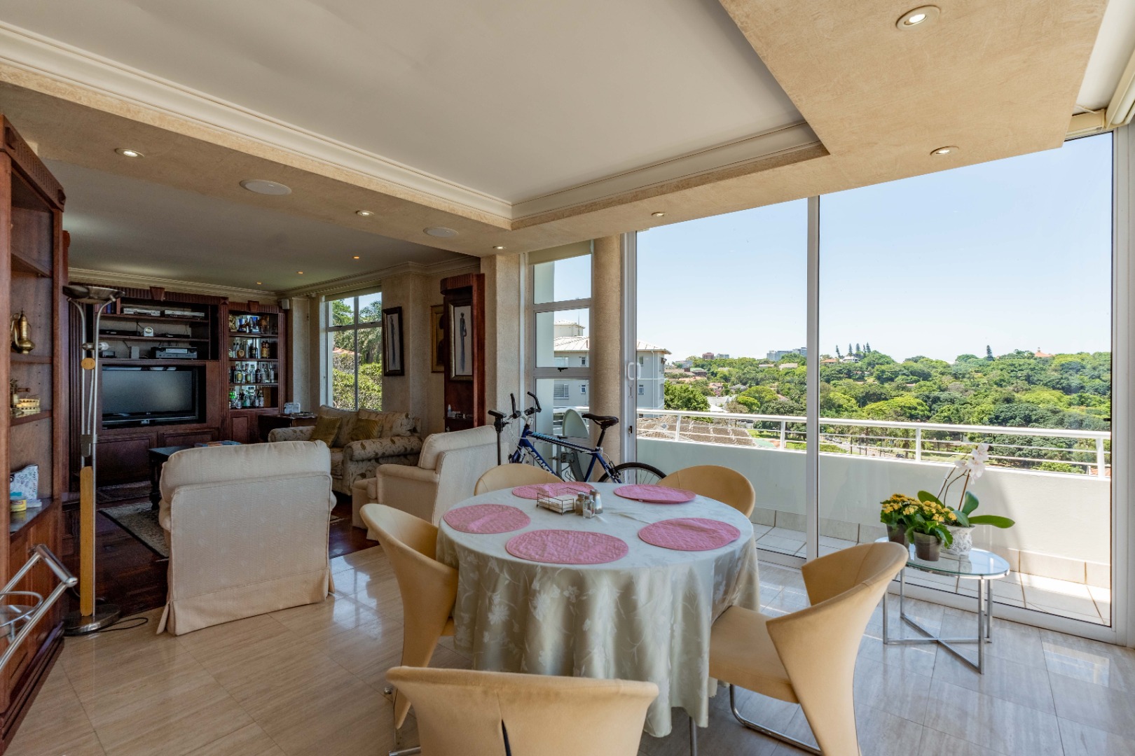 Designed for seamless indoor-outdoor living, the open-plan lounge and dining areas flow effortlessly onto a wraparound balcony via elegant sliding doors, perfect for entertaining or quiet reflection.