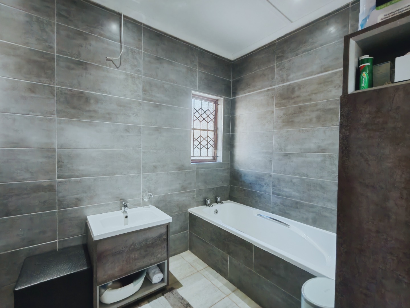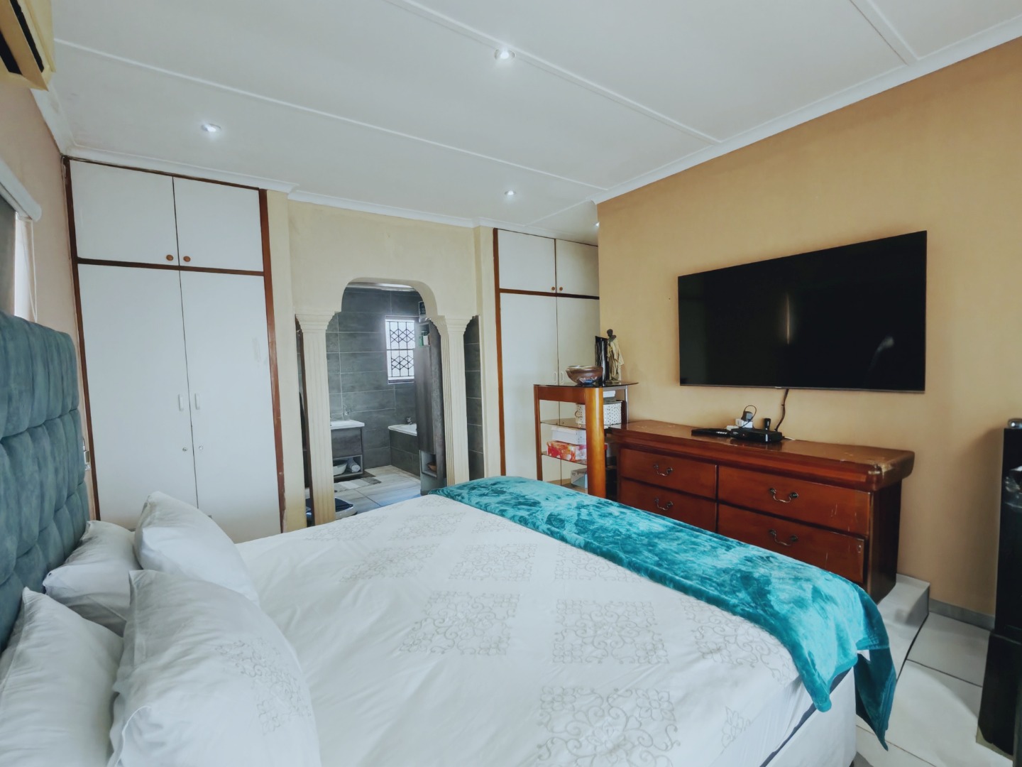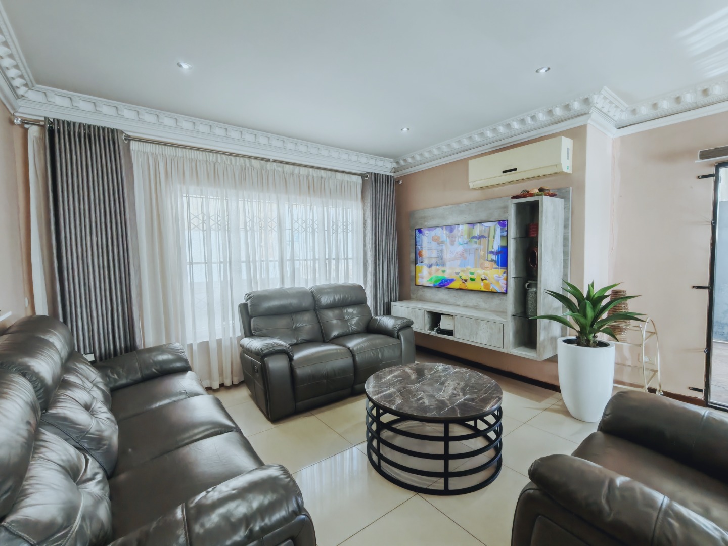 All three bedrooms are generously sized and include built-in cupboards and air conditioning. The master bedroom is a standout, offering an impressive retreat with a luxurious en-suite bathroom that includes both a bathtub and a separate shower - perfect for unwinding after a long day. A well-appointed family bathroom with a tub and overhead shower services the remaining bedrooms.