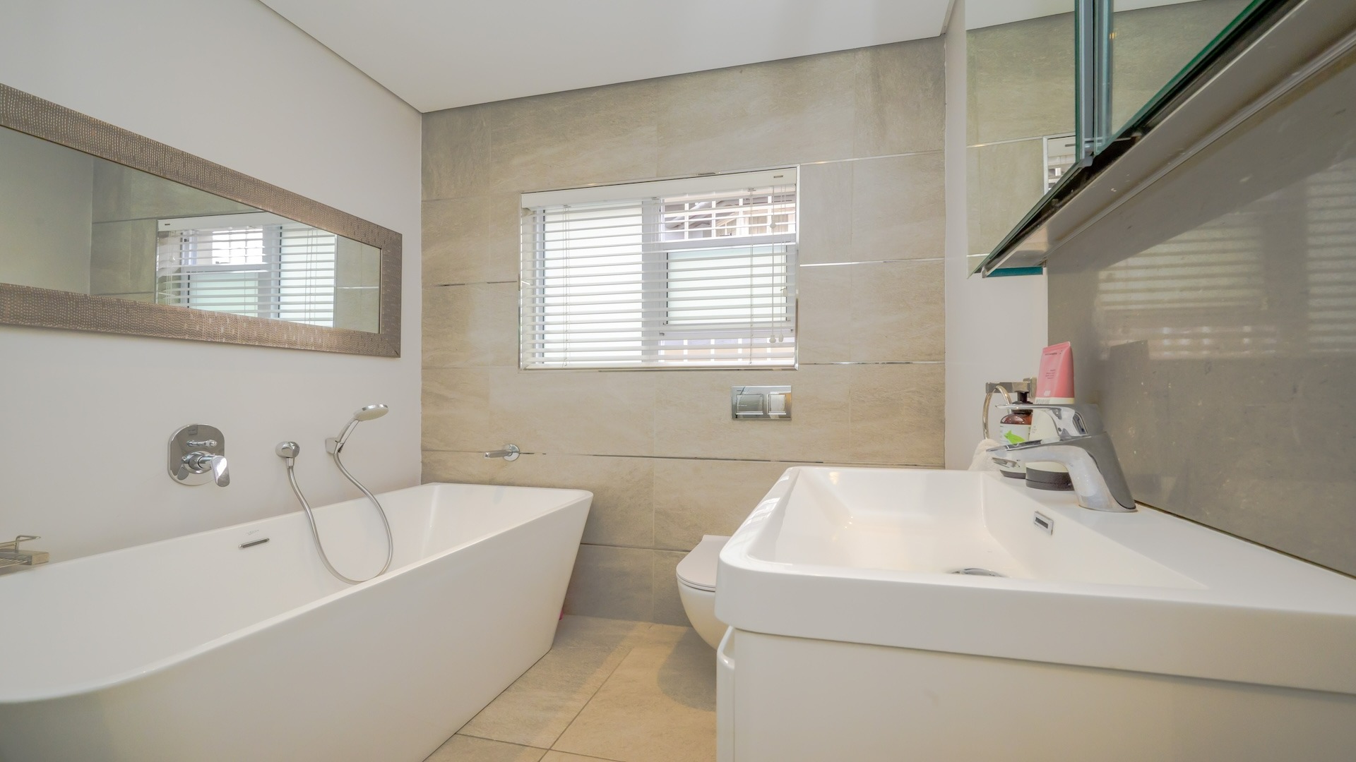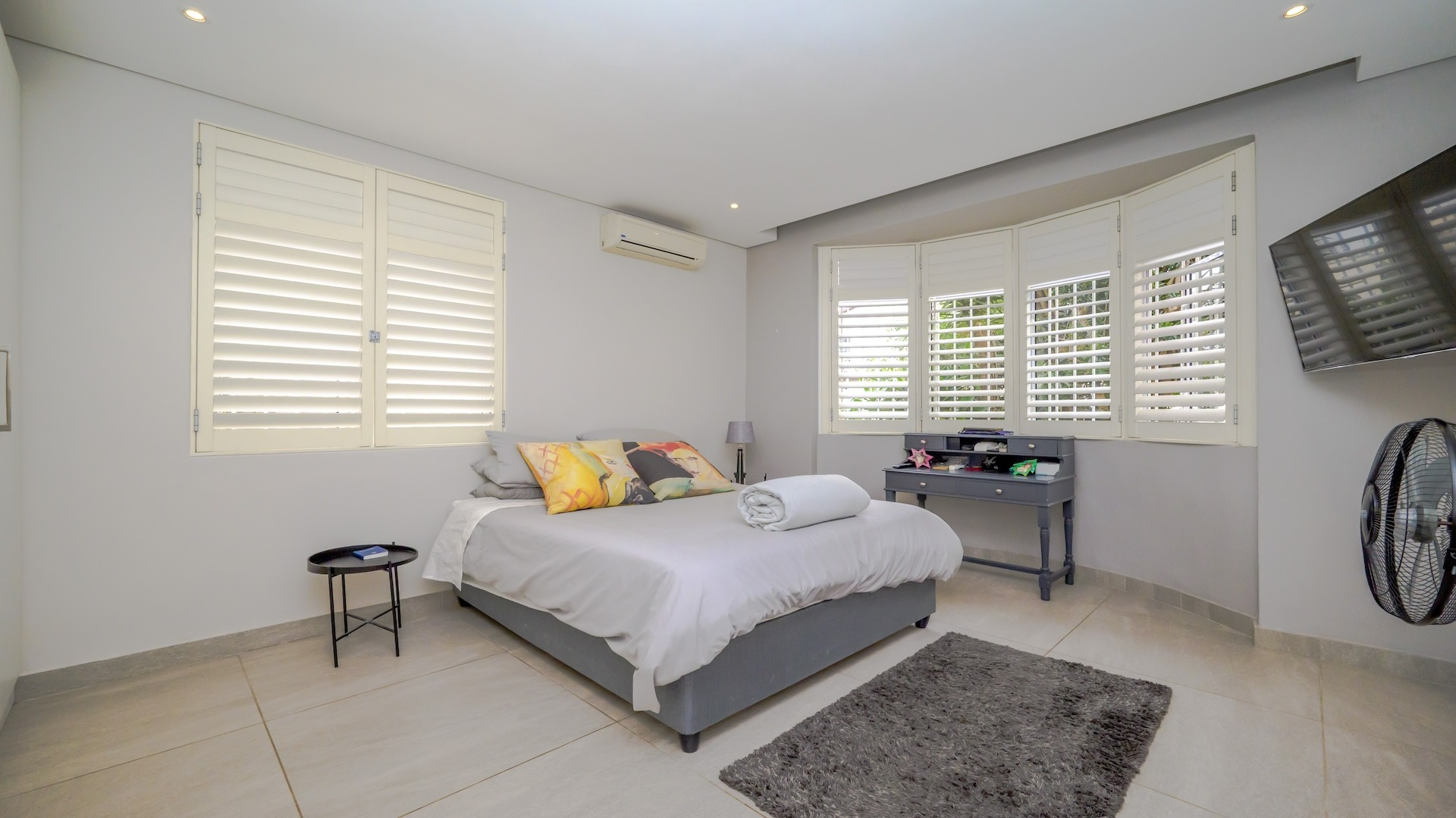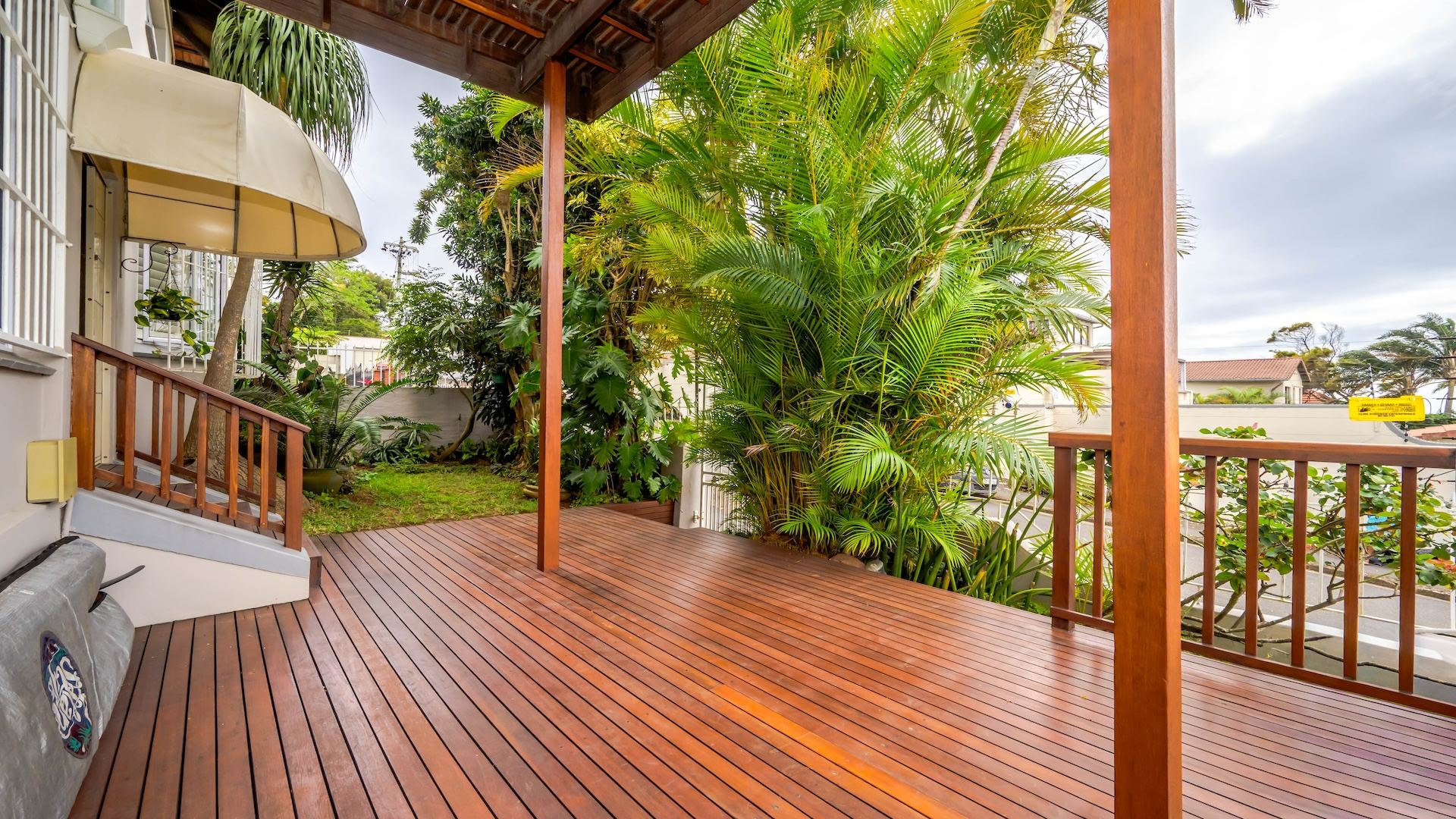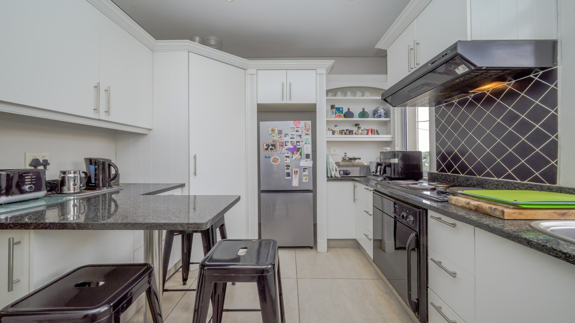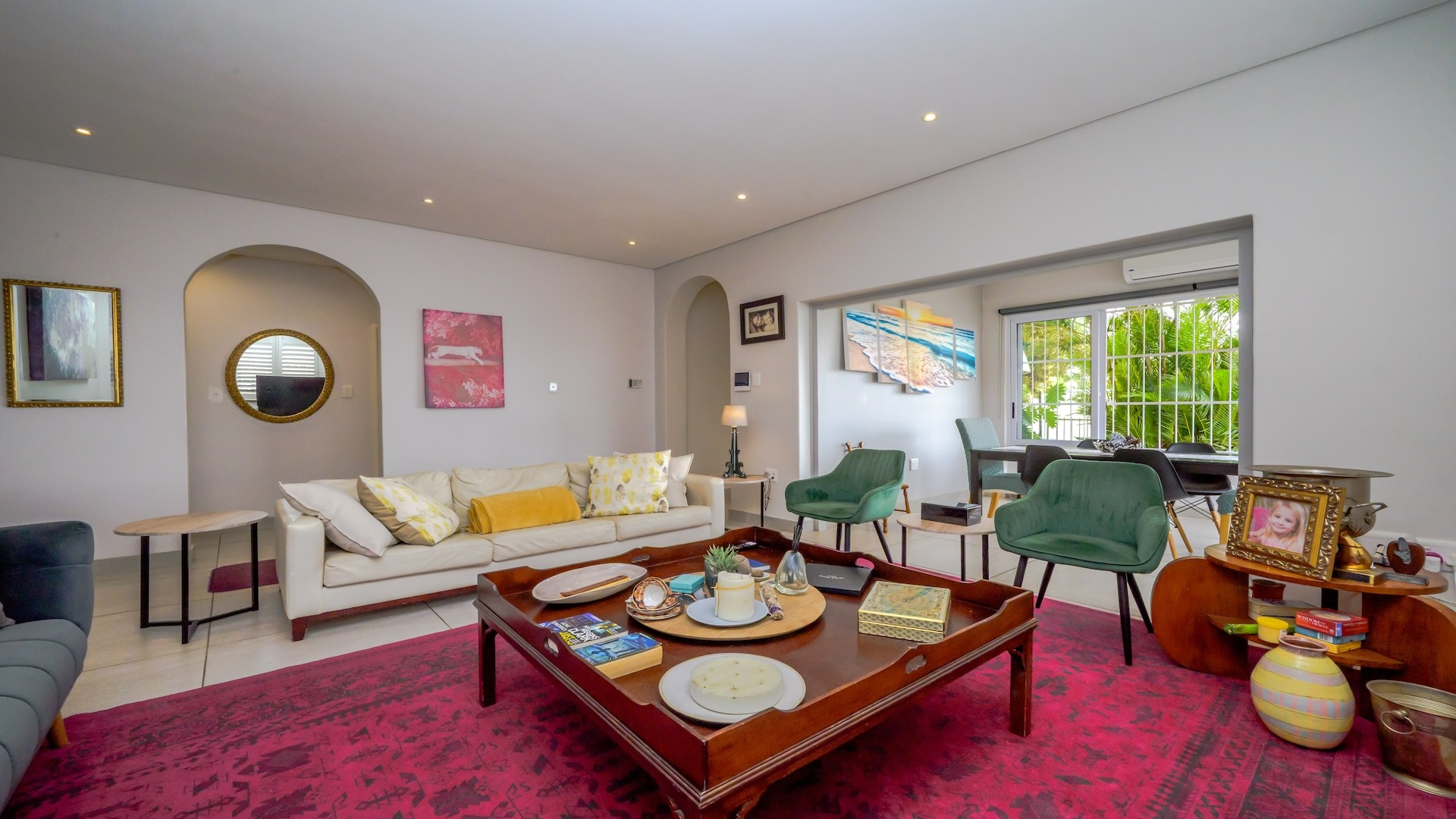 Step into this beautifully maintained home — one of two units on the property — offering comfort, space, and a touch of elegance throughout. The spacious kitchen features built-in cupboards, granite countertops, a built-in oven, stove, extractor fan, double sink, and a convenient breakfast nook. Ample natural light fills the space, flowing seamlessly into a separate scullery area plumbed for a washing machine. The lounge impresses with its generous size, bright ambiance, and views, leading into a well-appointed dining area. There is additional space before the kitchen entrance, ideal for added functionality or decor. A guest toilet with a basin is conveniently located on the ground floor. This home offers three spacious bedrooms, all fully tiled and air-conditioned. The main bathroom includes a bathtub, shower, basin, and toilet. From the front door, you step out onto a large deck area that offer sea views — perfect for relaxing or entertaining. On the side of the deck, you have a garden area. Situated on the tranquil Ross Gardens Road in Morningside, just off Rapson Road, the property enjoys a quiet cul-de-sac position surrounded by upmarket homes. Residents share access to a communal pool and braai area, ideal for hosting family and friends. The bottom unit also includes a store room or helper’s accommodation with a bathroom.
