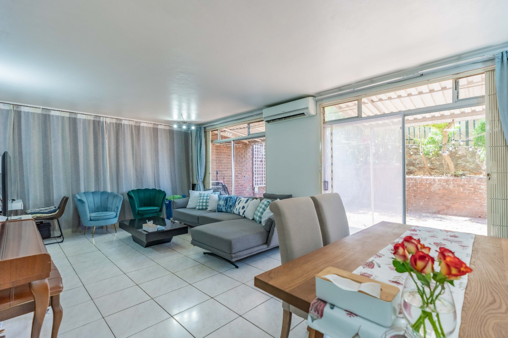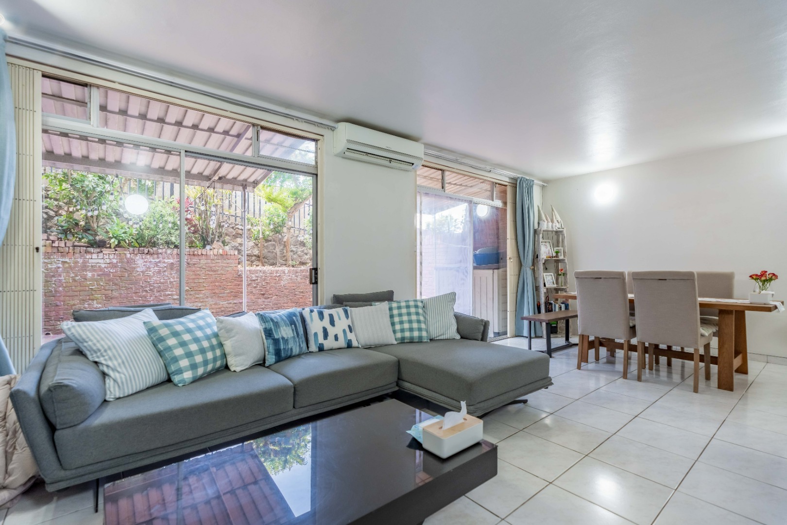 The lounge opens onto a stunning semi-covered outdoor patio area, perfect for entertaining family and friends or simply enjoying relaxed outdoor living.
