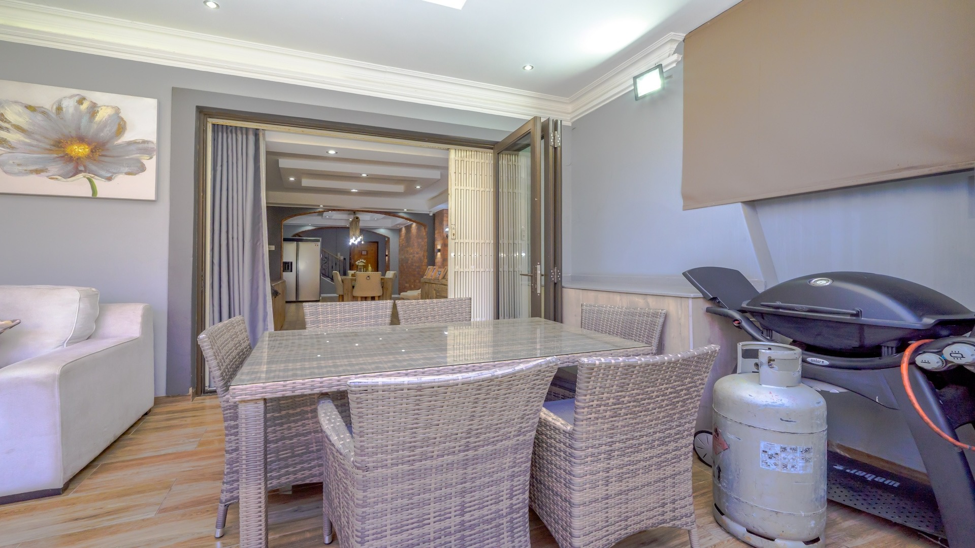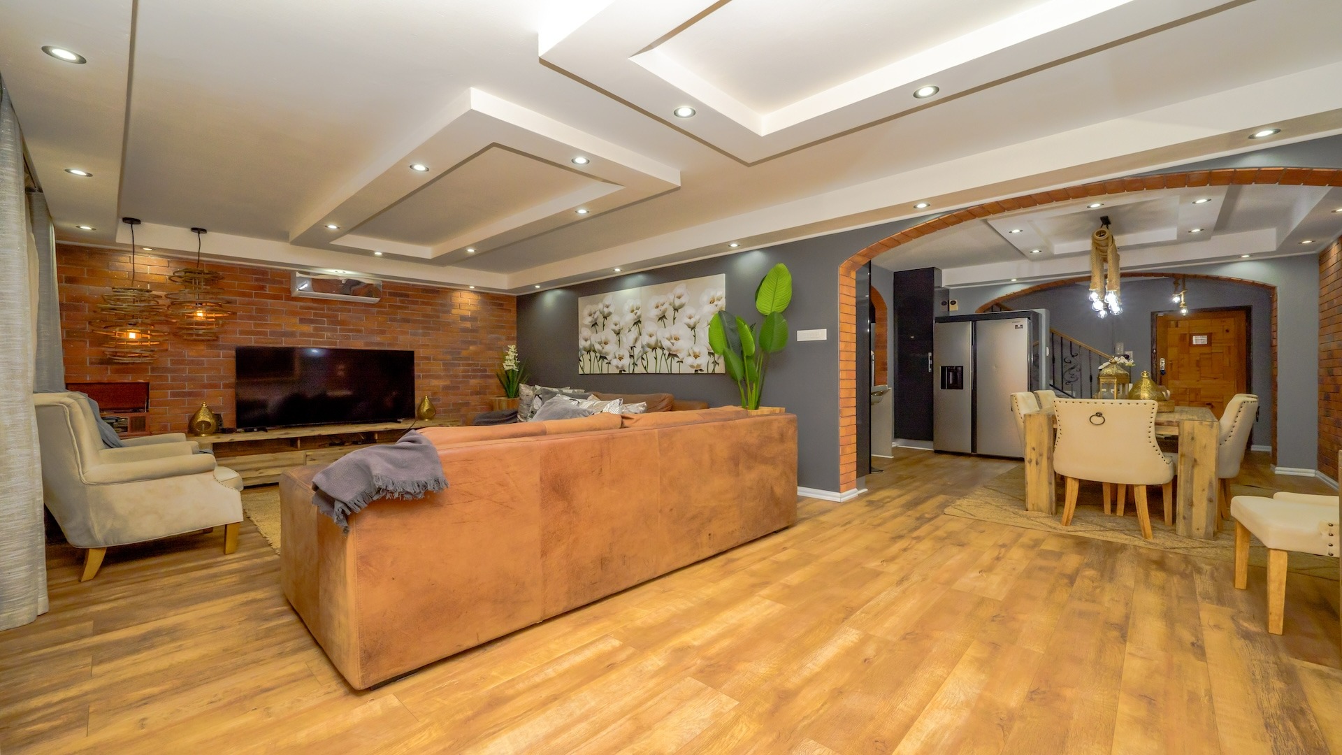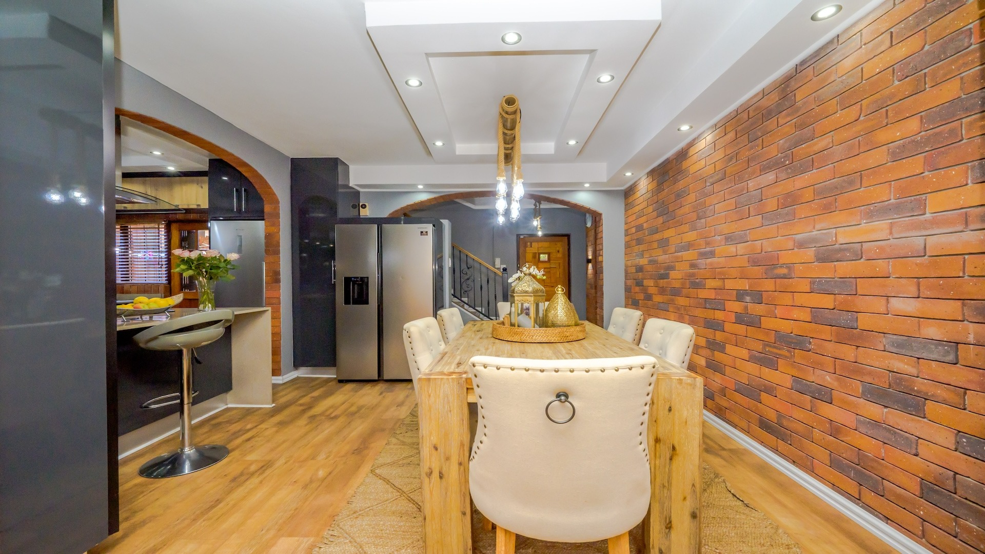 Set within the prestigious St Johns Wood complex on Lambert Road, this beautifully maintained apartment offers the perfect balance of comfort, security, and convenience in one of Durban’s well-established residential pockets. Ideally located close to the 5-star restaurants of Florida Road, with easy access to Clifton, Durban Preparatory High School, Gordon Girls, and Pick n Pay, this property truly delivers convenience on a grand scale. The complex is well secured, featuring remote-controlled access gates and an intercom system. Step into a modern-day townhouse with thoughtfully designed interiors that set this home apart. Already boasting an exceptional location, the property further impresses with its elegant and extravagant finishes. The stylish two-tone kitchen is fully fitted with high-gloss built-in cupboards, Caesarstone countertops, a gas hob, high-powered extractor, double oven, sink, and sleek laminate flooring that flows seamlessly through the dining and lounge areas.
