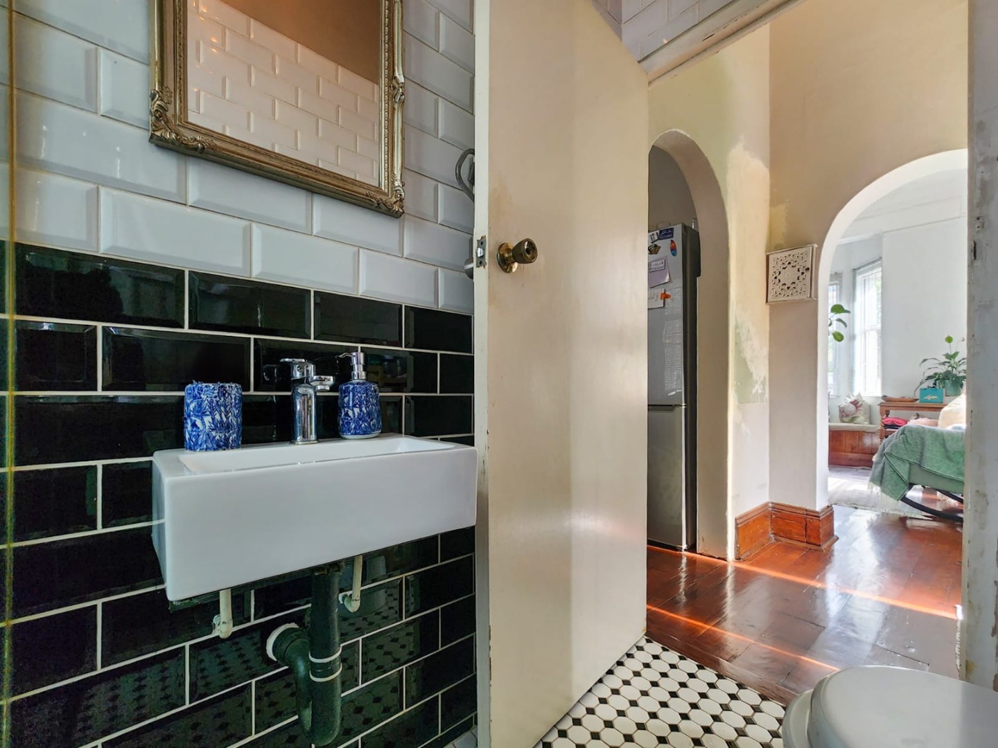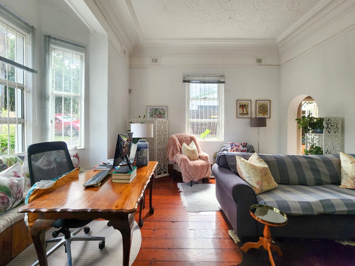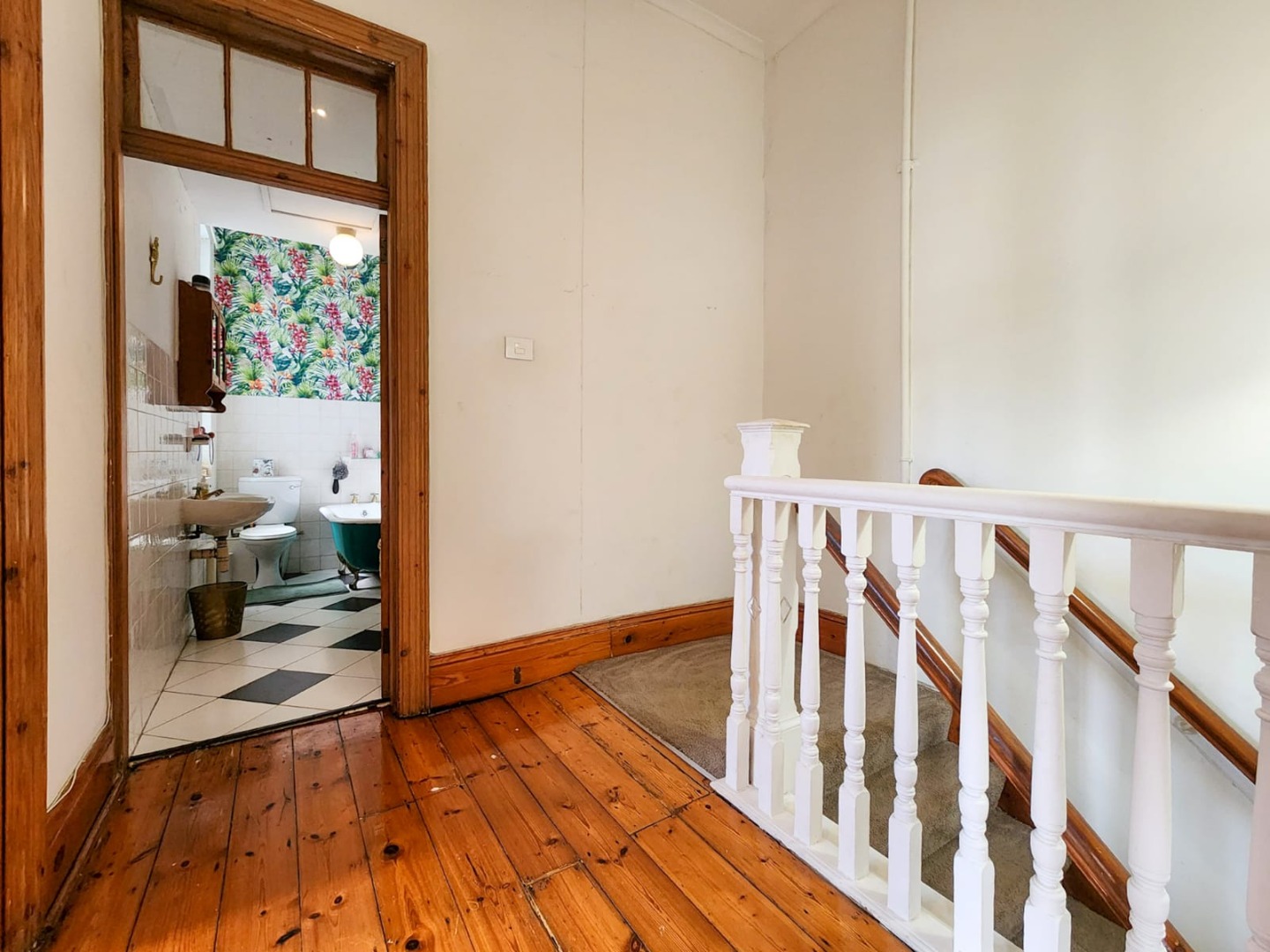 As you ascend to the upstairs level, you'll find three bedrooms, each with its own unique character. Each offers endless possibilities for creative expression. The third bedroom, presently serving as a study, would make an ideal guest room, providing a comfortable retreat for visitors. A family bathroom with a period-style bath adds to the unit's nostalgic charm. With a lock-up garage and drive-in access to two secure open bay parking spaces, this property offers the perfect blend of style, functionality, and convenience.