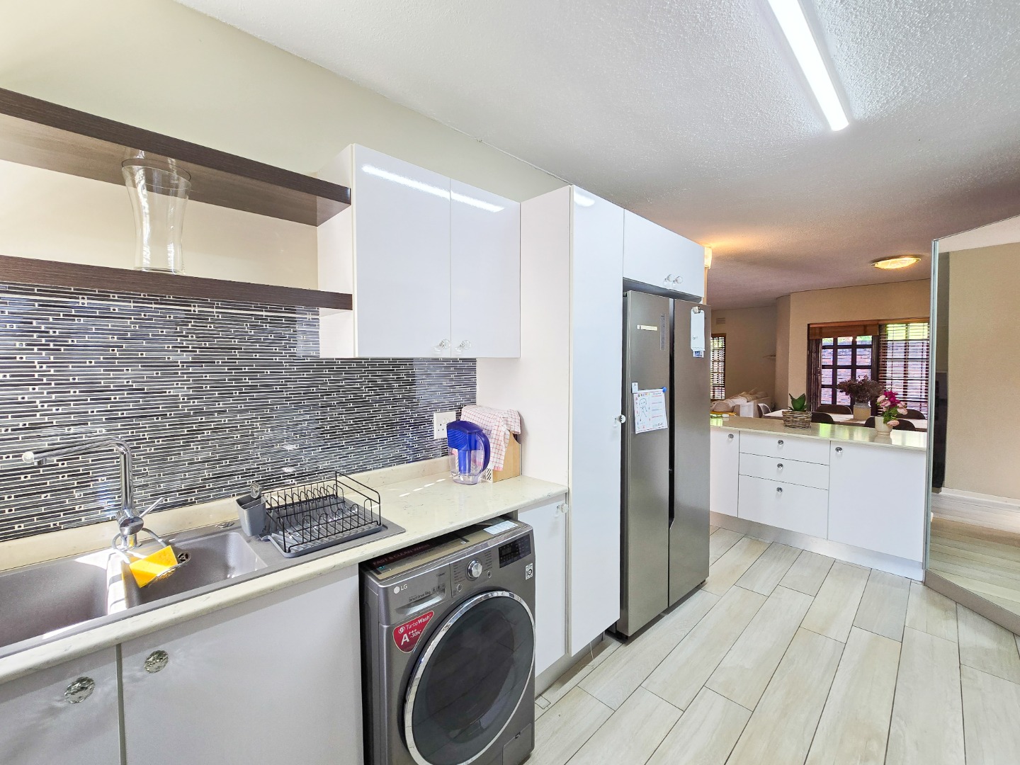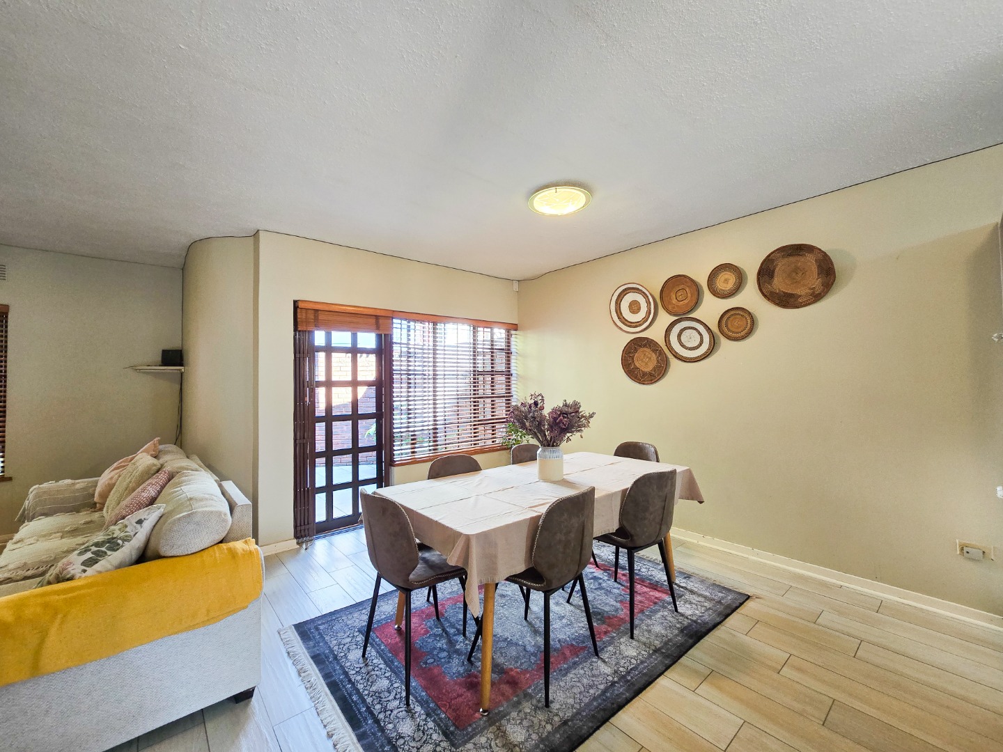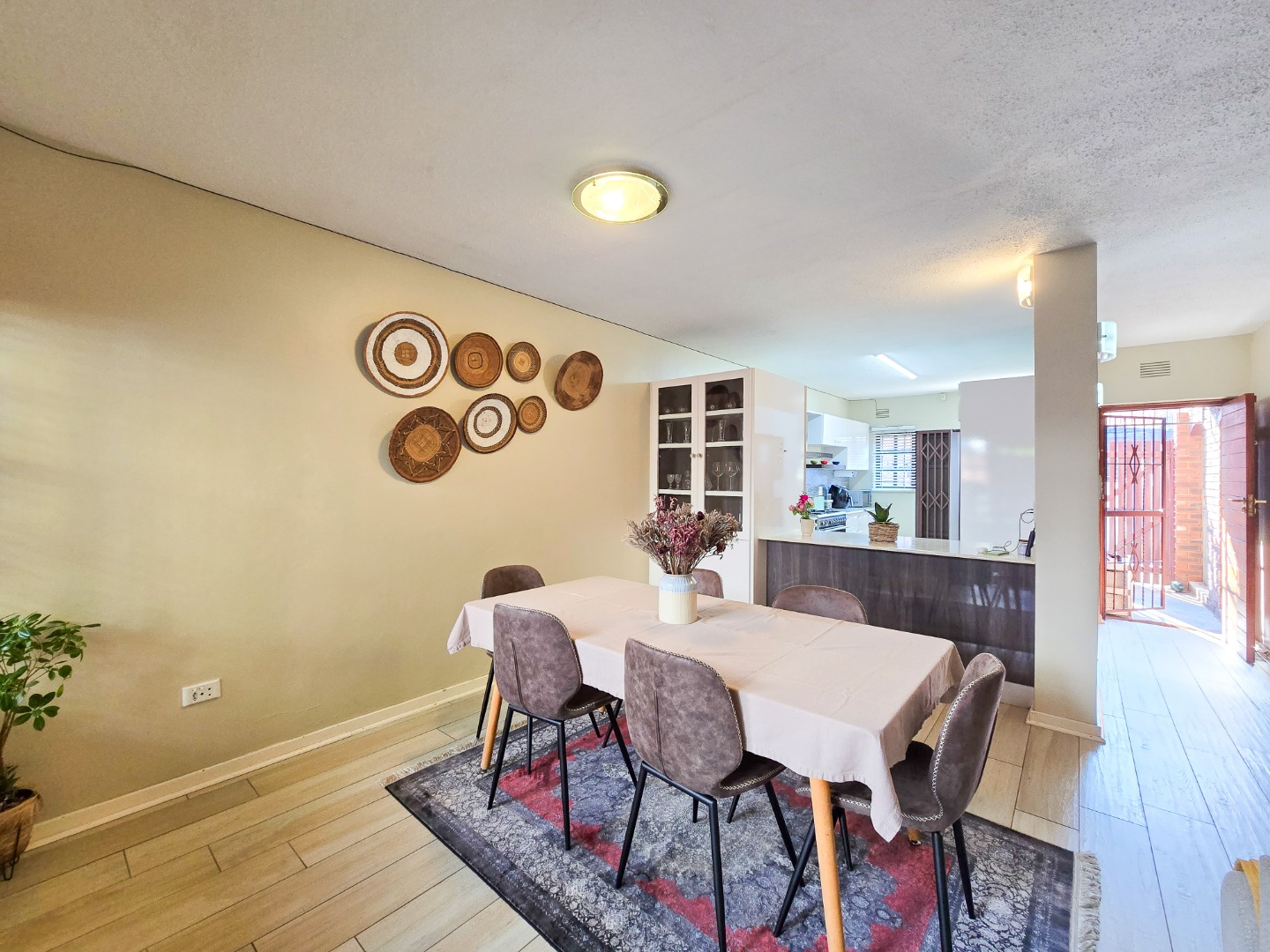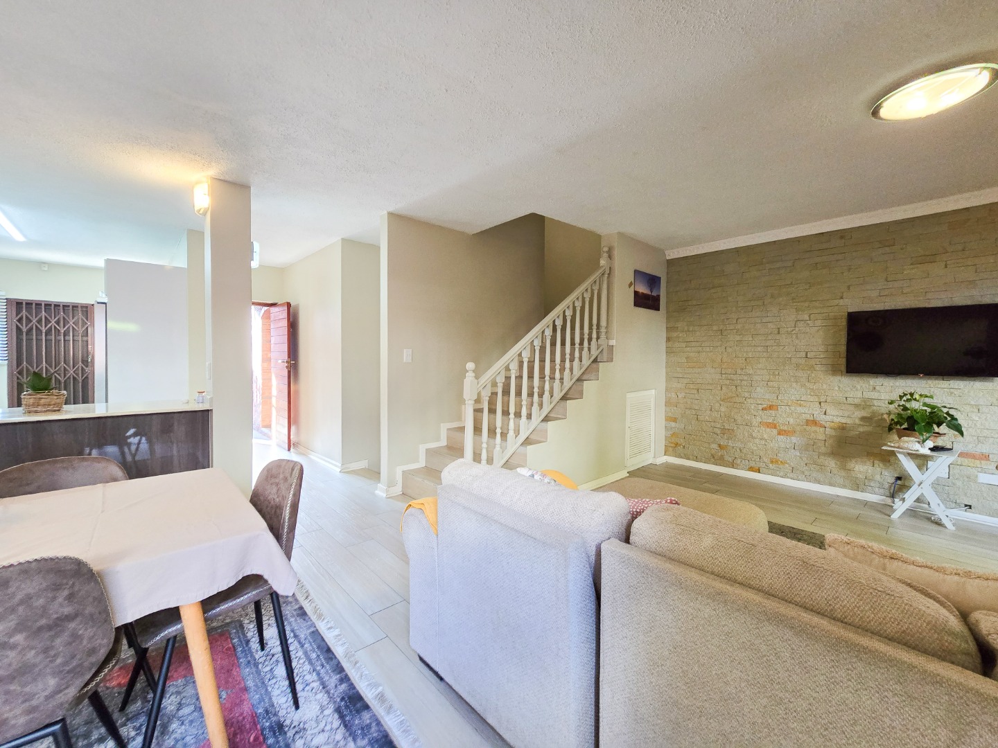 Located in a well maintained complex in Morningside, this townhouse stands as one of only seven units, offering exclusivity and tranquility. This inviting duplex townhouse has been impeccably kept and tastefully renovated, showcasing modern elegance at every turn. Upon entering, you are greeted by a sleek and stylish open-plan kitchen, featuring Caesarstone countertops, gas stove, high powered extractor and plumbed for washing machine. The kitchen seamlessly flows into a spacious dining and lounge area, creating an inviting space for relaxation and entertainment. Step through the sliding doors and discover a private courtyard, perfect for dining and hosting guests.