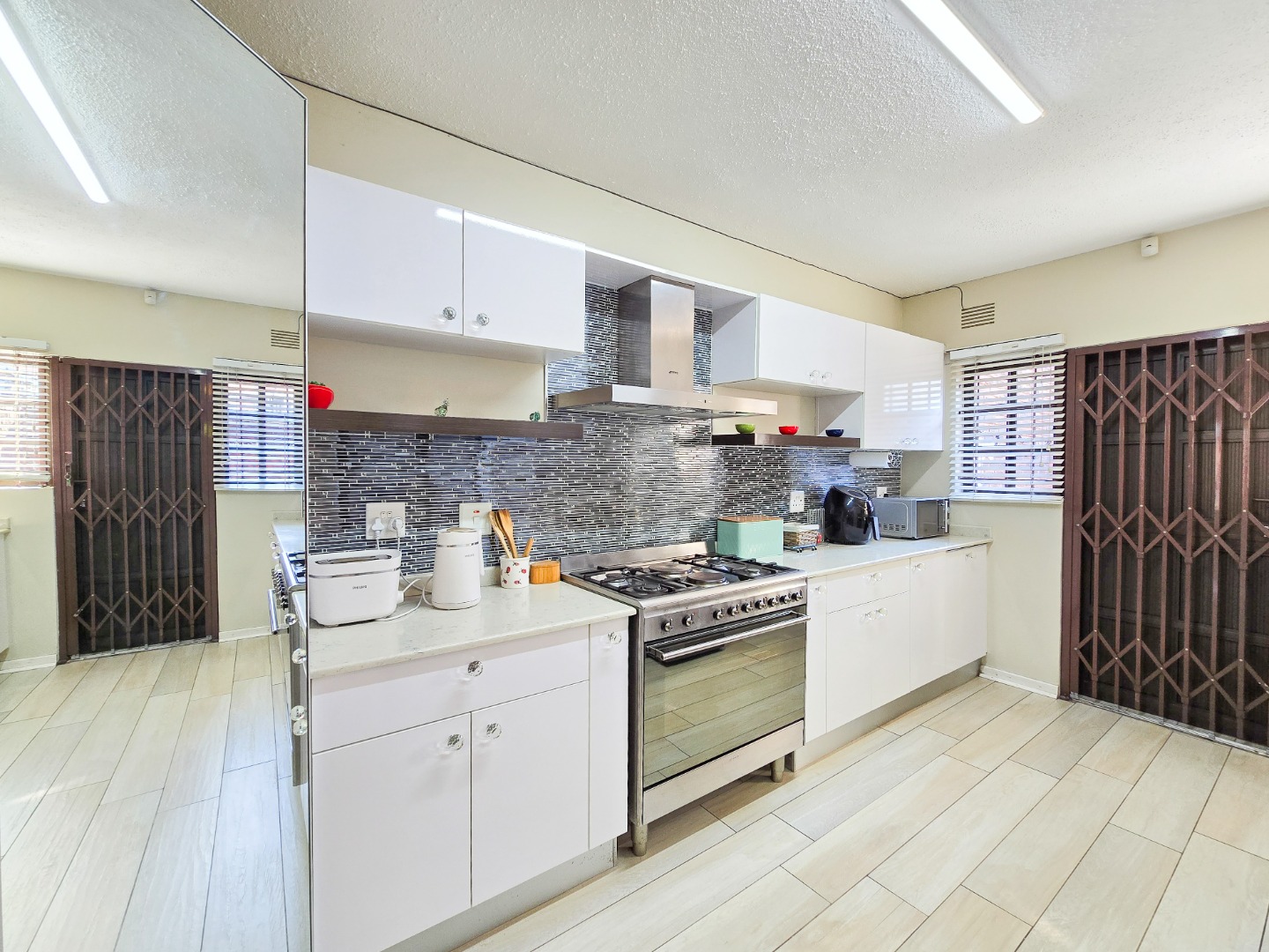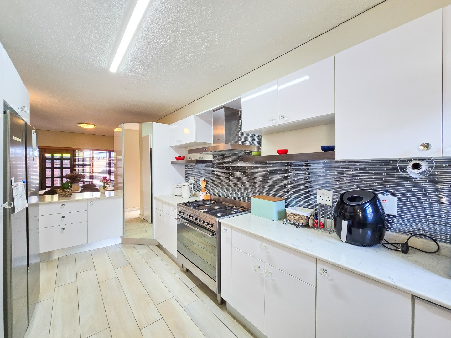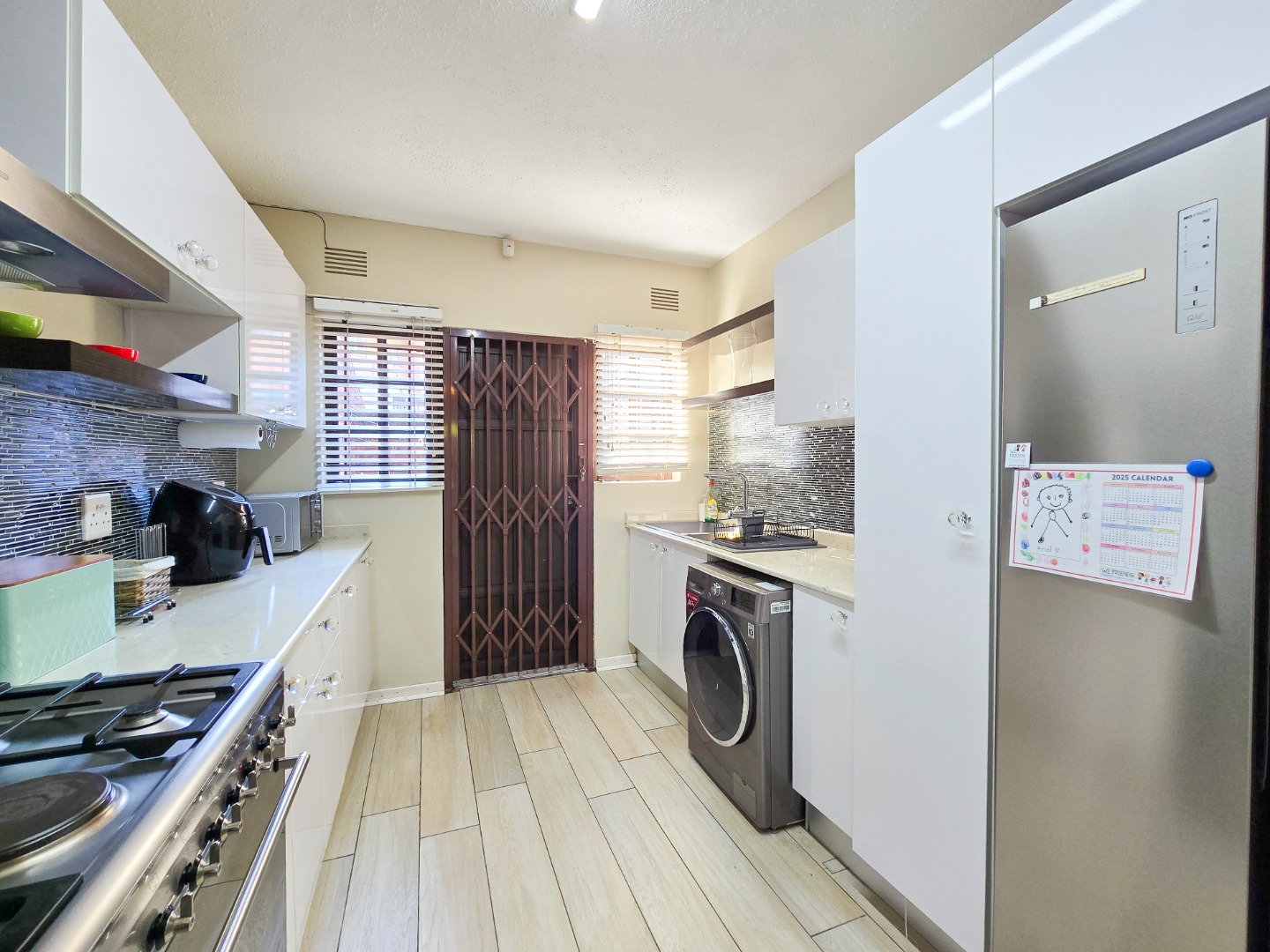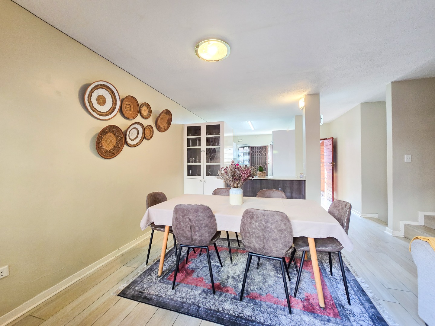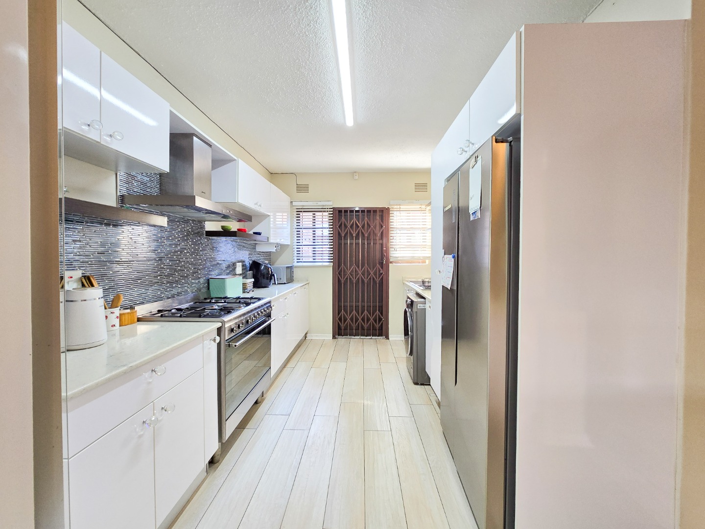 Located in a well maintained complex in Morningside, this townhouse stands as one of only seven units, offering exclusivity and tranquility. This inviting duplex townhouse has been impeccably kept and tastefully renovated, showcasing modern elegance at every turn. Upon entering, you are greeted by a sleek and stylish open-plan kitchen, featuring Caesarstone countertops, gas stove, high powered extractor and plumbed for washing machine. The kitchen seamlessly flows into a spacious dining and lounge area, creating an inviting space for relaxation and entertainment. Step through the sliding doors and discover a private courtyard, perfect for dining and hosting guests.