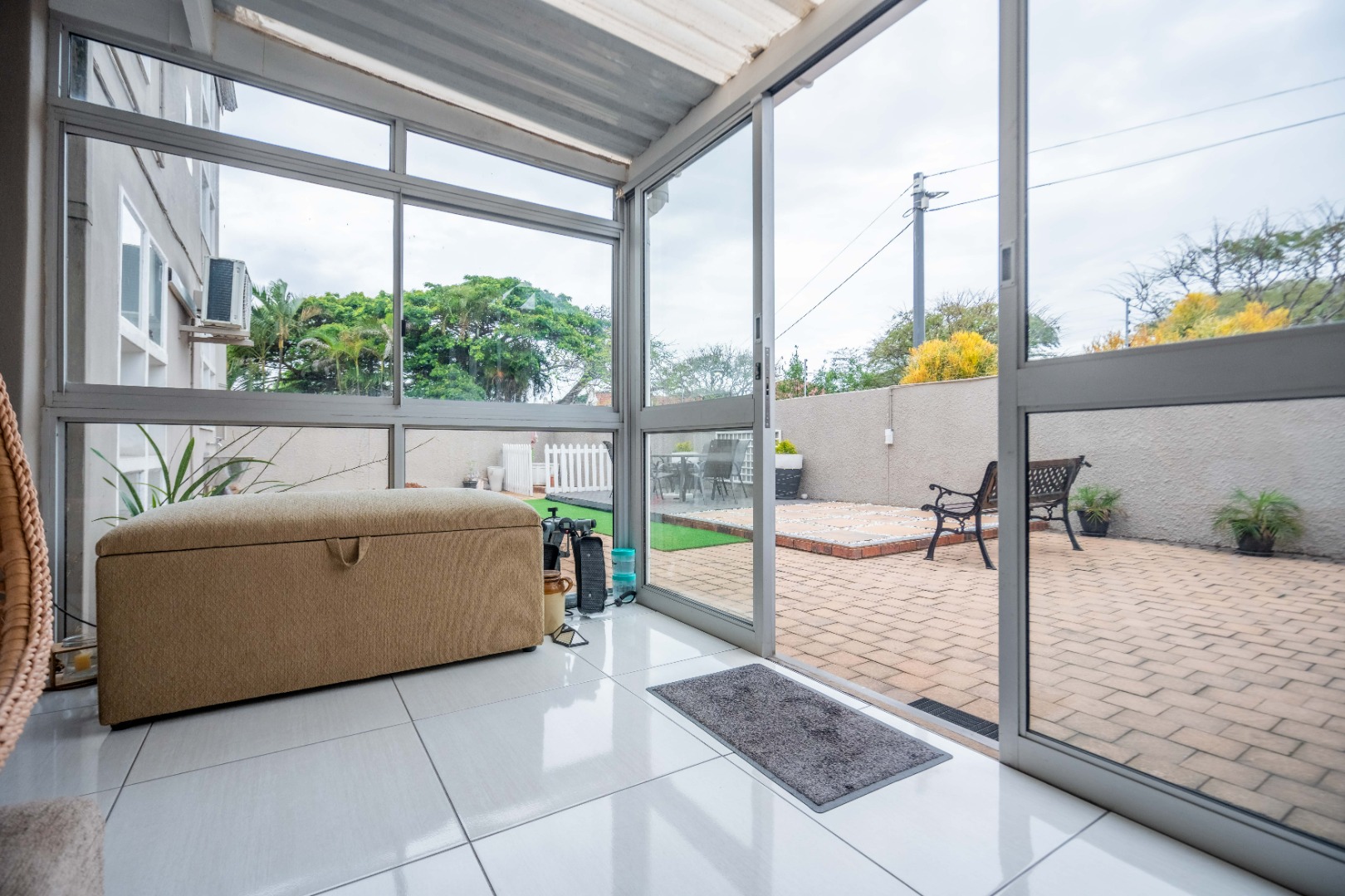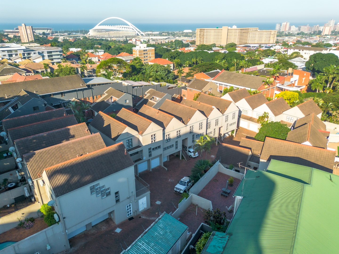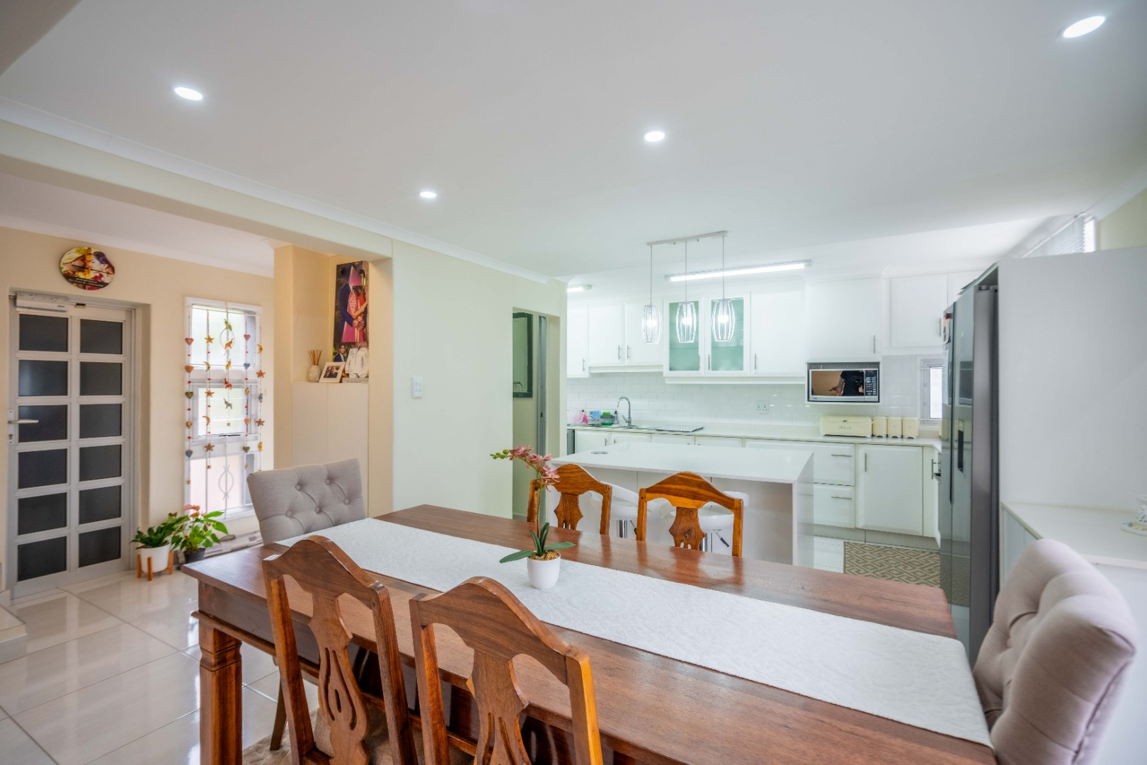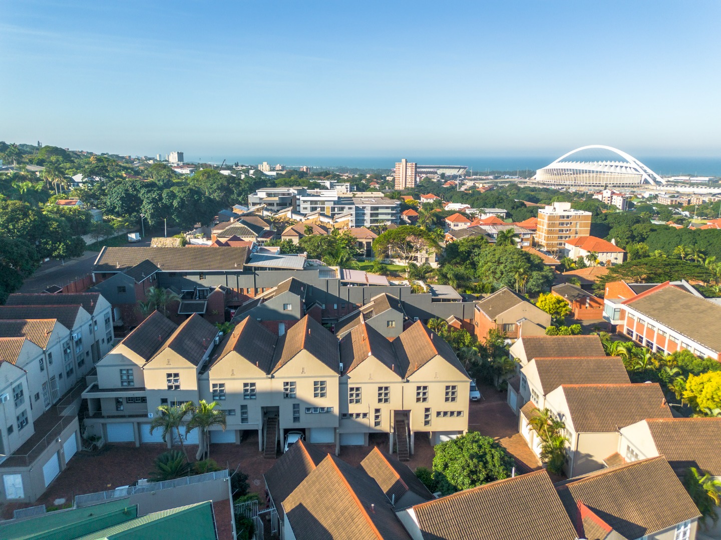 Upstairs, the property offers three spacious bedrooms, all with built-in cupboards. The fully tiled family bathroom includes a shower, basin, and toilet. The main bedroom boasts generous cupboard space, tiled flooring, and a full en-suite bathroom with a shower, basin, toilet, and bathtub. The second bedroom features high-gloss wooden cupboards. Additional features include electric fencing around the complex, a double garage, air conditioning in all bedrooms, and CCTV cameras. The property is conveniently located close to top restaurants on Florida Road and within walking distance of excellent schools such as Clifton, DPHS, and Gordon Girls.