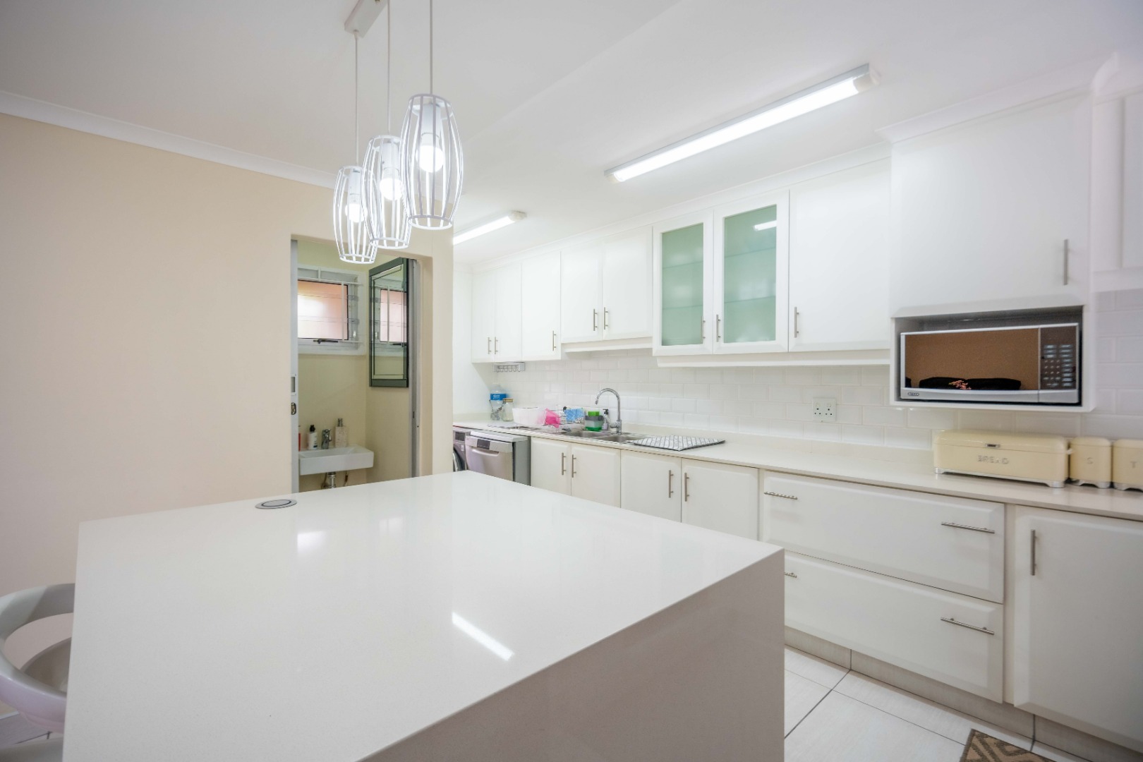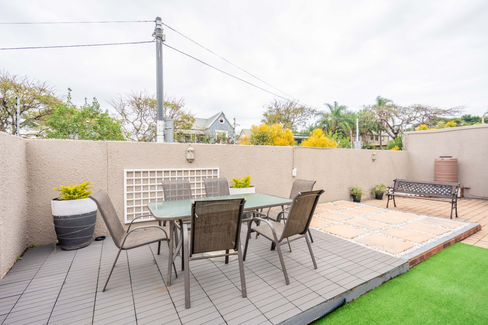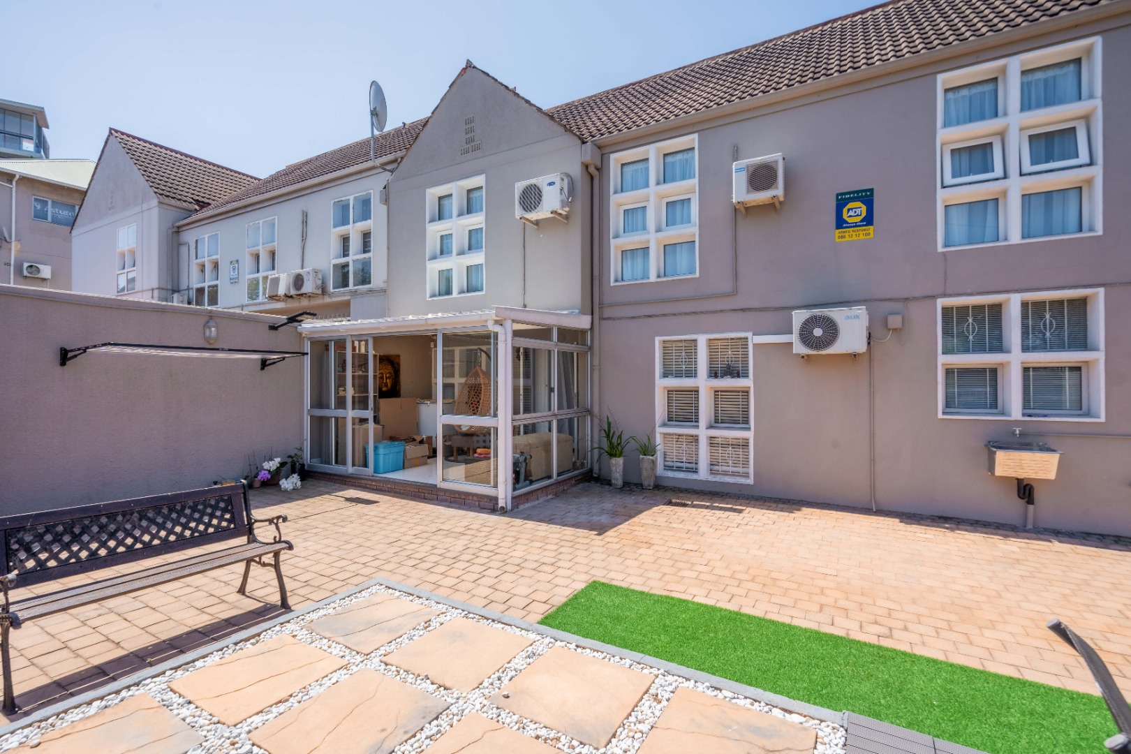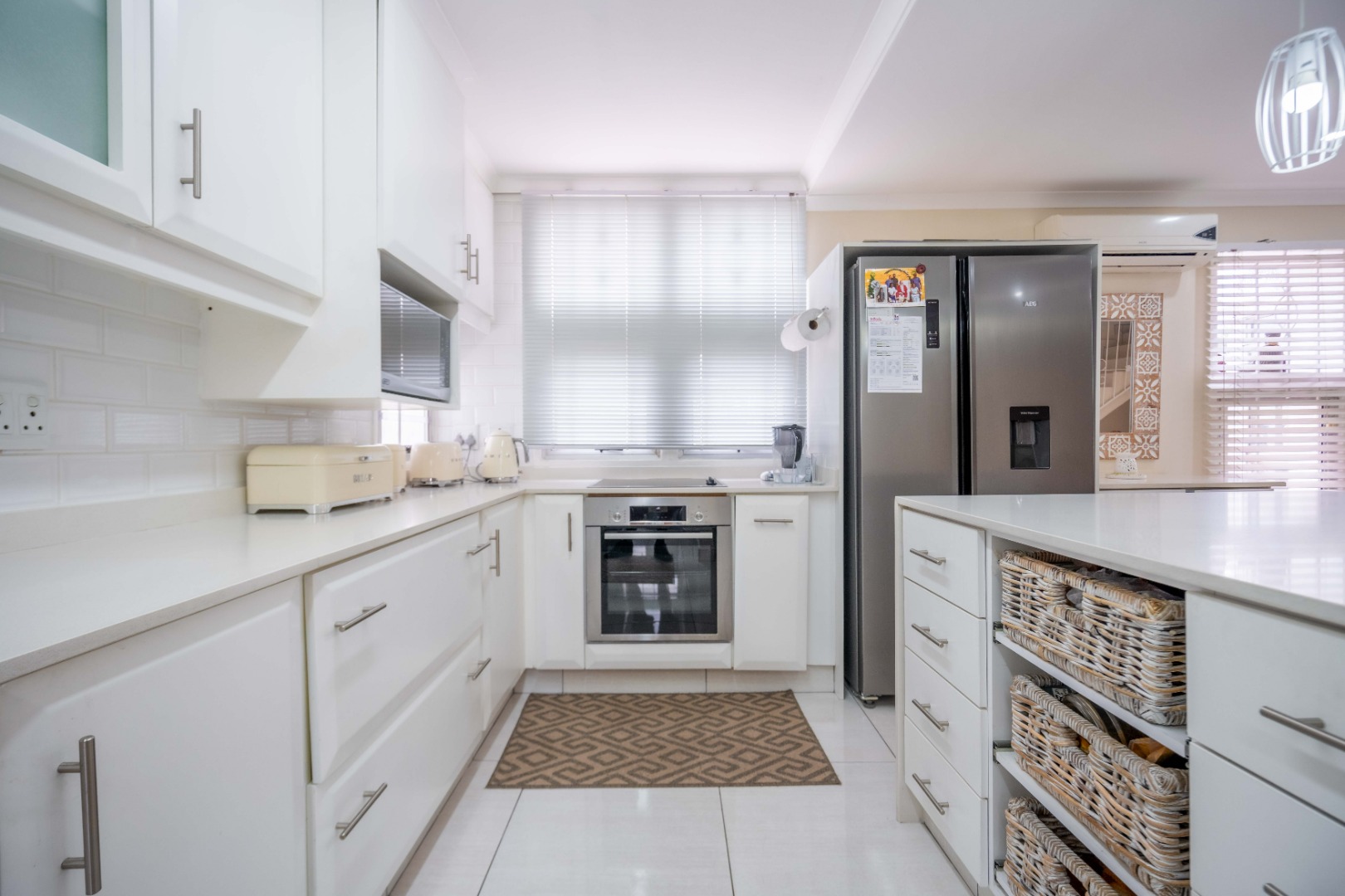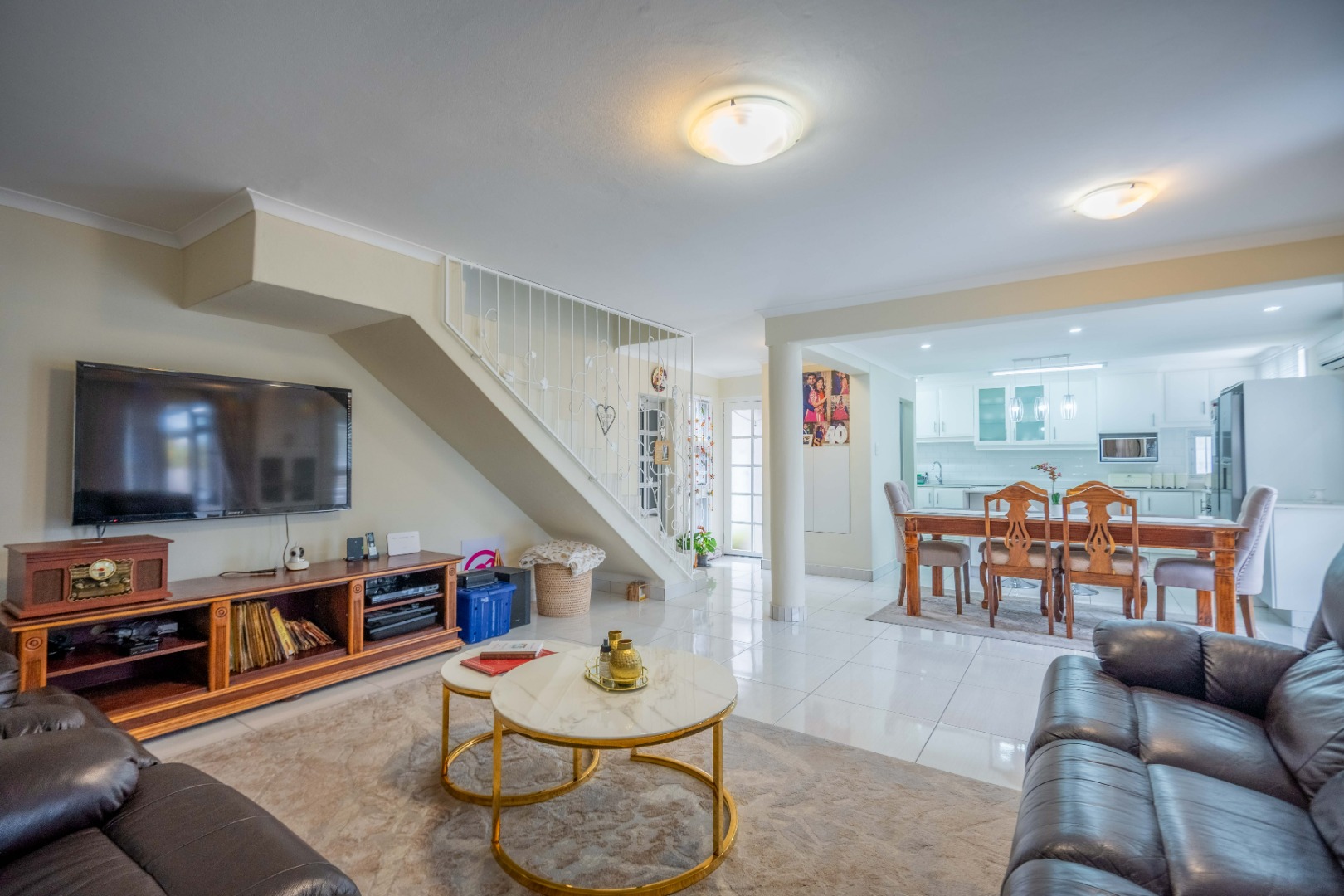 Stunning property with modern finishes, located in a safe and secure complex on Lambert Road. This home offers the perfect lock-up-and-go lifestyle. Upon entry, you are welcomed into an open-plan kitchen, dining area, and lounge. The kitchen features a centre island, Caesarstone countertops, space for a double-door fridge, and ample cupboard space. The kitchen flows seamlessly into the dining area and spacious lounge, which opens onto an aluminium-enclosed patio with sliding doors leading to a large courtyard—ideal for entertaining guests. A guest toilet is conveniently located downstairs.