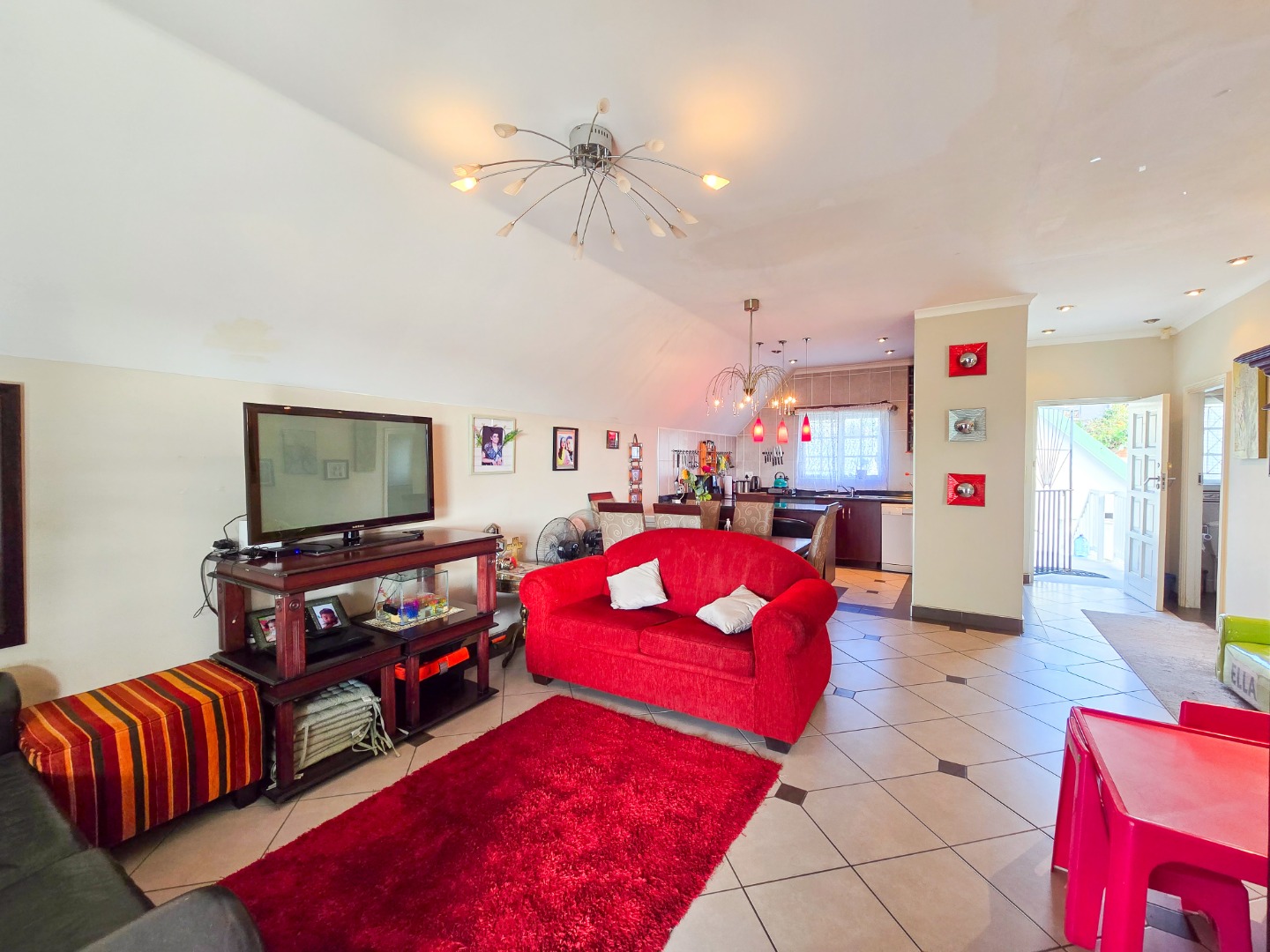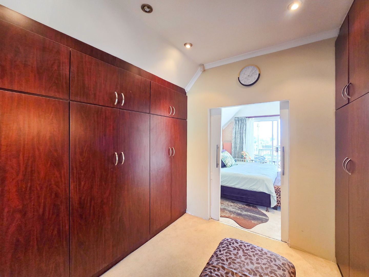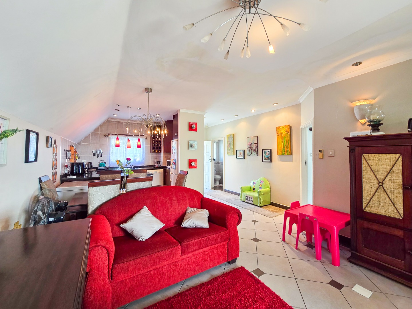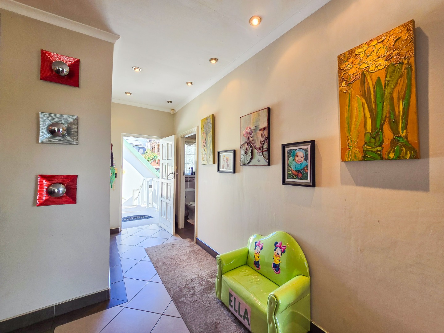 This property forms part of a three-unit sectional title scheme and is perfectly suited for use as an Airbnb.The unit offers a double garage with direct access into the home. On the lower level, you'll find a spacious lounge that flows onto a wooden deck—an ideal entertainment area for family and friends. The deck leads to a front garden and a side pathway. The lounge connects to an open-plan dining area and a modern kitchen fitted with quartz countertops, built-in cupboards, and a scullery area plumbed for a washing machine. There is also a versatile downstairs room that can be used as a bedroom or office, with access to the outside area and plenty of natural light. You have a bedroom with it's own ensuite. The upstairs bathroom includes a bathtub, toilet, and basin. Upstairs, there are two spacious bedrooms, both with built-in cupboards. The main bedroom offers a full ensuite bathroom with a bathtub, shower, toilet, and basin, and enjoys beautiful city views.