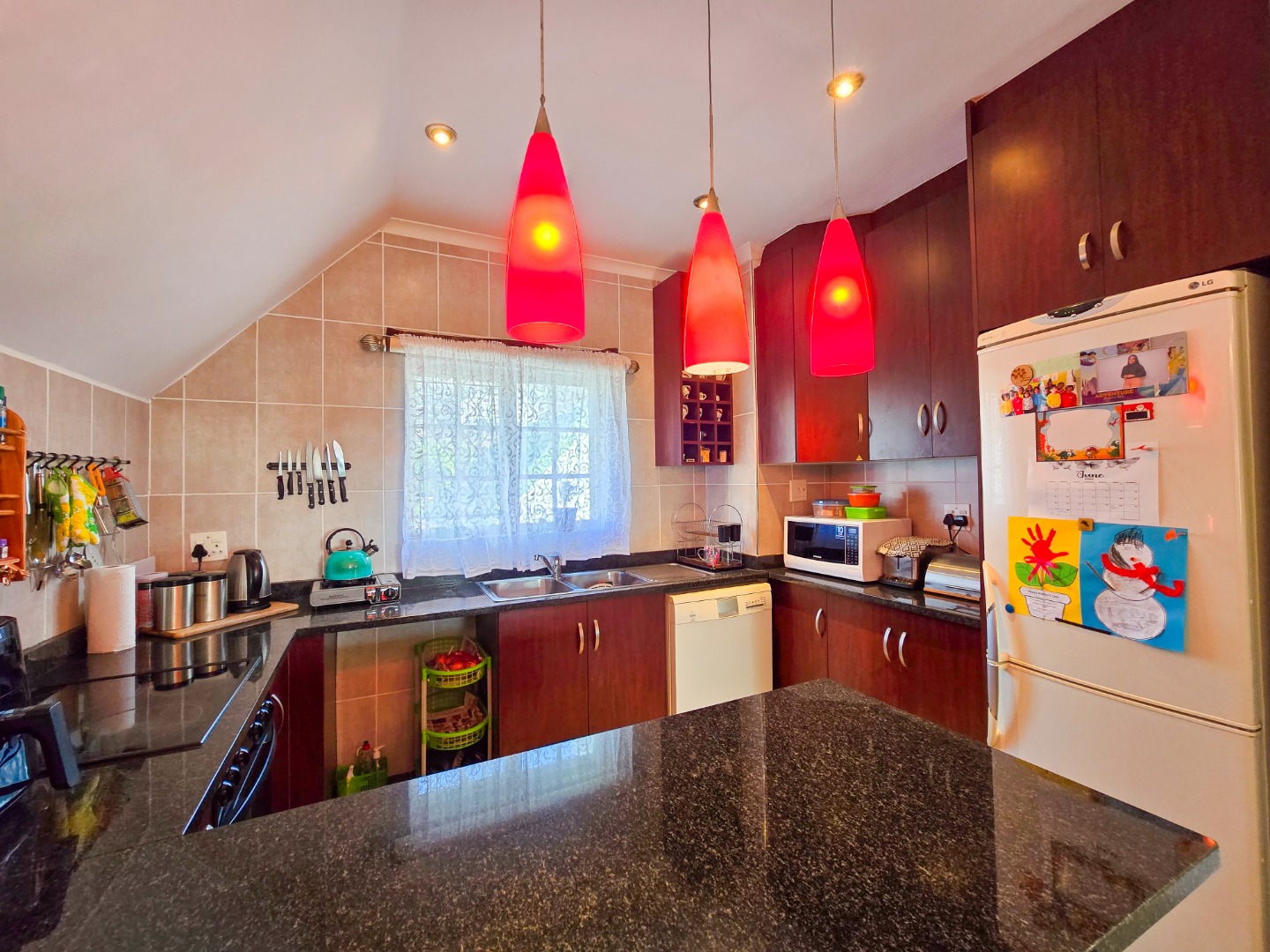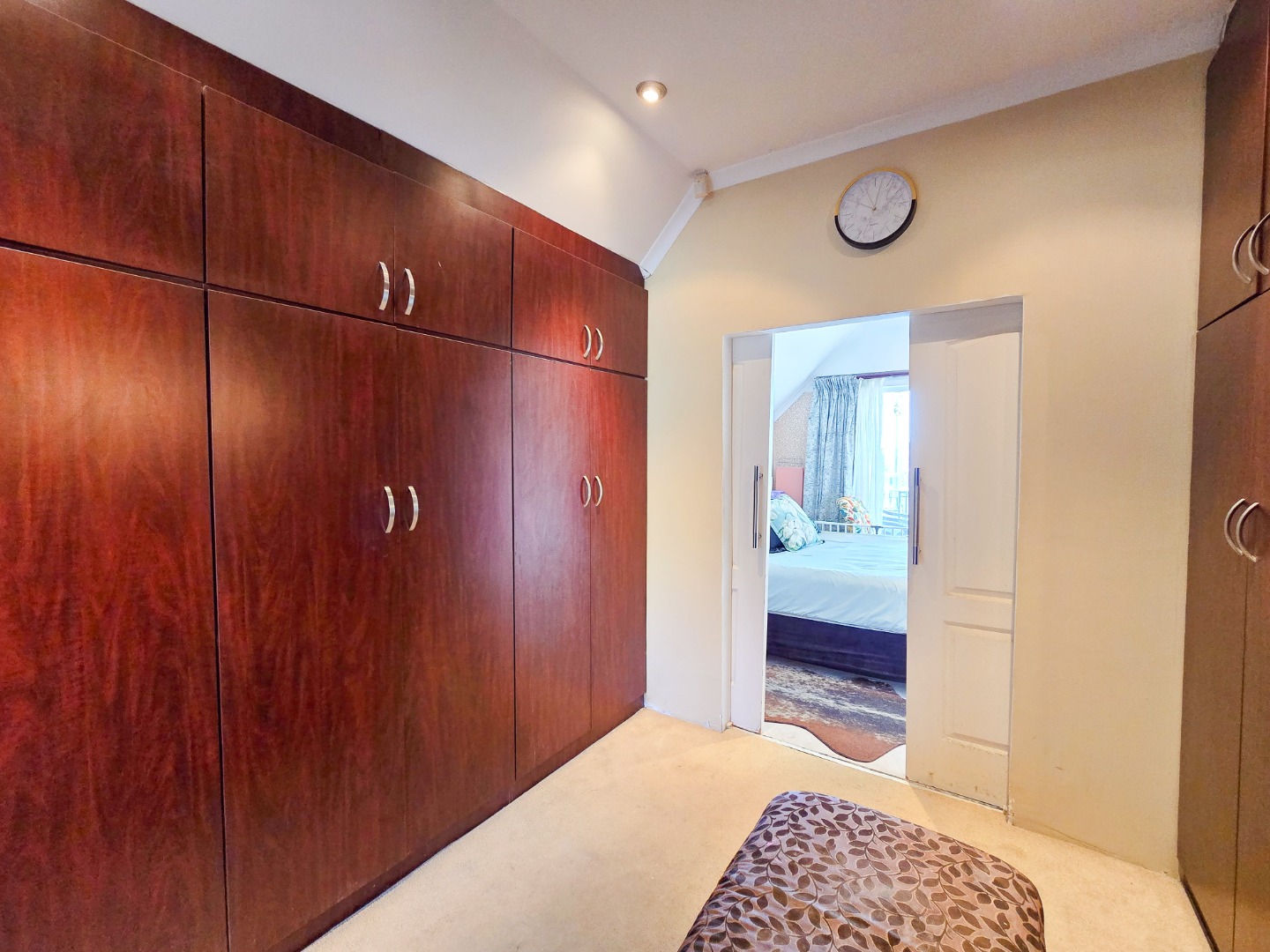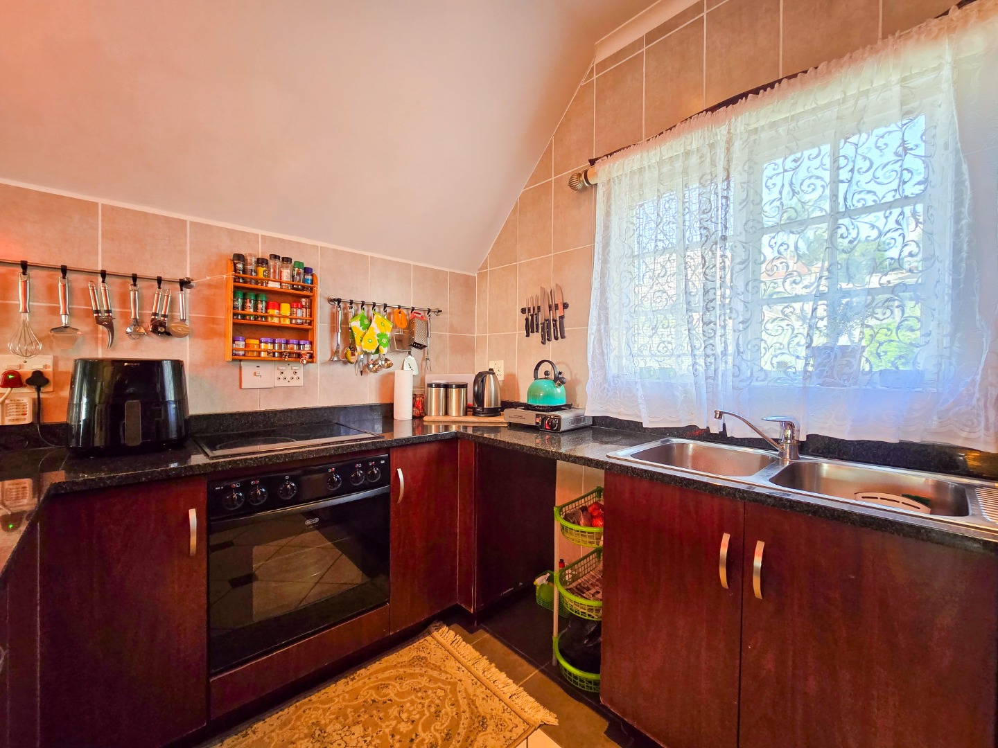This property forms part of a three-unit sectional title scheme and is perfectly suited for use as an Airbnb.The unit offers a double garage with direct access into the home. On the lower level, you'll find a spacious lounge that flows onto a wooden deck—an ideal entertainment area for family and friends. The deck leads to a front garden and a side pathway. The lounge connects to an open-plan dining area and a modern kitchen fitted with quartz countertops, built-in cupboards, and a scullery area plumbed for a washing machine. There is also a versatile downstairs room that can be used as a bedroom or office, with access to the outside area and plenty of natural light. You have a bedroom with it's own ensuite. The upstairs bathroom includes a bathtub, toilet, and basin. Upstairs, there are two spacious bedrooms, both with built-in cupboards. The main bedroom offers a full ensuite bathroom with a bathtub, shower, toilet, and basin, and enjoys beautiful city views.