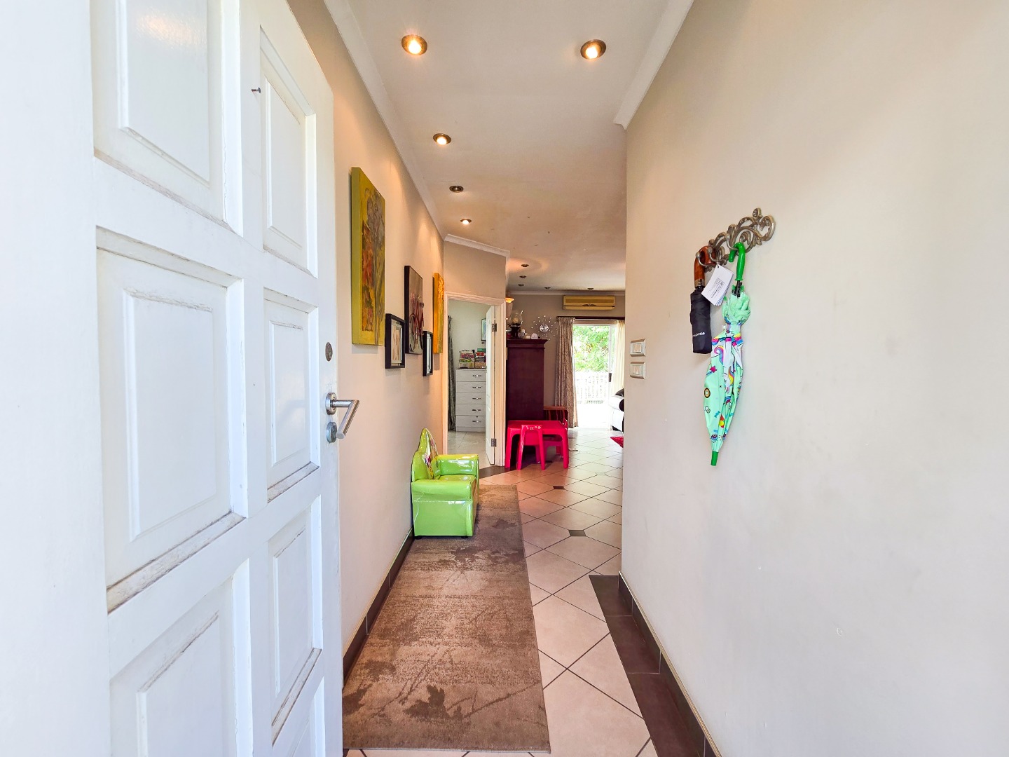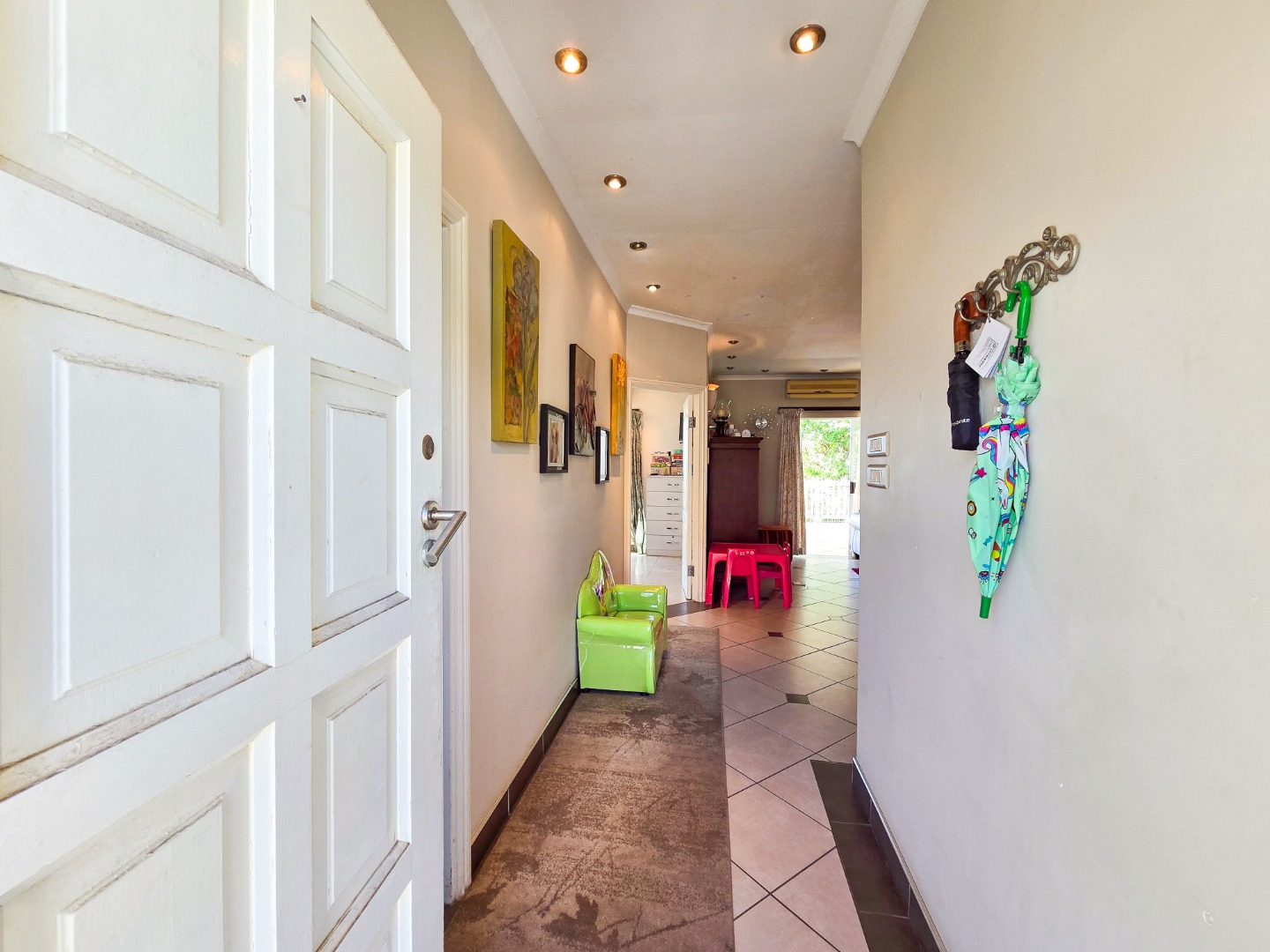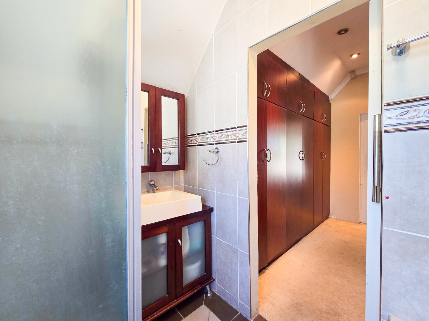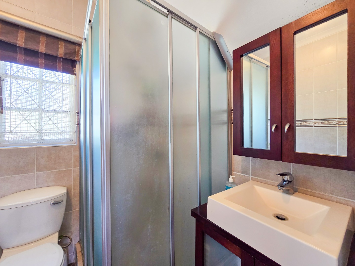 This property forms part of a three-unit sectional title scheme and is perfectly suited for use as an Airbnb.The unit offers a double garage with direct access into the home. On the lower level, you'll find a spacious lounge that flows onto a wooden deck—an ideal entertainment area for family and friends. The deck leads to a front garden and a side pathway. The lounge connects to an open-plan dining area and a modern kitchen fitted with quartz countertops, built-in cupboards, and a scullery area plumbed for a washing machine. There is also a versatile downstairs room that can be used as a bedroom or office, with access to the outside area and plenty of natural light. You have a bedroom with it's own ensuite. The upstairs bathroom includes a bathtub, toilet, and basin. Upstairs, there are two spacious bedrooms, both with built-in cupboards. The main bedroom offers a full ensuite bathroom with a bathtub, shower, toilet, and basin, and enjoys beautiful city views.