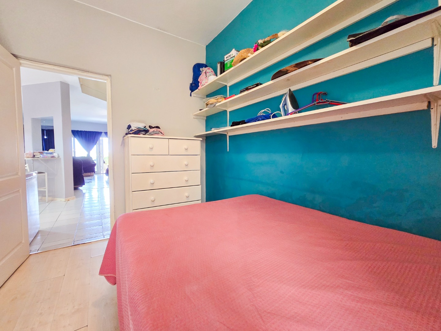 The apartment features a generously sized, open-plan fitted kitchen equipped with a stove, oven, and ample cupboard space. The kitchen seamlessly flows into the dining area and cosy lounge, which in turn opens onto a large balcony offering breathtaking sea and city views — ideal for hosting family gatherings and social events. The bright and airy bedroom includes a walk-in closet with plenty of cupboard space and a well-appointed en-suite bathroom with a shower, basin, toilet, and tiled floors. One single garage.