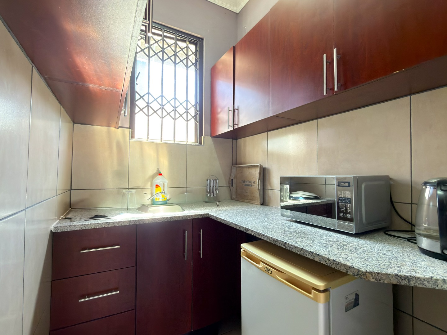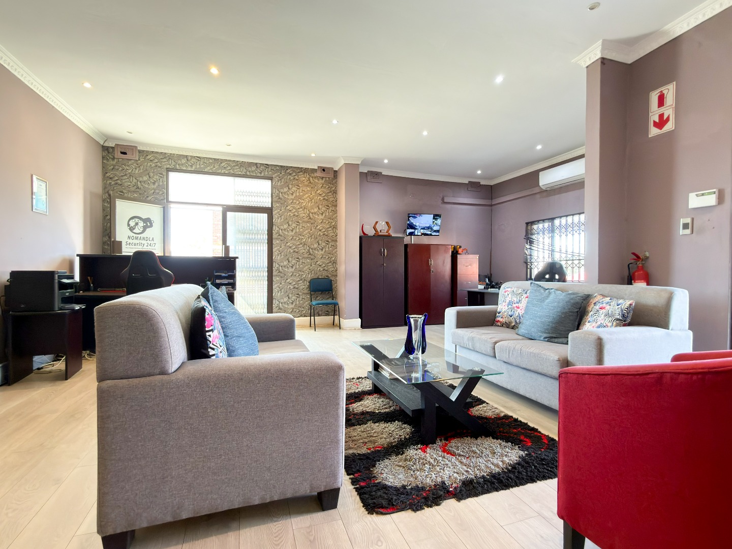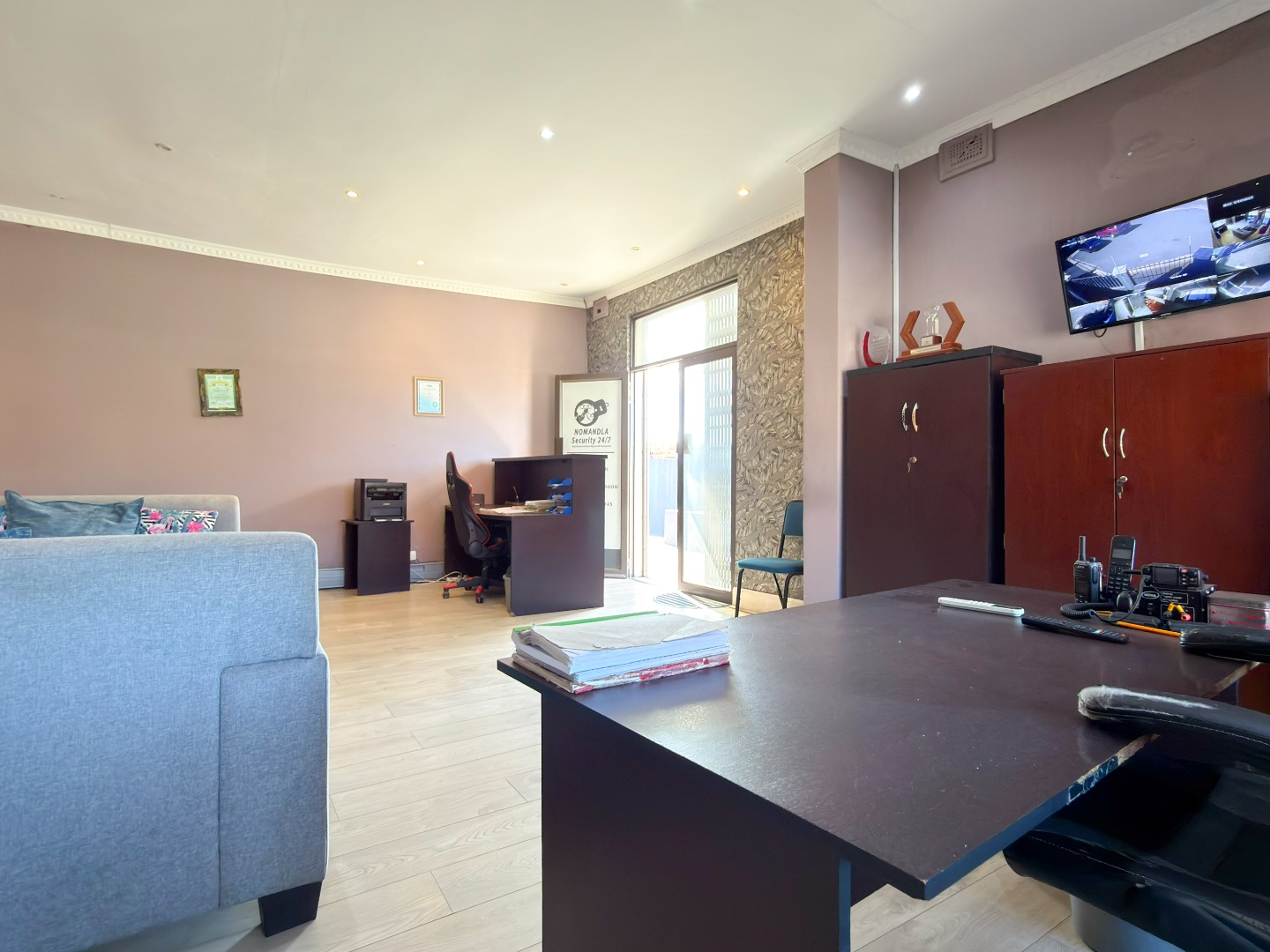 Internally, the building is designed to provide a professional yet welcoming environment, featuring a stylish reception area with a guest waiting lounge that creates an excellent first impression for visiting clients. The layout further comprises a spacious manager’s office, a well-appointed boardroom, and three practical storerooms to accommodate operational and storage needs. Comfort and modern appeal are enhanced by full air-conditioning throughout, elegant wooden laminate flooring, contemporary downlight ceilings, as well as a kitchenette and internal ablution facilities for convenience. Externally, the property continues to impress with an outdoor reception and waiting area, beautifully paved and immaculately maintained grounds, an additional exterior toilet, and two fitting rooms, all contributing to the functionality and versatility of the premises. Boasting General Residential 2 (GR2) zoning, excellent security infrastructure, generous parking facilities, and a good location, this outstanding property is ideally suited to a broad range of professional, administrative, consulting, or security-related businesses. Offering prestige, flexibility, and exceptional value, this remarkable property presents the perfect opportunity to establish or expand your business from one of Windermere’s most prominent addresses.