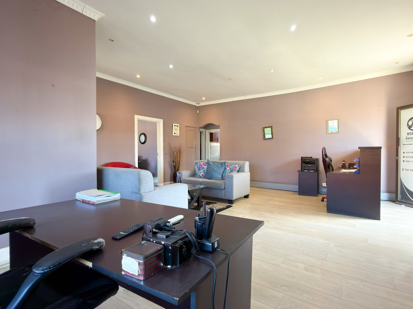 Nestled at the quiet cul-de-sac end of the street, this exceptional property offers a rare blend of privacy and convenience while benefiting from its position within a thriving hub of surrounding commercial activity. Perfectly situated directly opposite the Stamford Hill Swimming Pool, the building enjoys outstanding visibility, prominence, and ease of access, making it a highly desirable address for business owners and investors alike. Currently occupied by a security company, the property comfortably accommodates both residential living and business operations, showcasing its versatility, functional design, and adaptability for a variety of commercial uses. Meticulously maintained throughout, the premises are presented in immaculate condition and are move-in ready for immediate occupation.