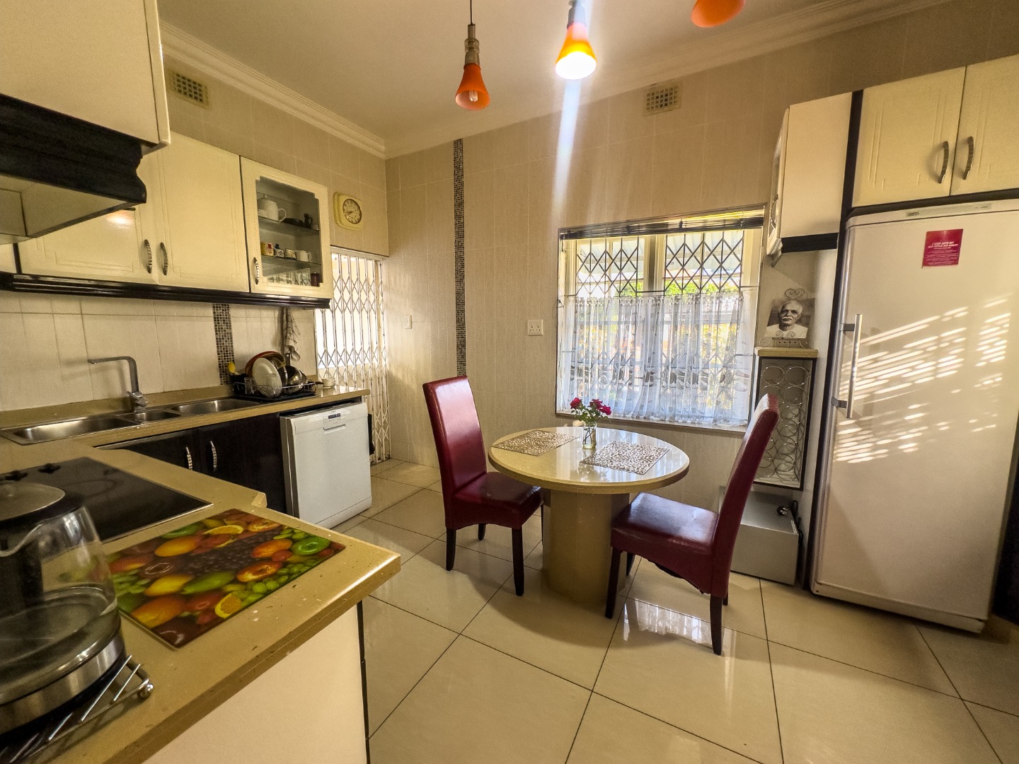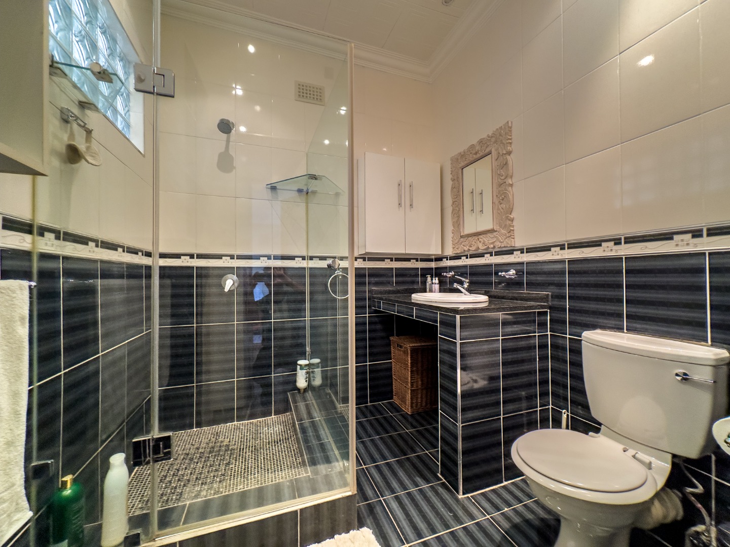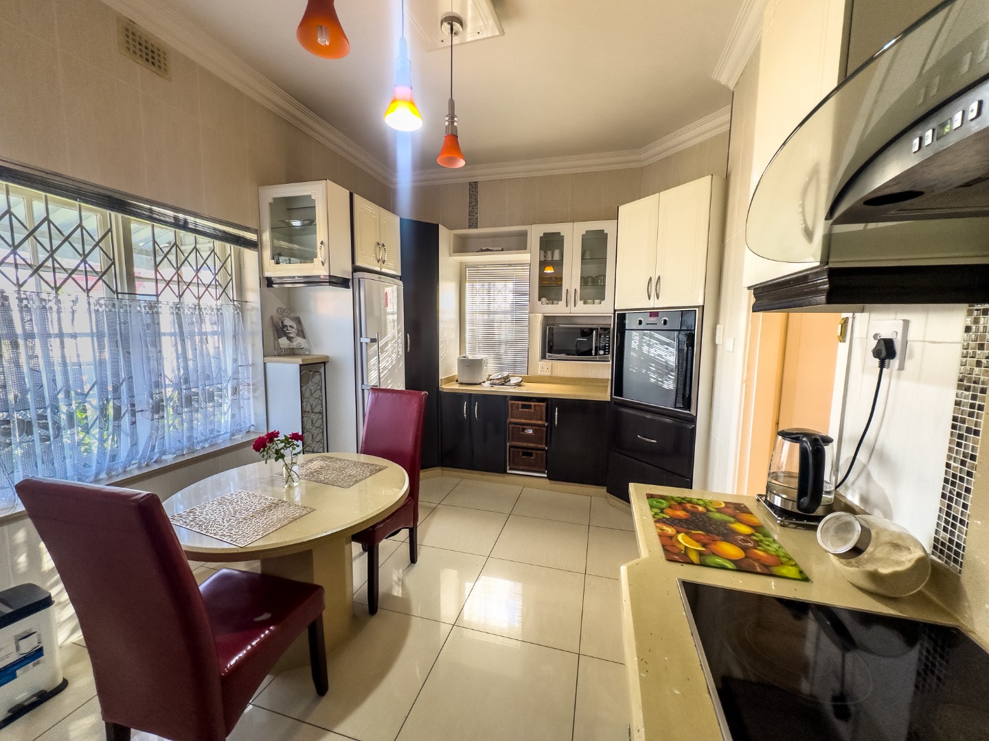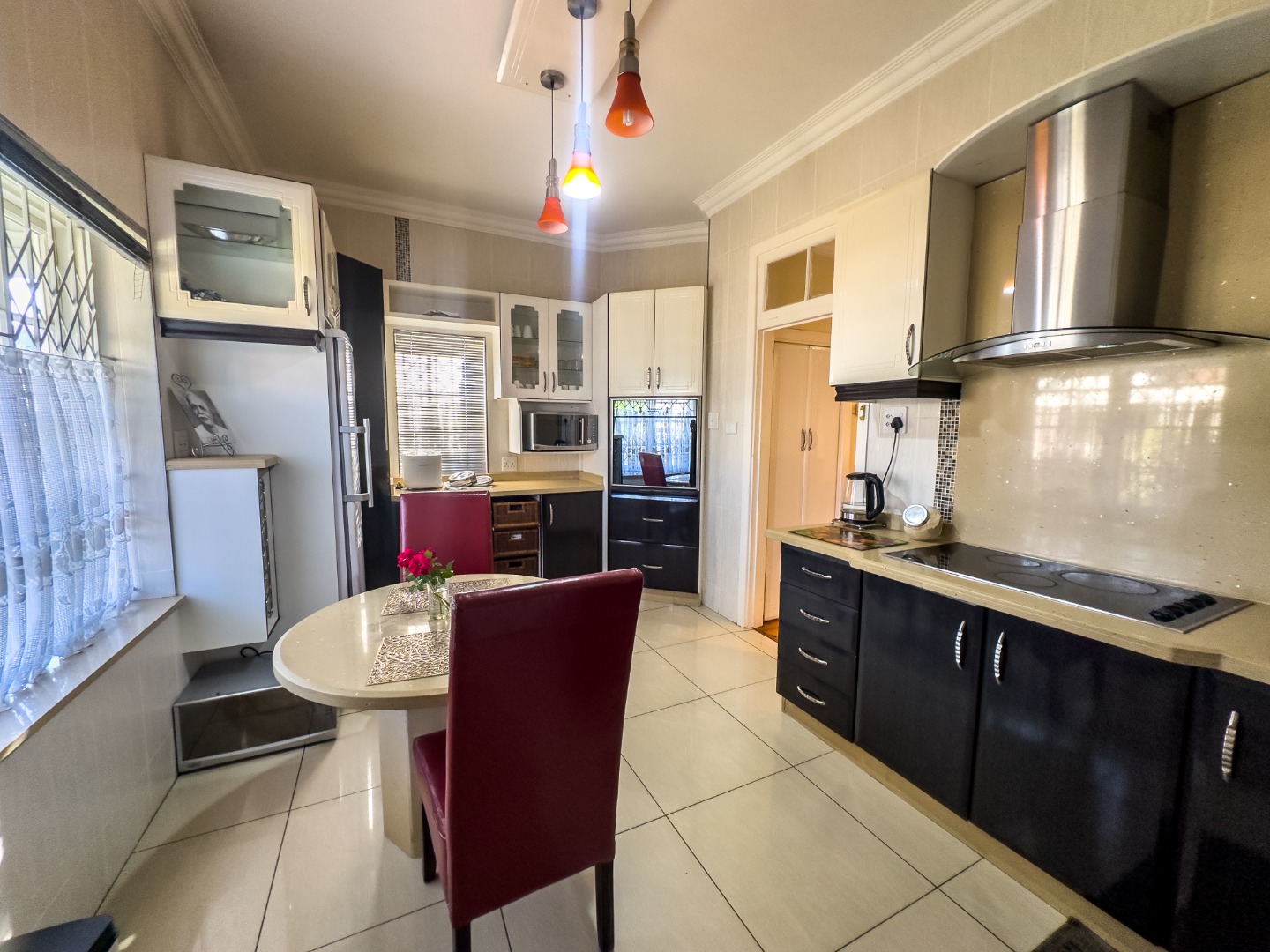 - Exterior & Extras: Staff quarters with bathroom, laundry setup, and outdoor washing line. Private garage and driveway with parking for up to 5 vehicles. Security features: alarm system, burglar bars, intercom, perimeter wall, and security gates. Plastered walls, wood-framed windows, tiled roof