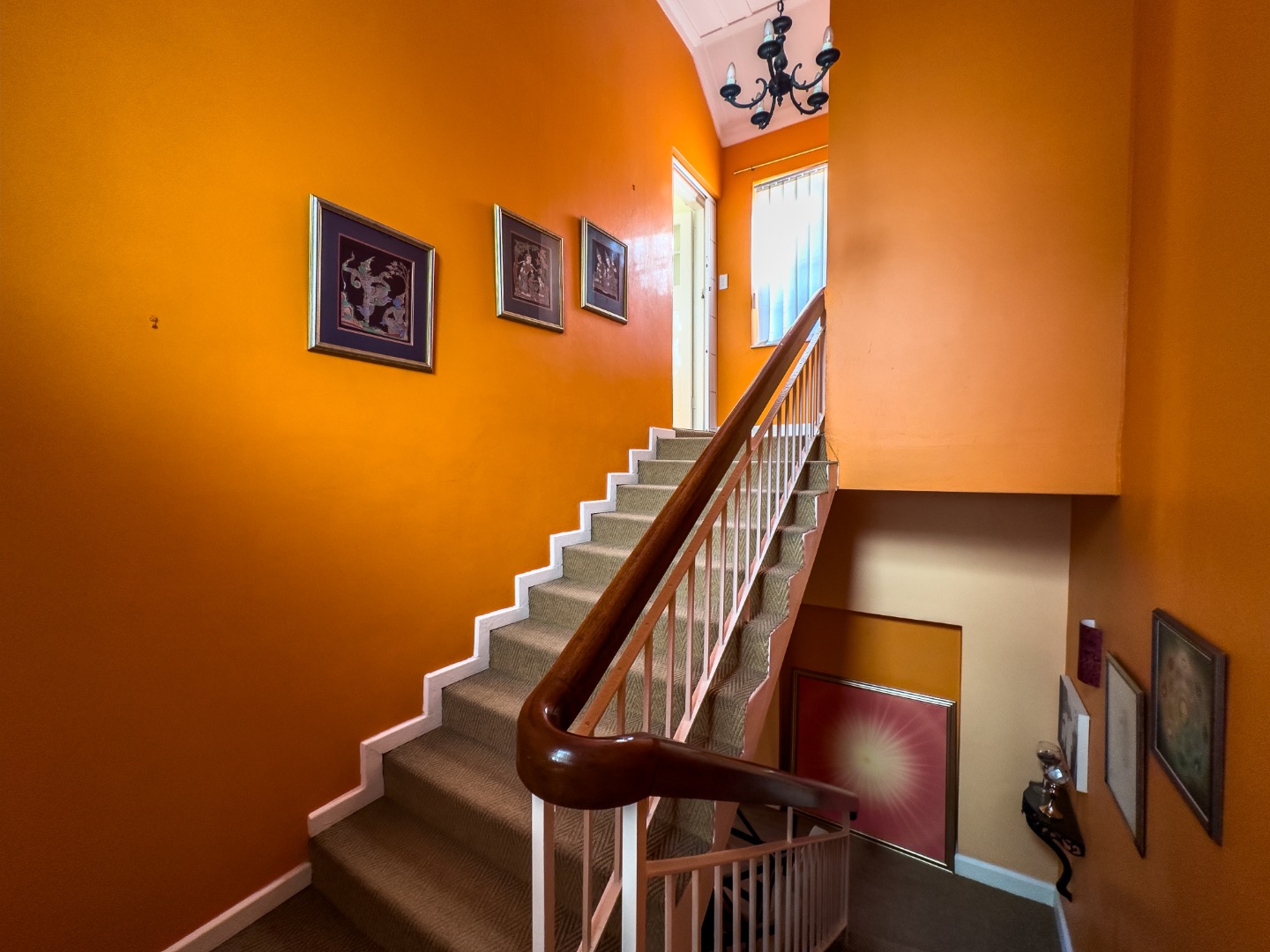 The spacious staircase features integrated storage and offers additional usable space on each landing—ideal for a reading nook, display area, or compact study zone.
