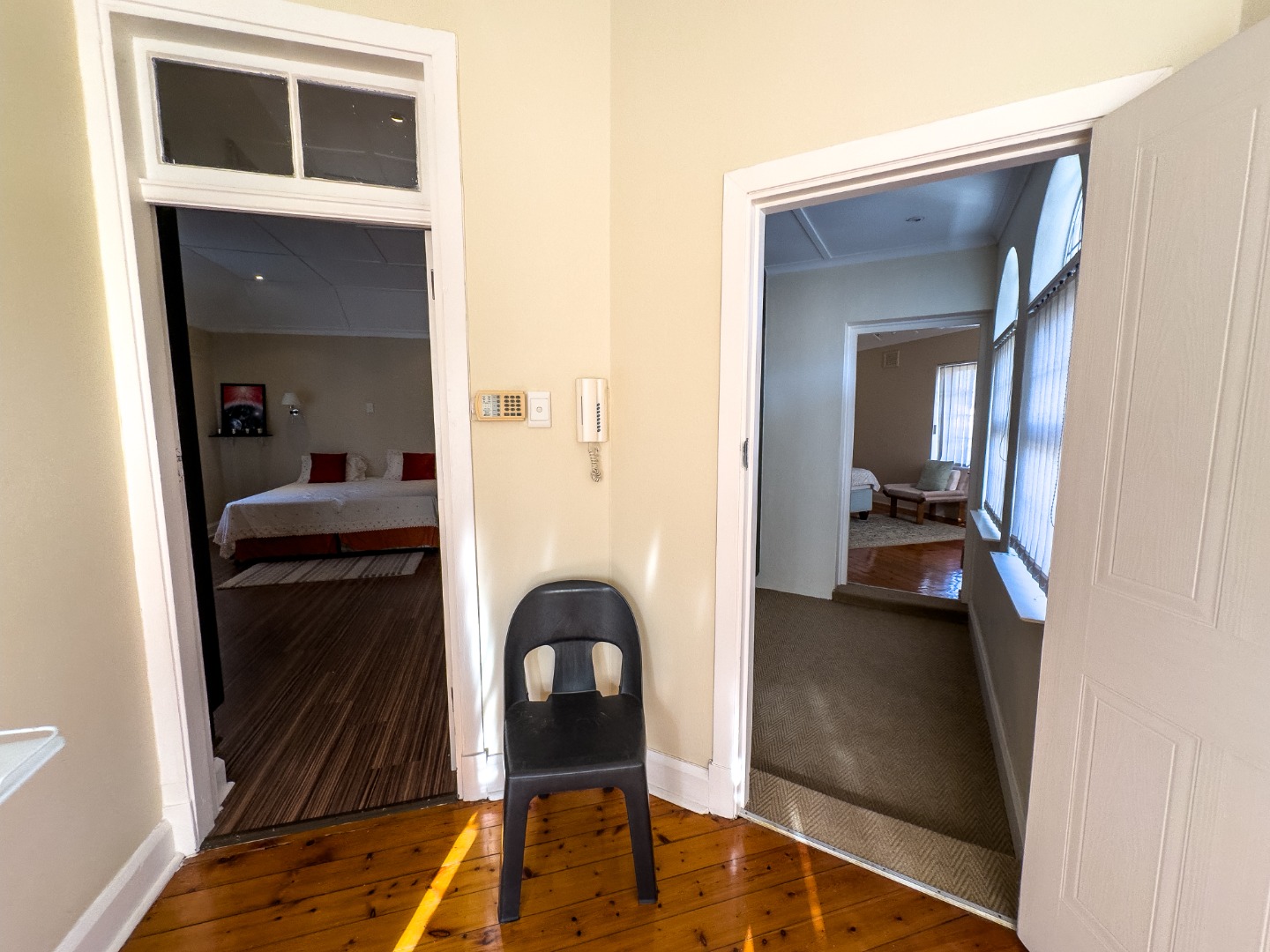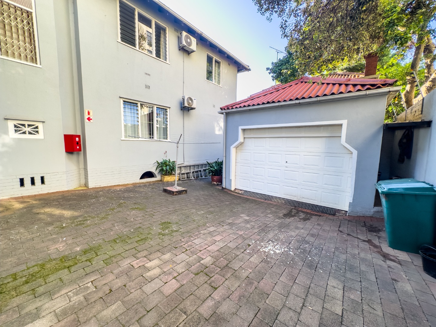 Additional features include dedicated staff accommodation with a communal bathroom, a plumbed laundry area, and external washing lines. The property also includes a private garage, its own entrance gate, and comprehensive security measures—such as an alarm system, burglar bars, intercom, and security gates.