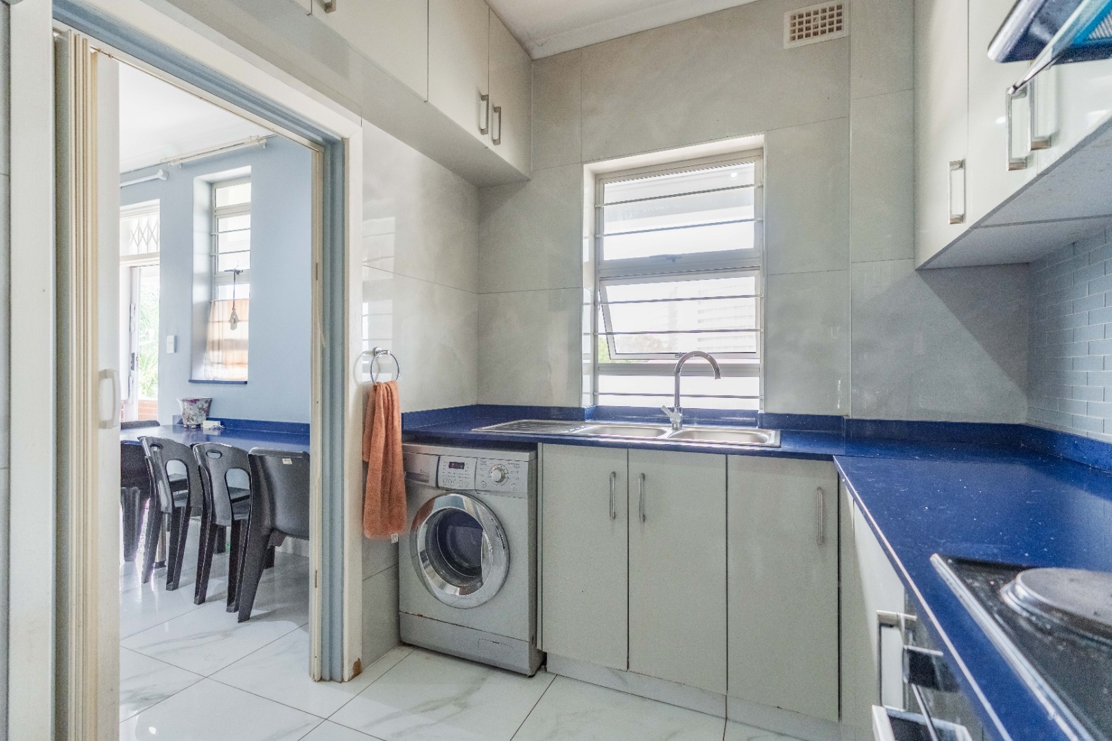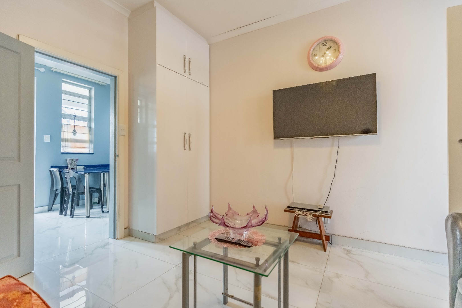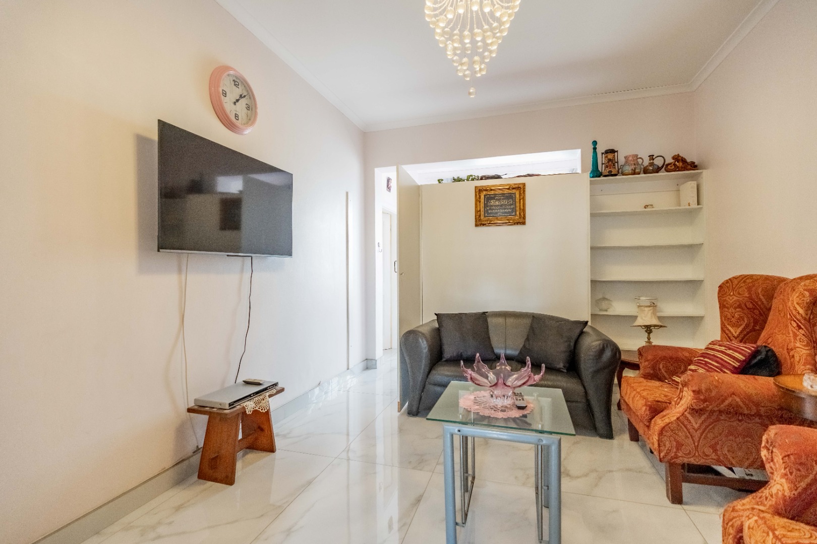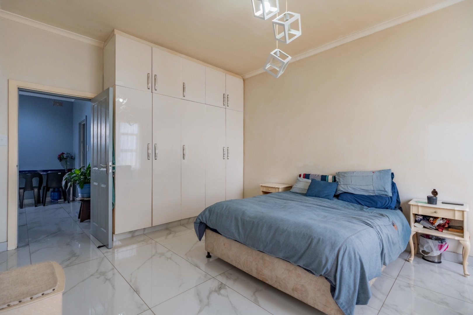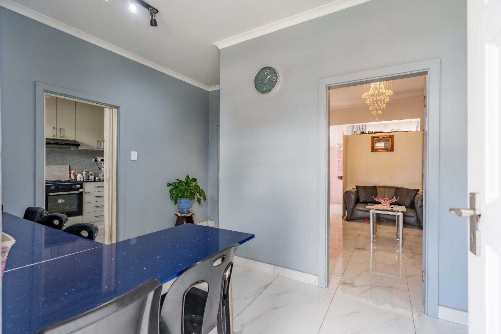 Modern fully fitted kitchen, large dining area, two large bedrooms with a half bedroom directly off the lounge, full modern bathroom and separate toilet.