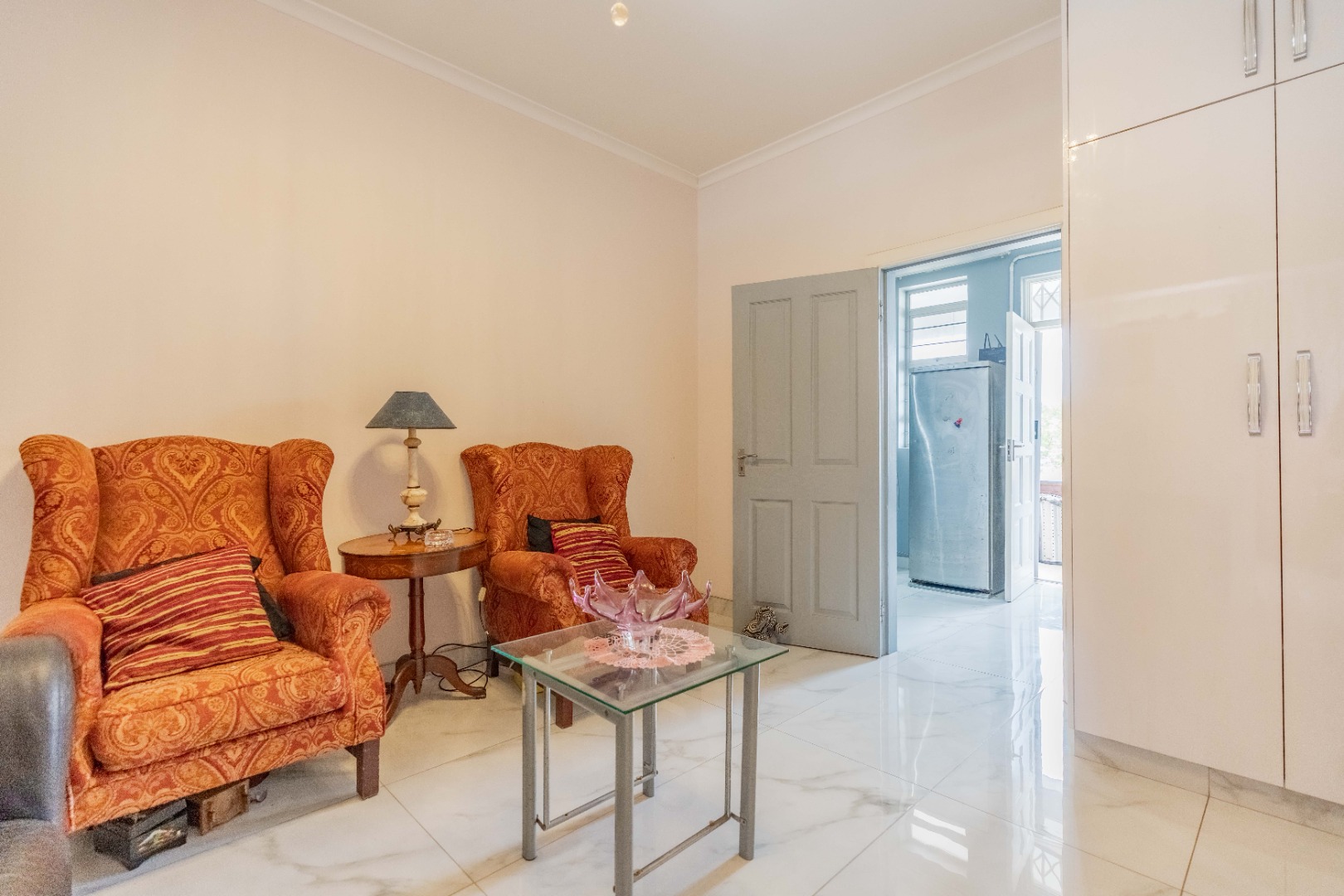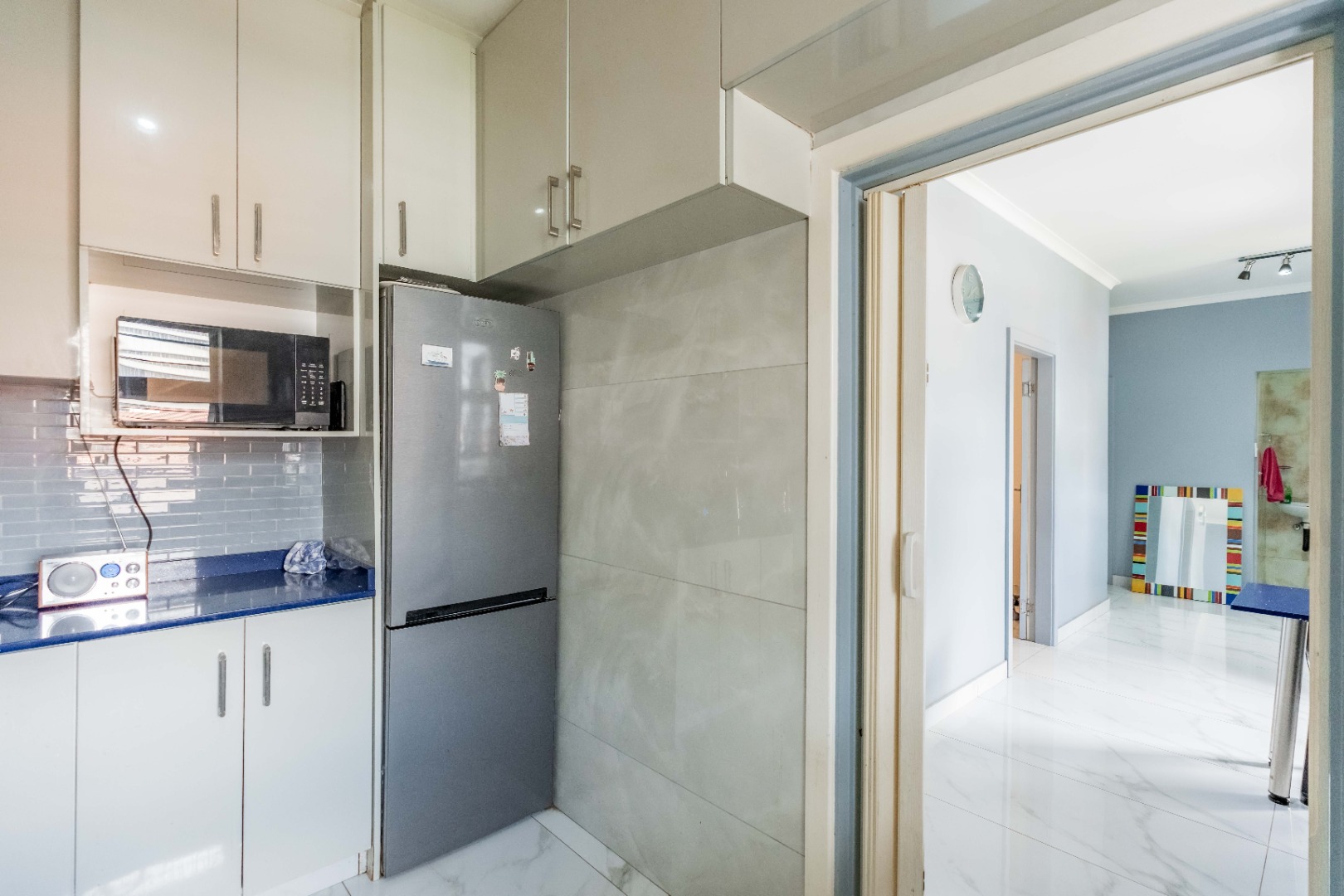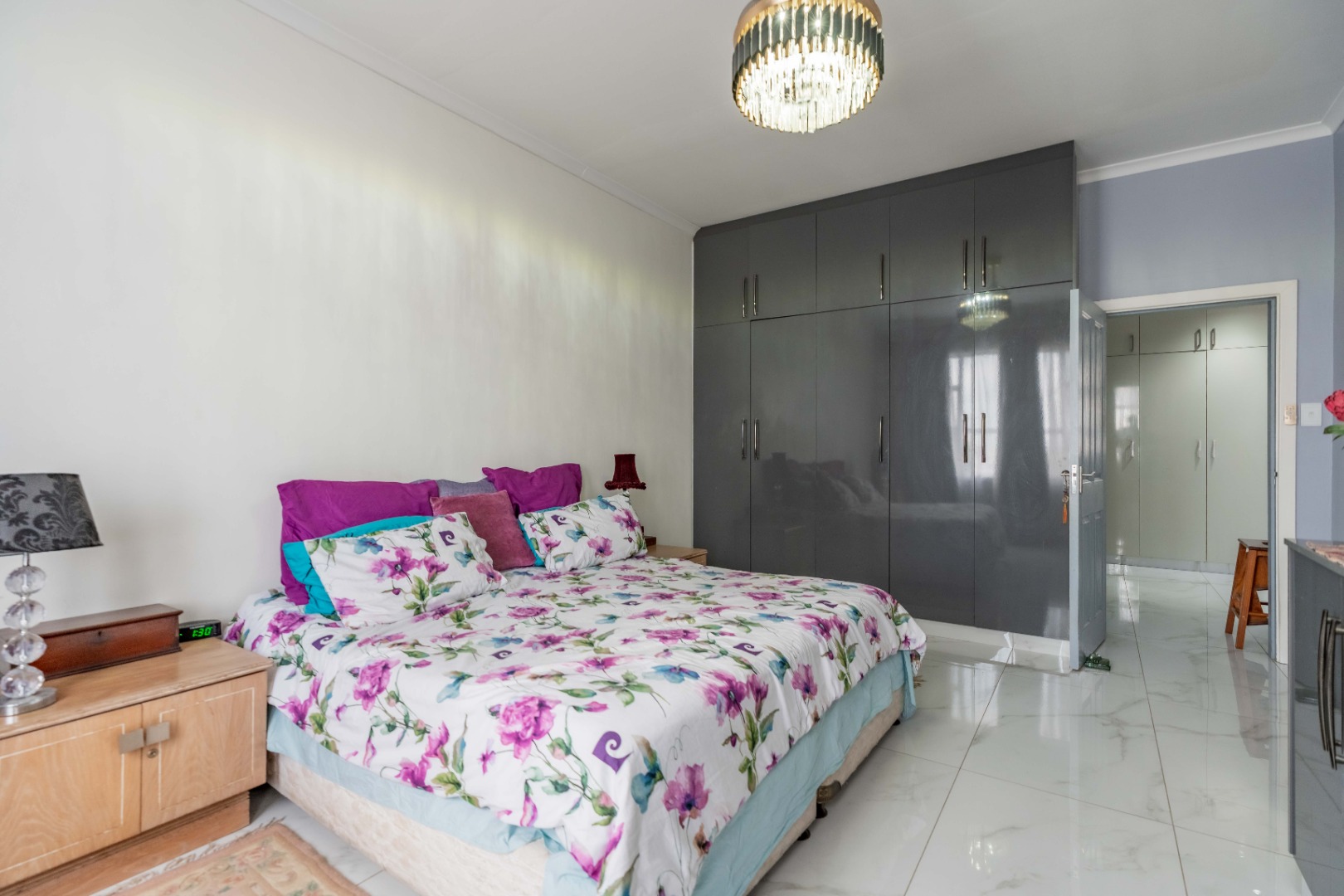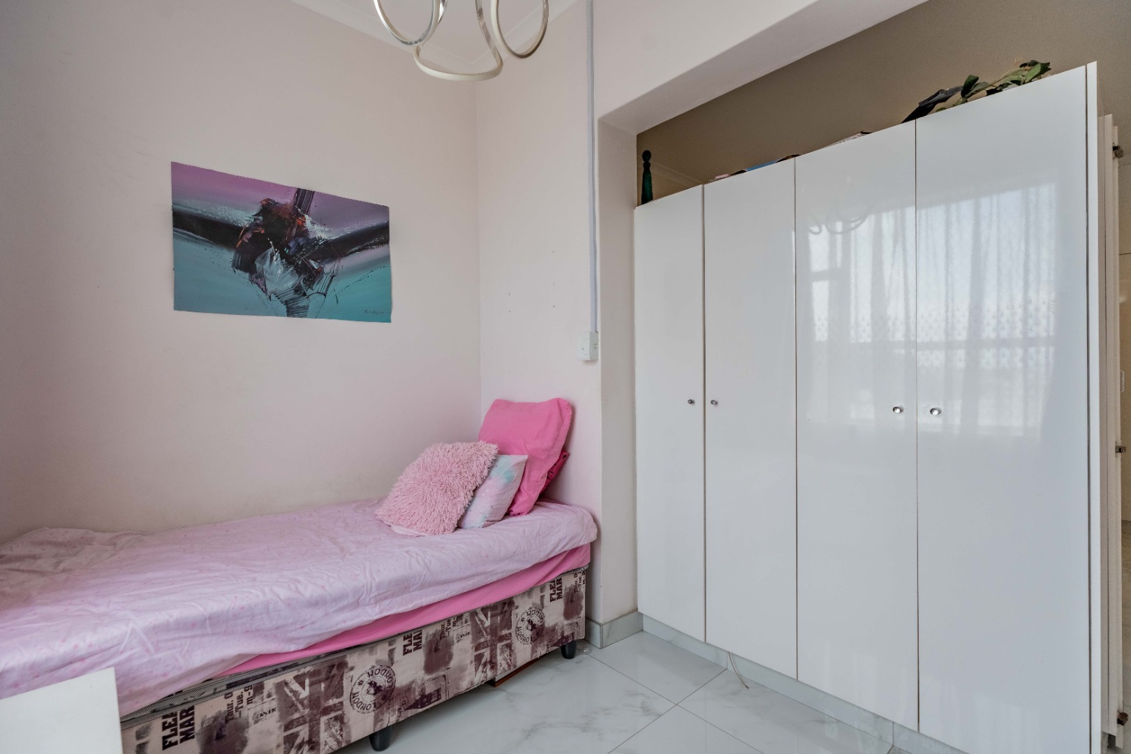Modern fully fitted kitchen, large dining area, two large bedrooms with a half bedroom directly off the lounge, full modern bathroom and separate toilet.