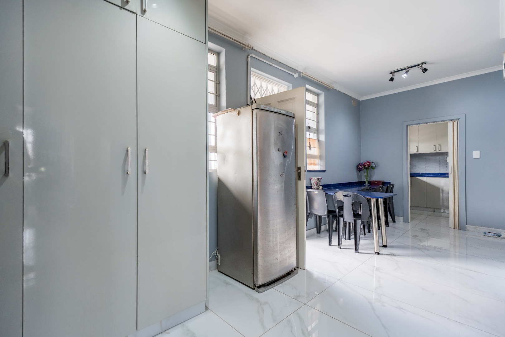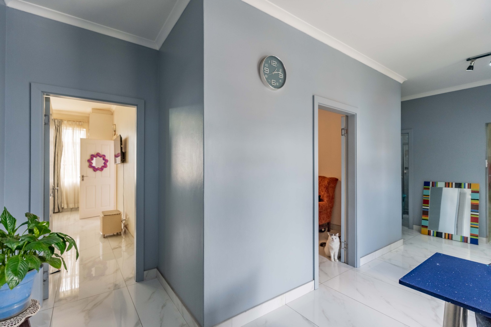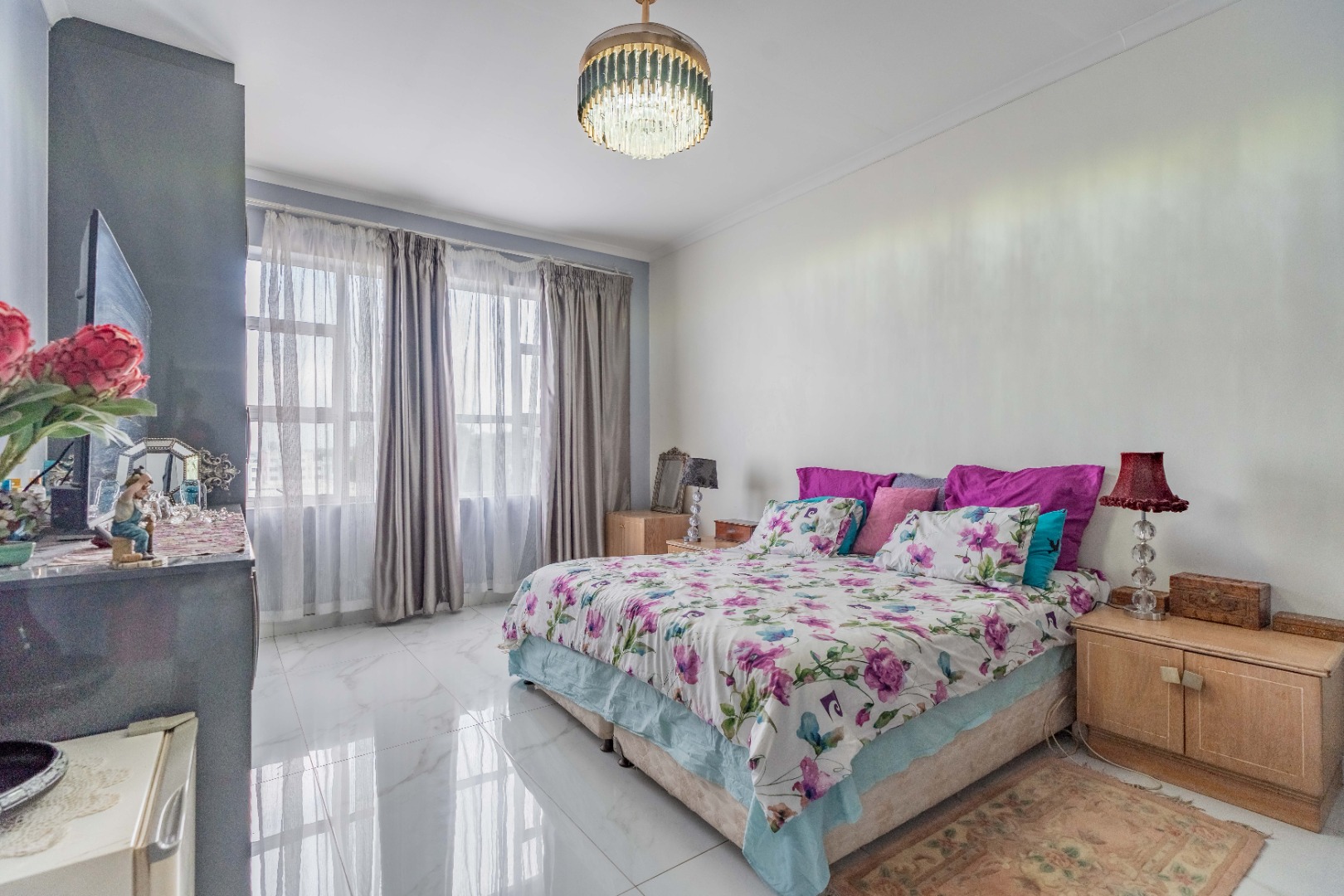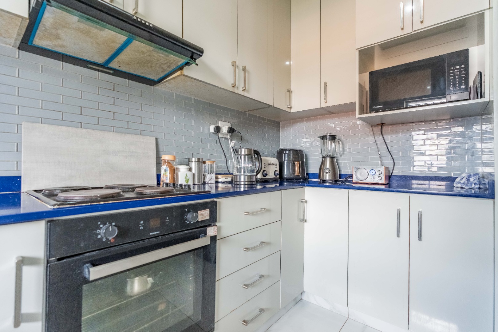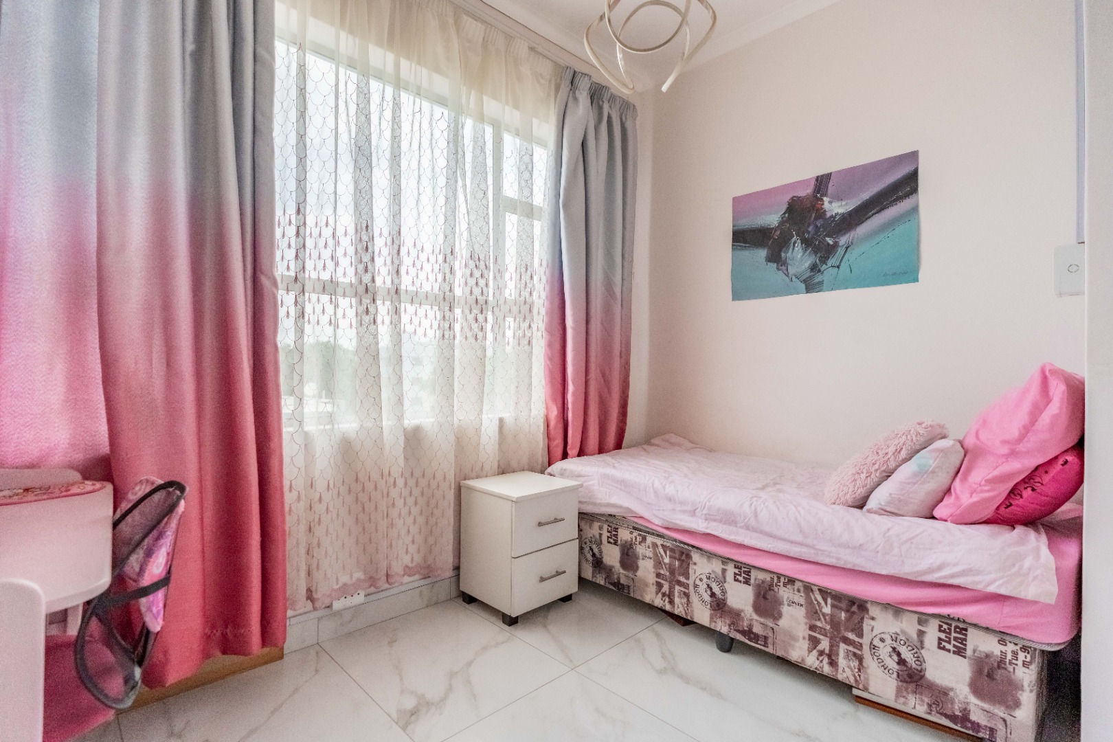 Modern fully fitted kitchen, large dining area, two large bedrooms with a half bedroom directly off the lounge, full modern bathroom and separate toilet.