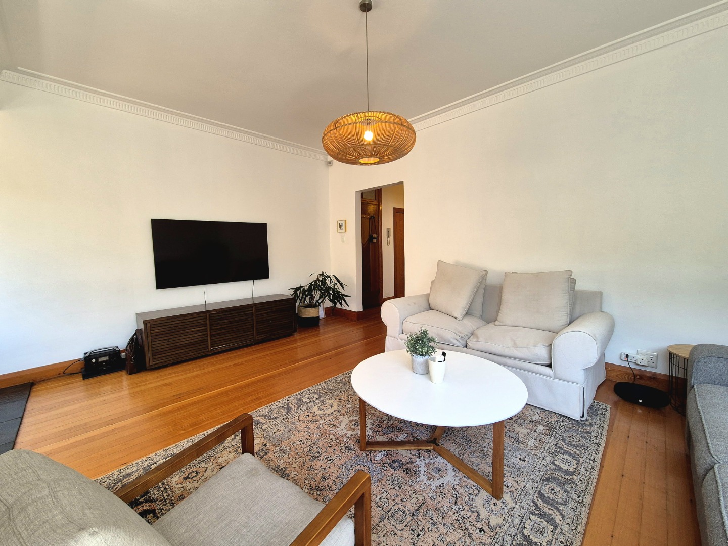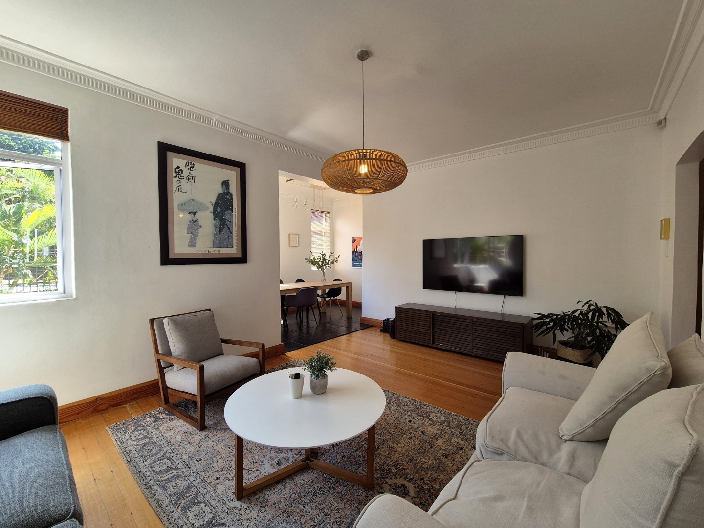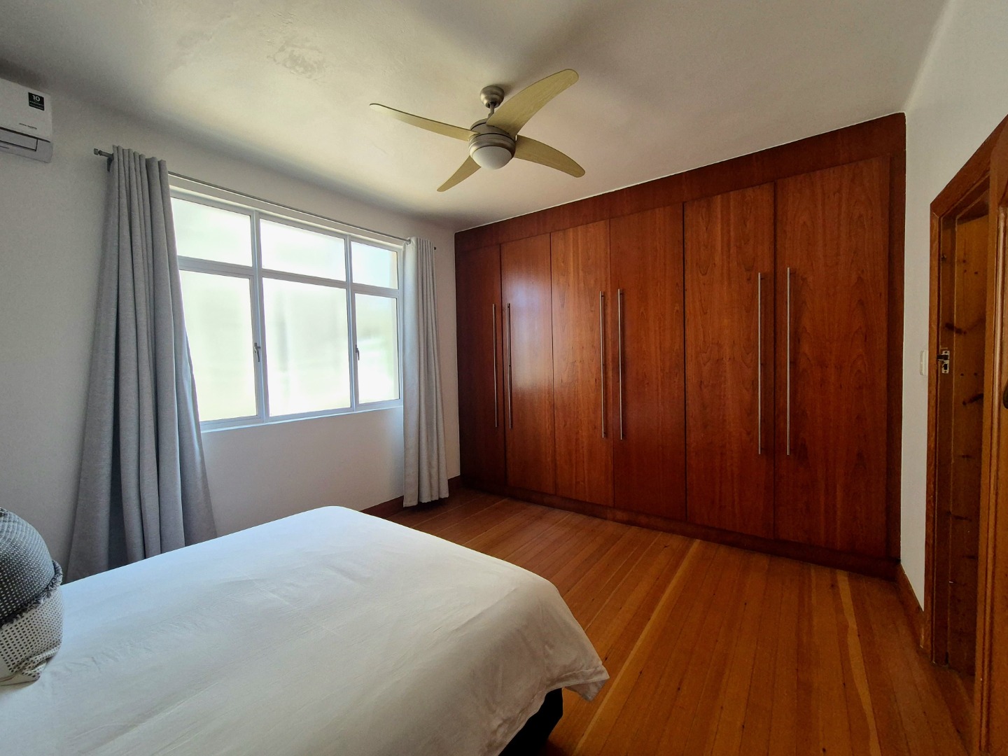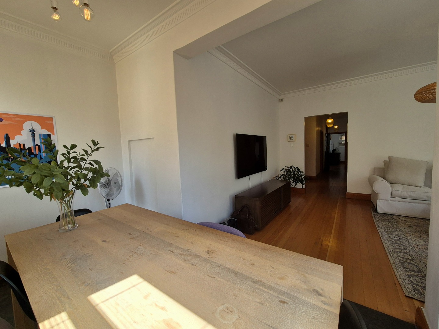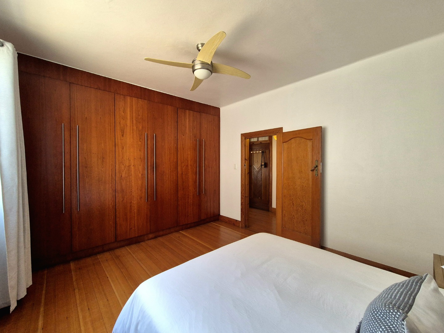 The bedrooms are large and provides plenty of cupboard space. The wooden floors are in excellent condition throughout. Open plan lounge and dining room. Neat fully fitted kitchen with a double bowl sink, built in stove, oven and extractor. Modern renovated family bathroom with toilet, basin and shower. The main bedroom is huge with plenty of cupboard space. There are aluminium windows throughout the apartment.