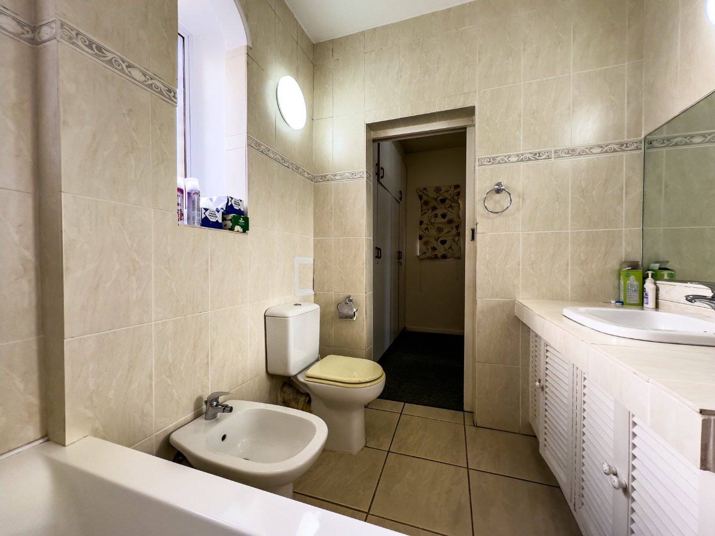 The home features three generously sized bedrooms, all with built-in wardrobes. The main suite includes a walk-in dressing room and a private en-suite bathroom. Of the three bathrooms, two include bathtubs, while the third offers a walk-in shower.
