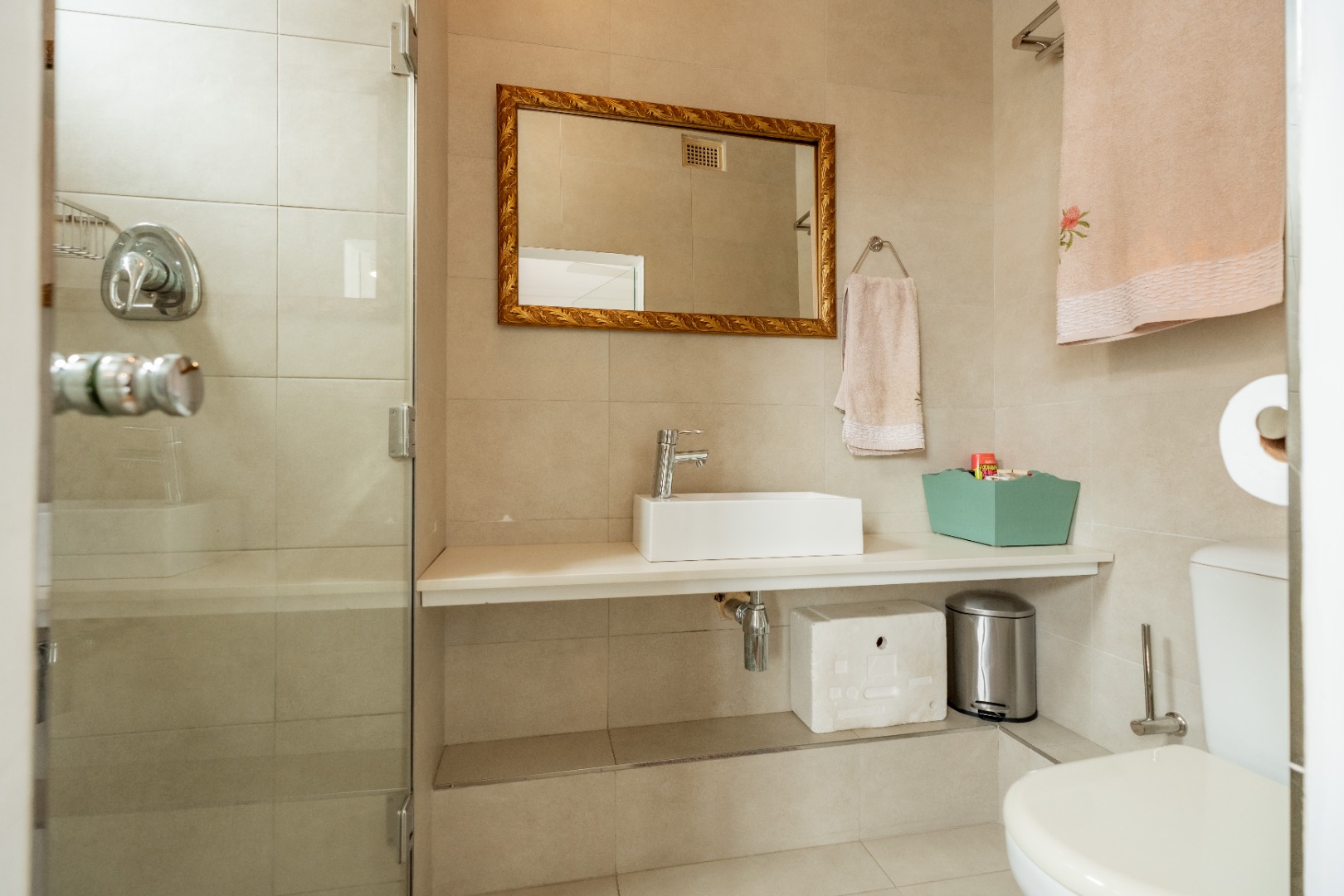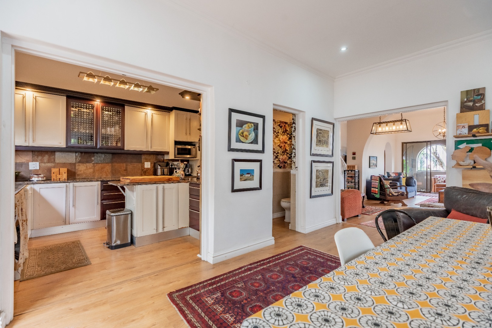 The open-plan lounge and dining area provides seamless flow, complemented by a dedicated office space and a convenient guest loo. The home features laminate flooring, quality tiling, and a fully fitted kitchen with granite countertops. Aluminium windows and air conditioning throughout add comfort and durability.