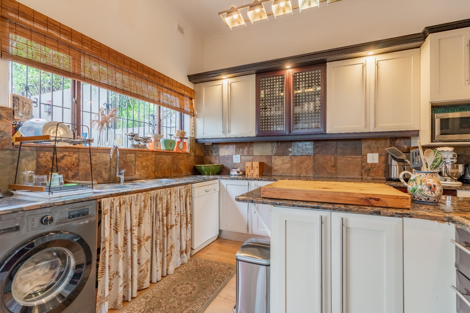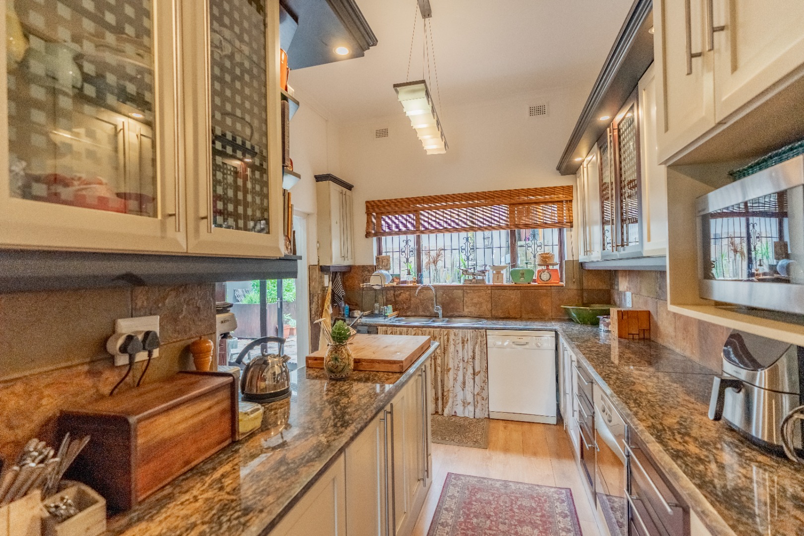 The open-plan lounge and dining area provides seamless flow, complemented by a dedicated office space and a convenient guest loo. The home features laminate flooring, quality tiling, and a fully fitted kitchen with granite countertops. Aluminium windows and air conditioning throughout add comfort and durability.