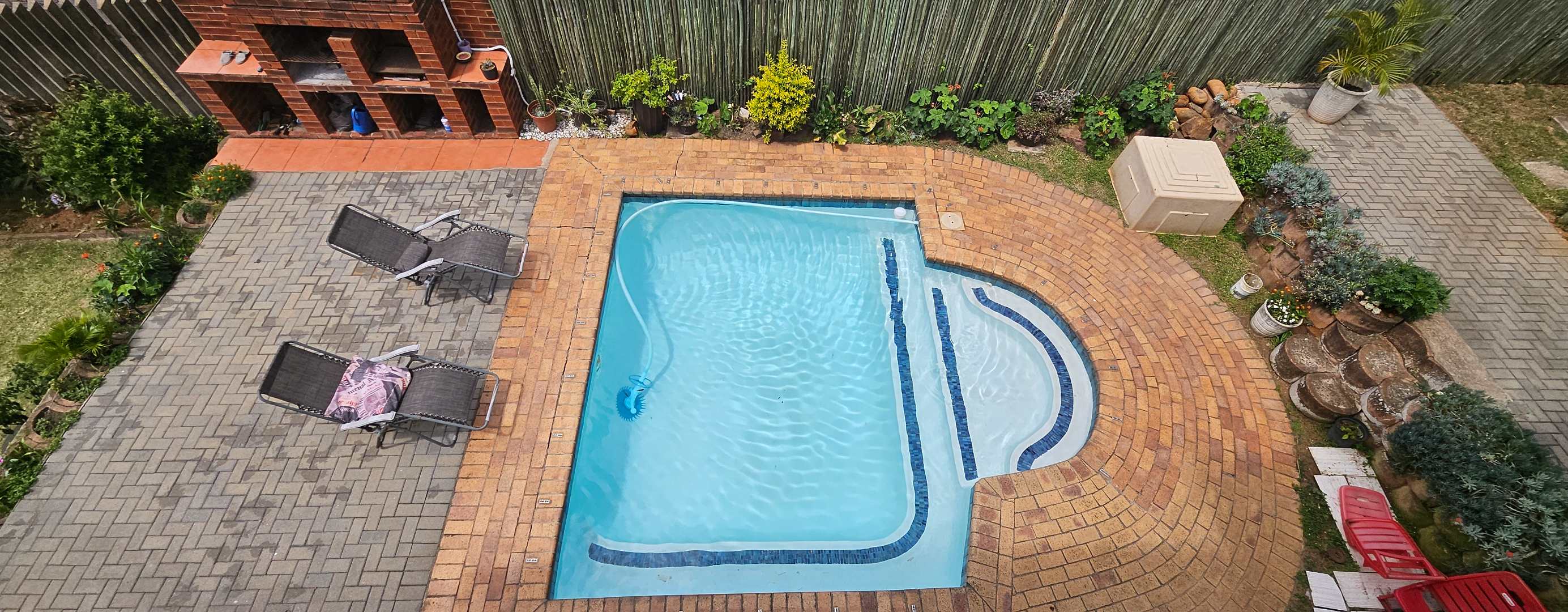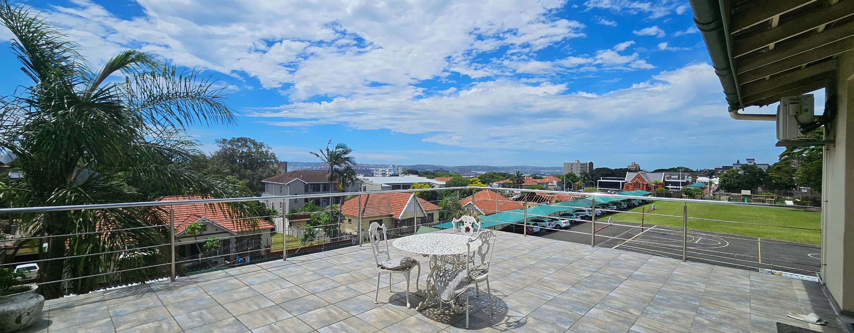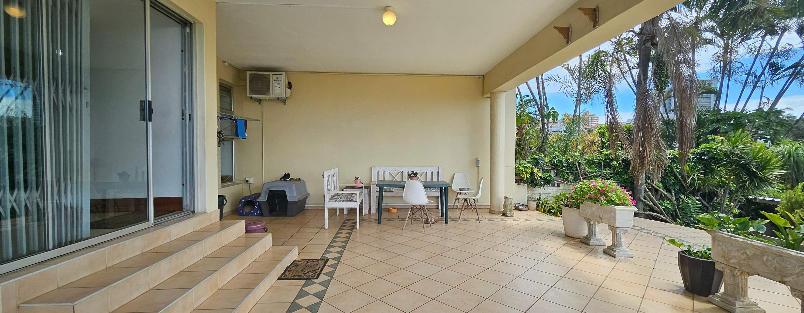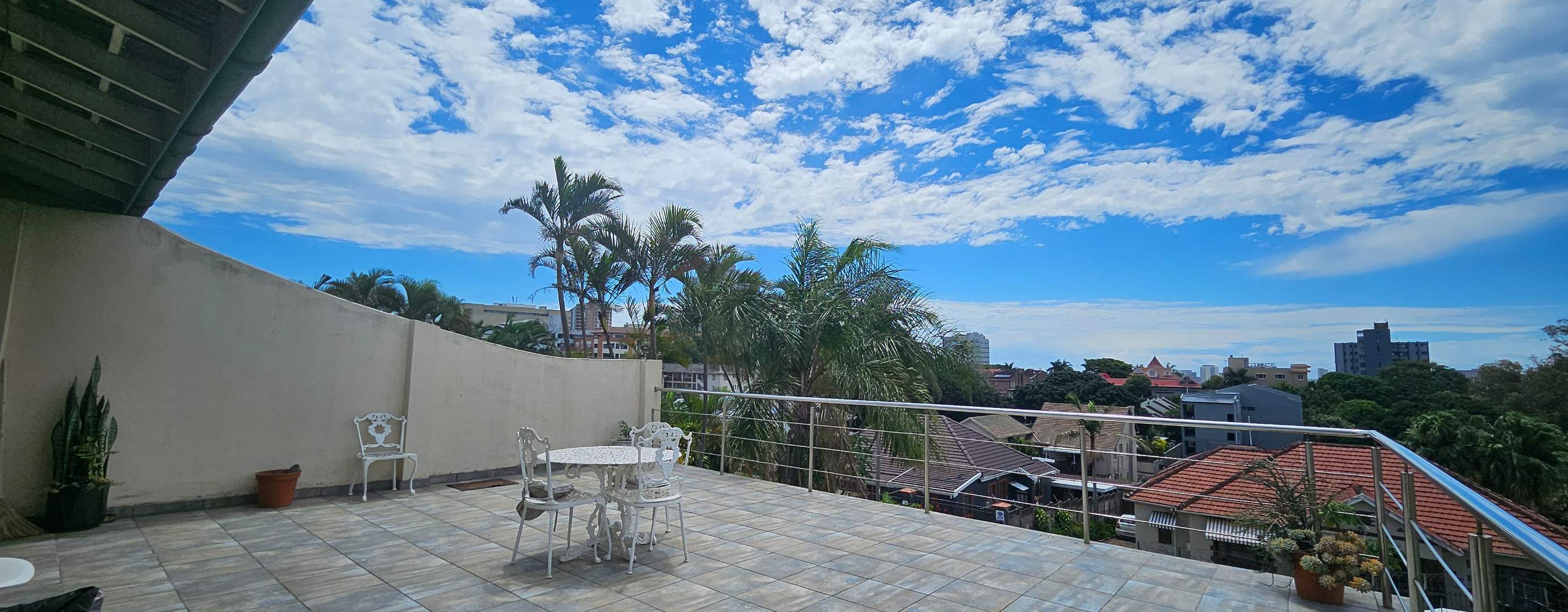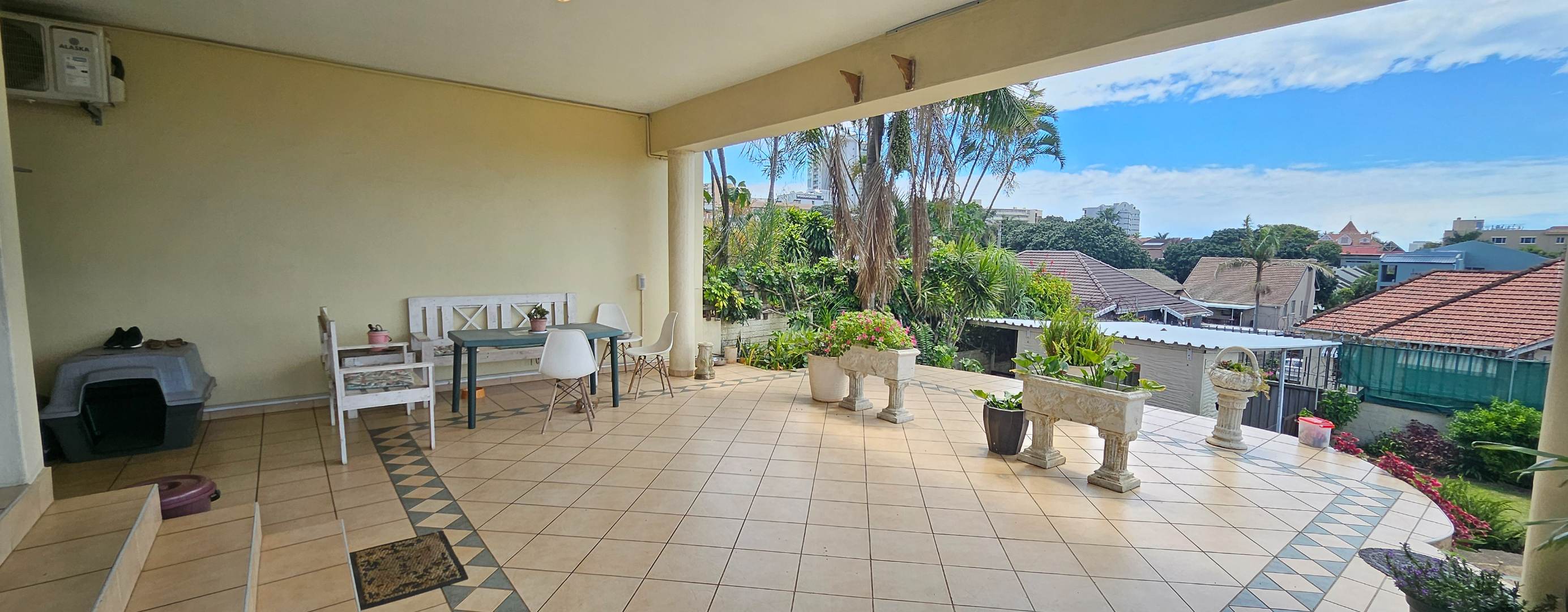 Discover this inviting 3-bedroom residential property for sale in the sought-after suburban area of Musgrave, Durban. Boasting a generous Floor Size of 203.00 sqm on a 446.00 sqm Erf, this home offers a blend of comfortable living and vibrant outdoor spaces. The multi-level design, complemented by a lush, tiered tropical garden with mature palm trees, creates an appealing kerb presence and a private oasis. Step inside to find an open-plan layout that seamlessly connects the living areas. The property features one lounge, a dedicated dining room, and a functional kitchen equipped with ample wooden cabinetry and black countertops. Natural light fills the spaces, enhancing the welcoming atmosphere. With three well-proportioned bedrooms and two bathrooms, including one ensuite, this home provides comfortable accommodation for families. The outdoor areas are a true highlight, designed for relaxation and entertaining. Enjoy a private swimming pool, perfect for Durban's warm climate, alongside a built-in brick braai area for al fresco dining. Extensive paved patios and a spacious upper balcony offer multiple vantage points to take in the panoramic city and distant sea views. The property also includes two parking spaces and a well-maintained garden. Security is well-addressed with features such as an access gate, security gates, electric fencing, and an intercom system, ensuring peace of mind. Modern conveniences include air conditioning and fibre connectivity, catering to contemporary lifestyle needs. Pets are also welcome, making this an ideal family home. Musgrave is a well-established and desirable suburb in Durban, known for its convenient location and access to amenities. This property offers a fantastic opportunity to own a home with significant outdoor appeal and stunning views in a vibrant community. Key Features: * 3 Bedrooms, 2 Bathrooms (1 Ensuite) * Private Swimming Pool & Built-in Braai * Panoramic City & Sea Views * Lush Tropical Garden & Paved Patios * Spacious Upper Balcony * Open-Plan Living Areas * Air Conditioning & Fibre Connectivity * Secure with Electric Fencing & Access Gate * 2 Parking Spaces * Pet-Friendly