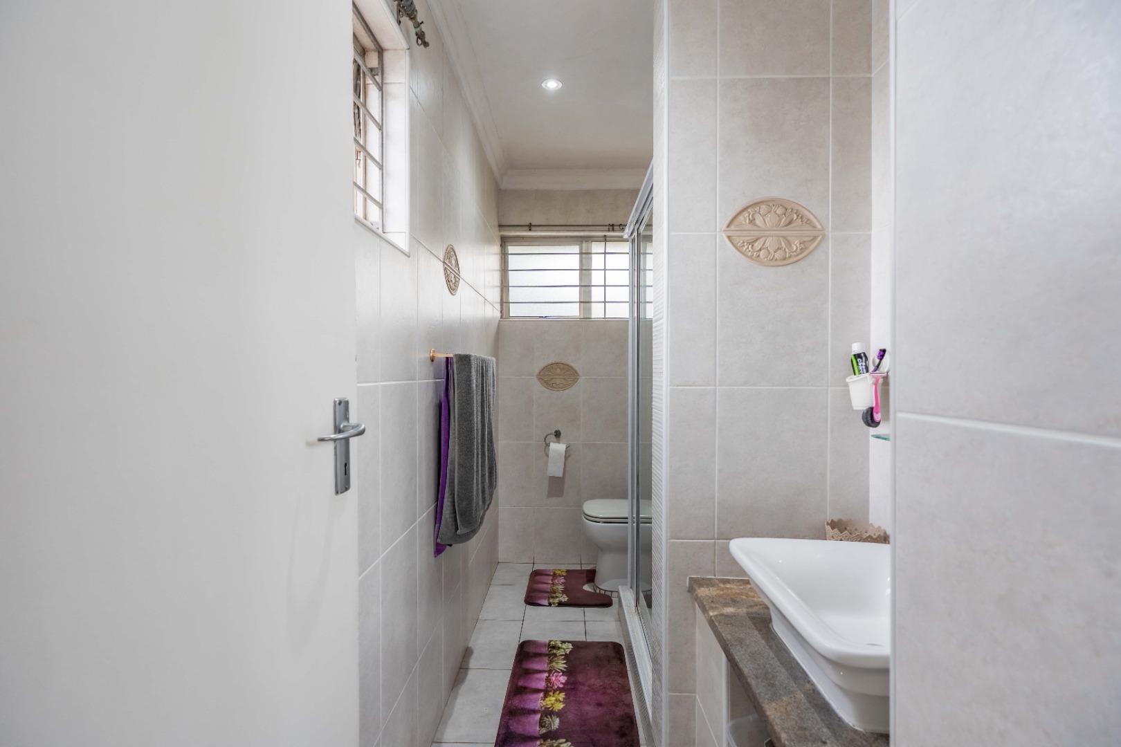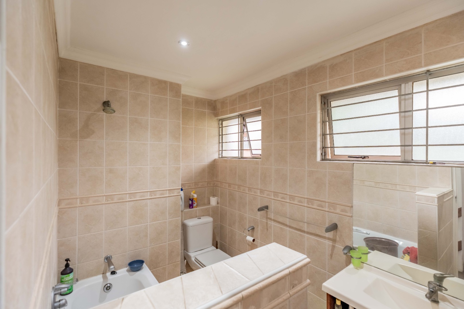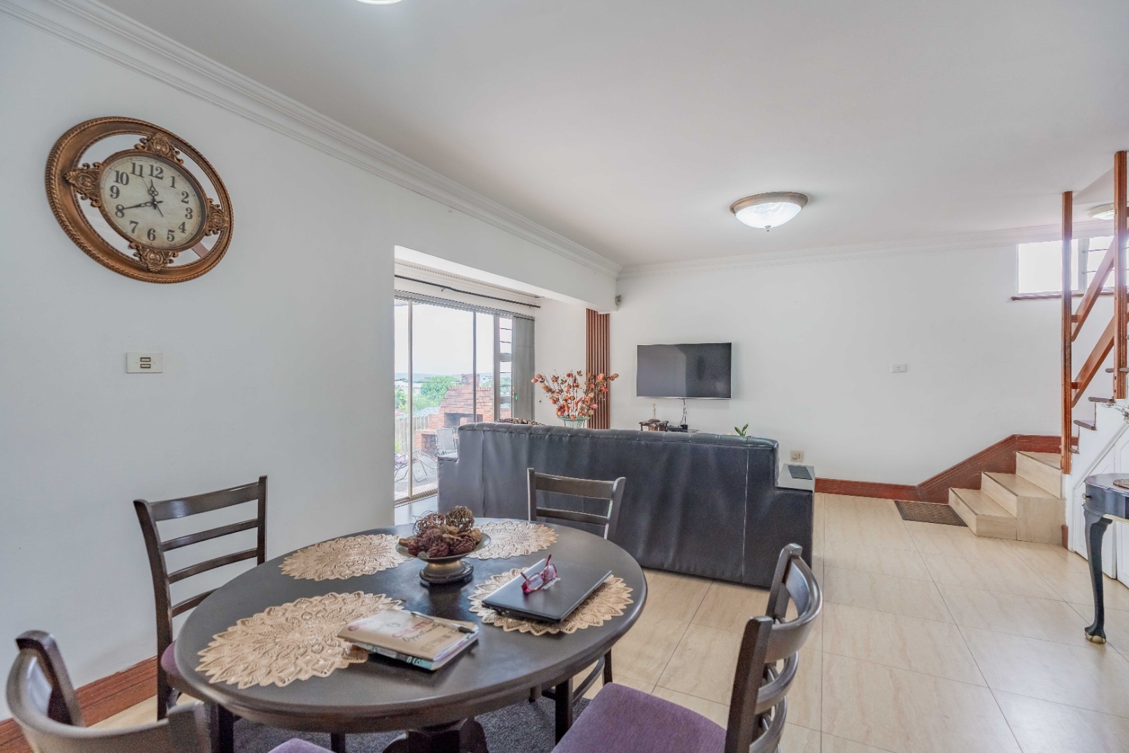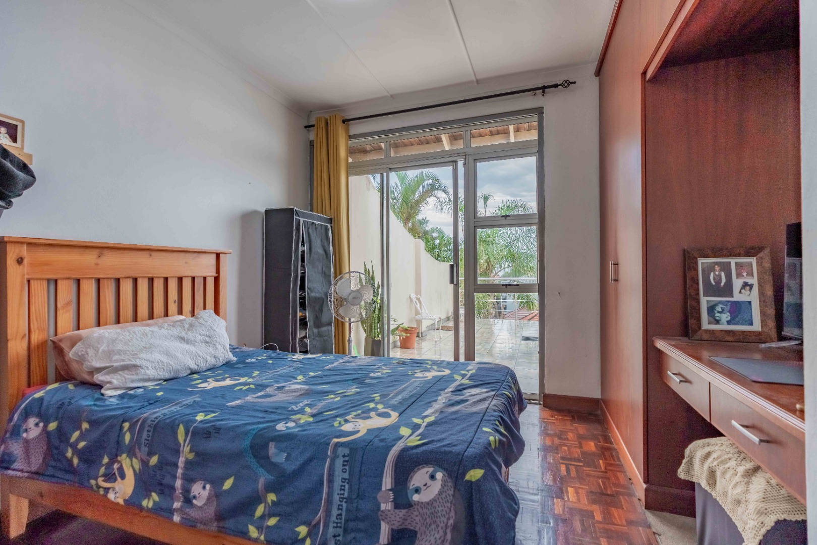 The private garden features a lawned area, built-in braai and your own exclusive swimming pool, creating an ideal indoor-outdoor lifestyle. Upstairs offers three well-sized bedrooms and two bathrooms, including a main en-suite. Both the main and second bedrooms open onto a large entertainment balcony with beautiful views — perfect for morning coffee or evening relaxation.
