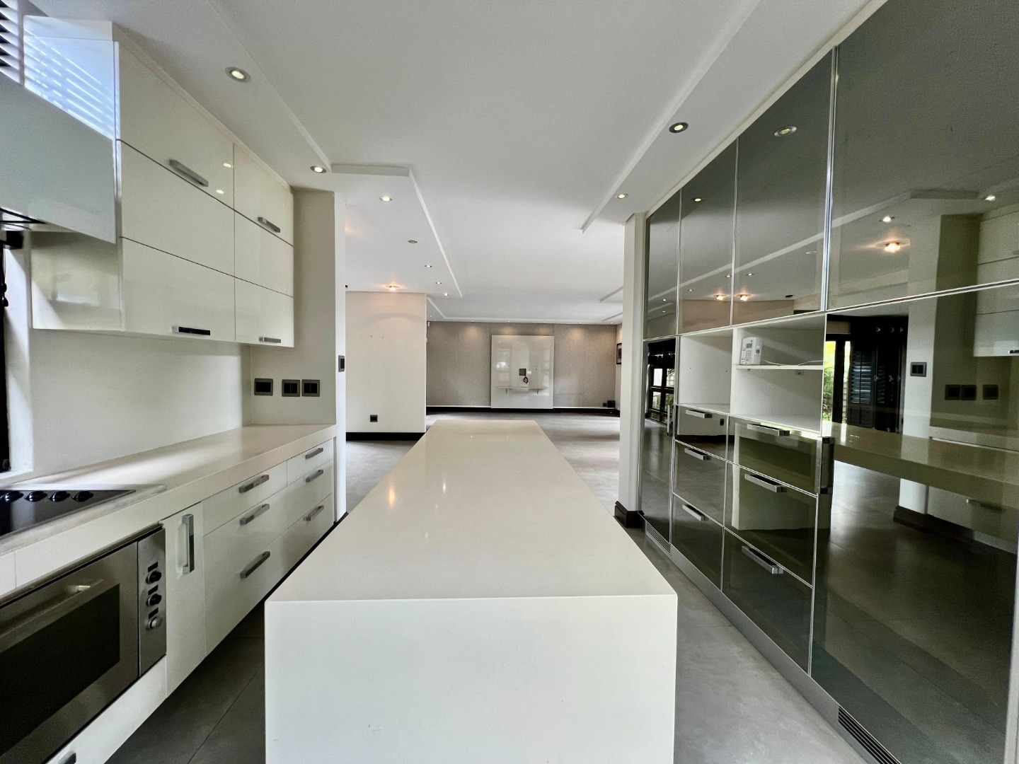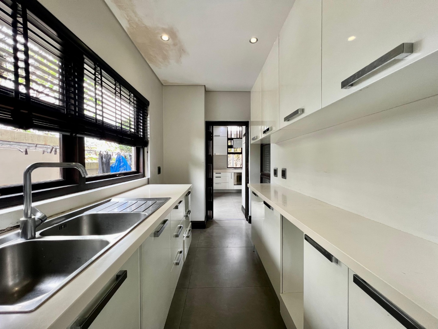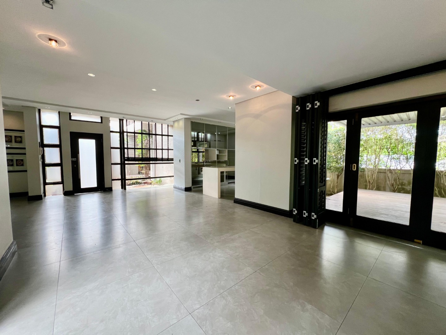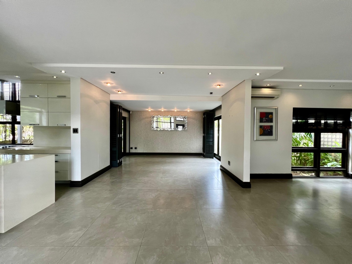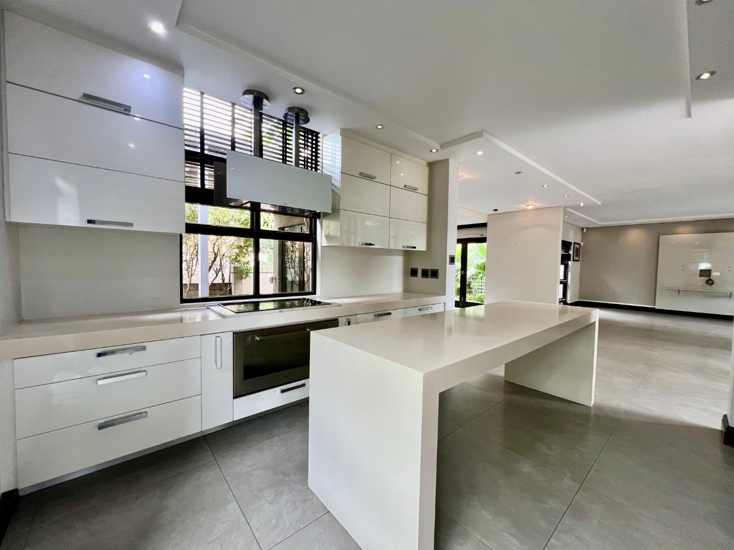The home features a sleek, contemporary kitchen with a separate scullery, flowing seamlessly into a spacious open-plan lounge and dining area. This inviting living space extends onto a deck, perfect for entertaining or relaxing.
