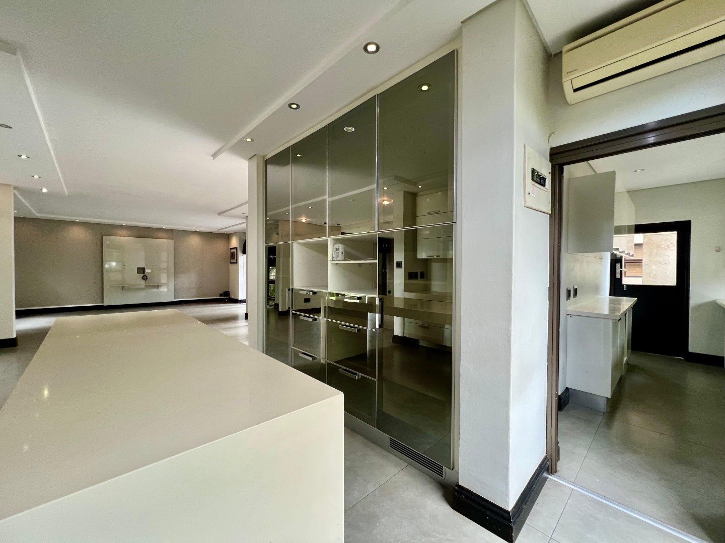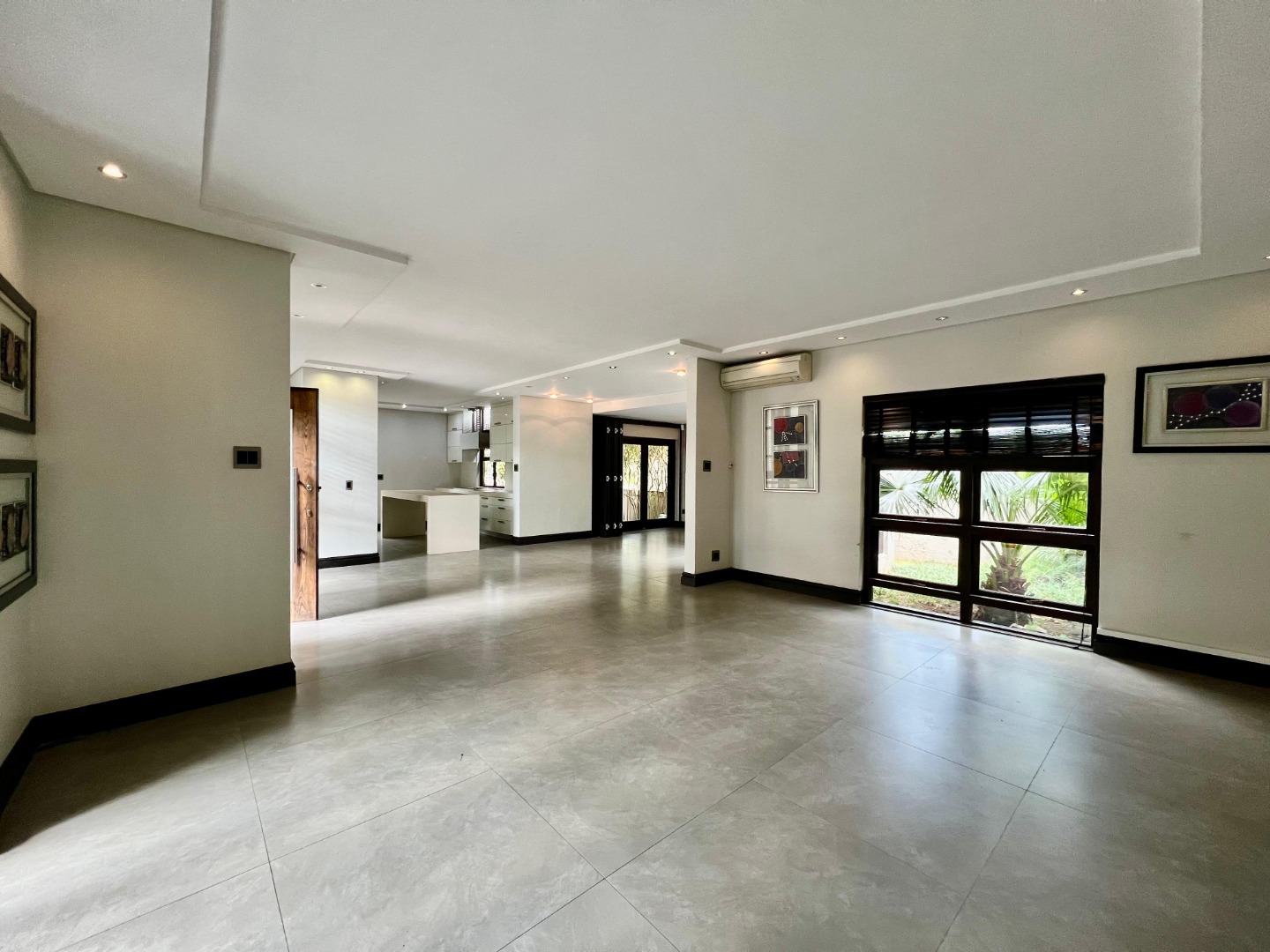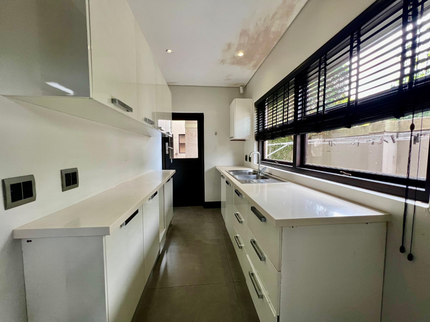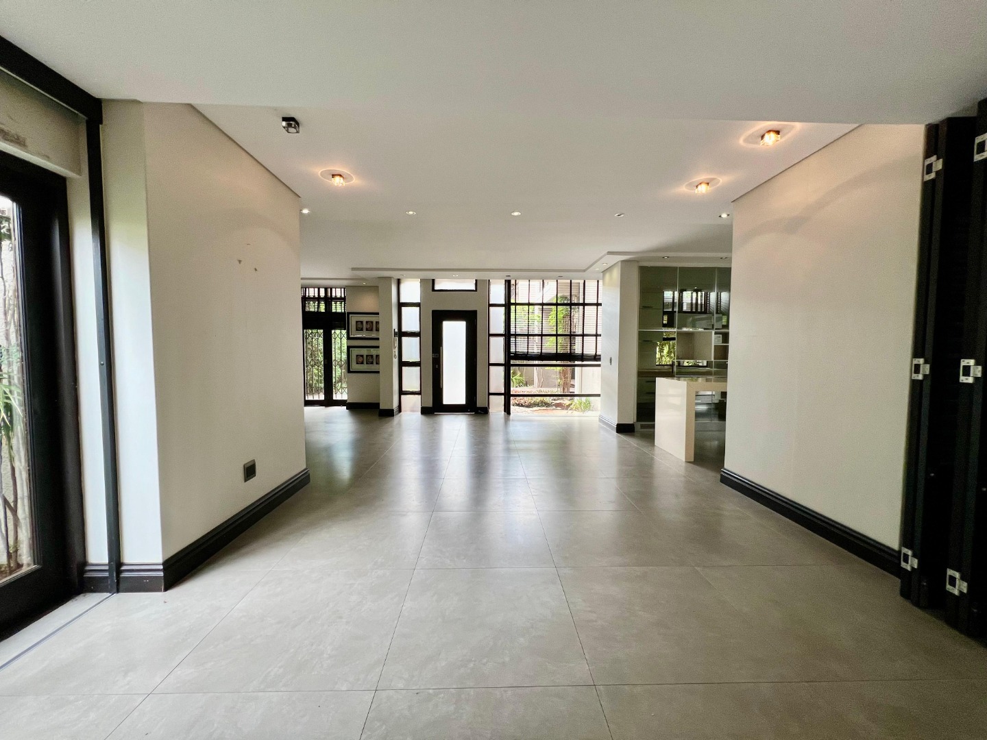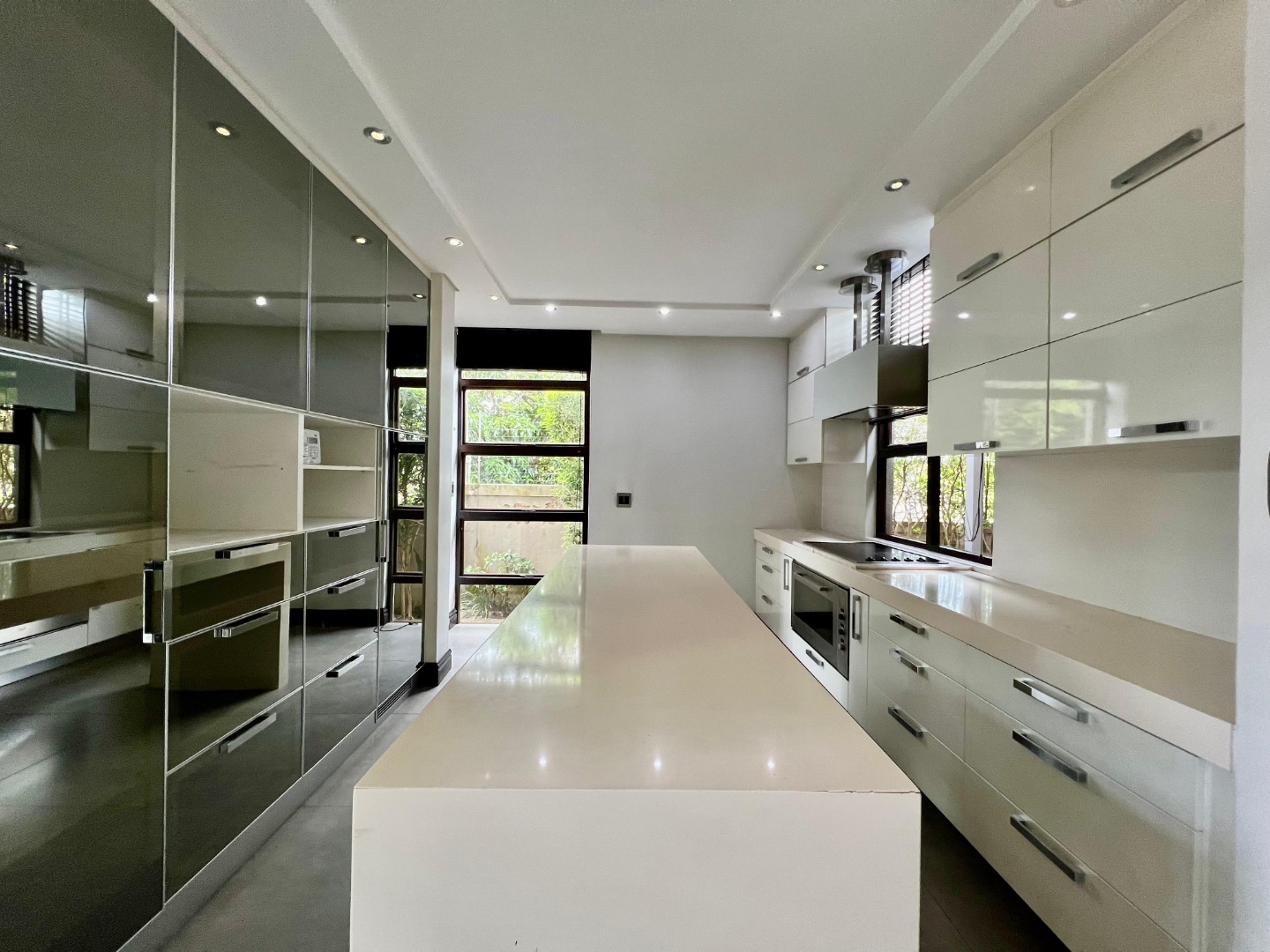 The home features a sleek, contemporary kitchen with a separate scullery, flowing seamlessly into a spacious open-plan lounge and dining area. This inviting living space extends onto a deck, perfect for entertaining or relaxing.