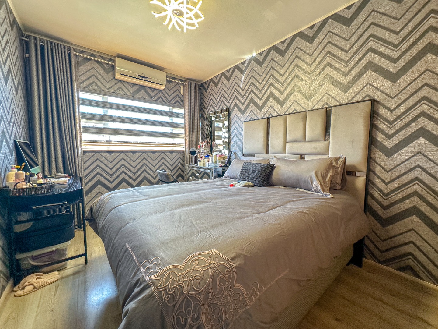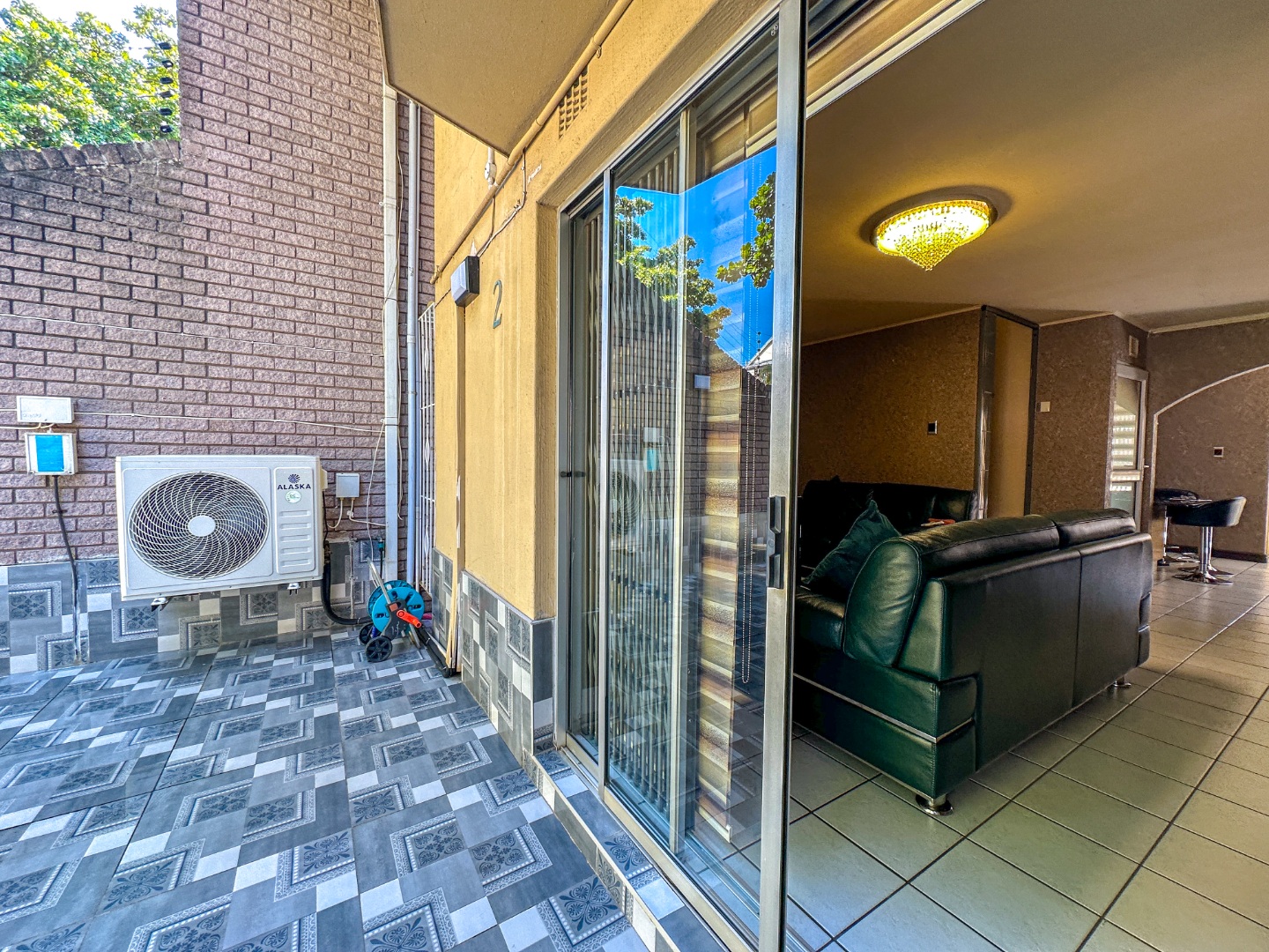 Spanning 117 square metres, the interior features a welcoming lounge area, providing ample space for relaxation and entertaining. The property includes a functional kitchen, designed to cater to everyday needs. A notable advantage is the inclusion of air conditioning, ensuring comfort throughout the year, complemented by a private balcony offering an outdoor retreat.