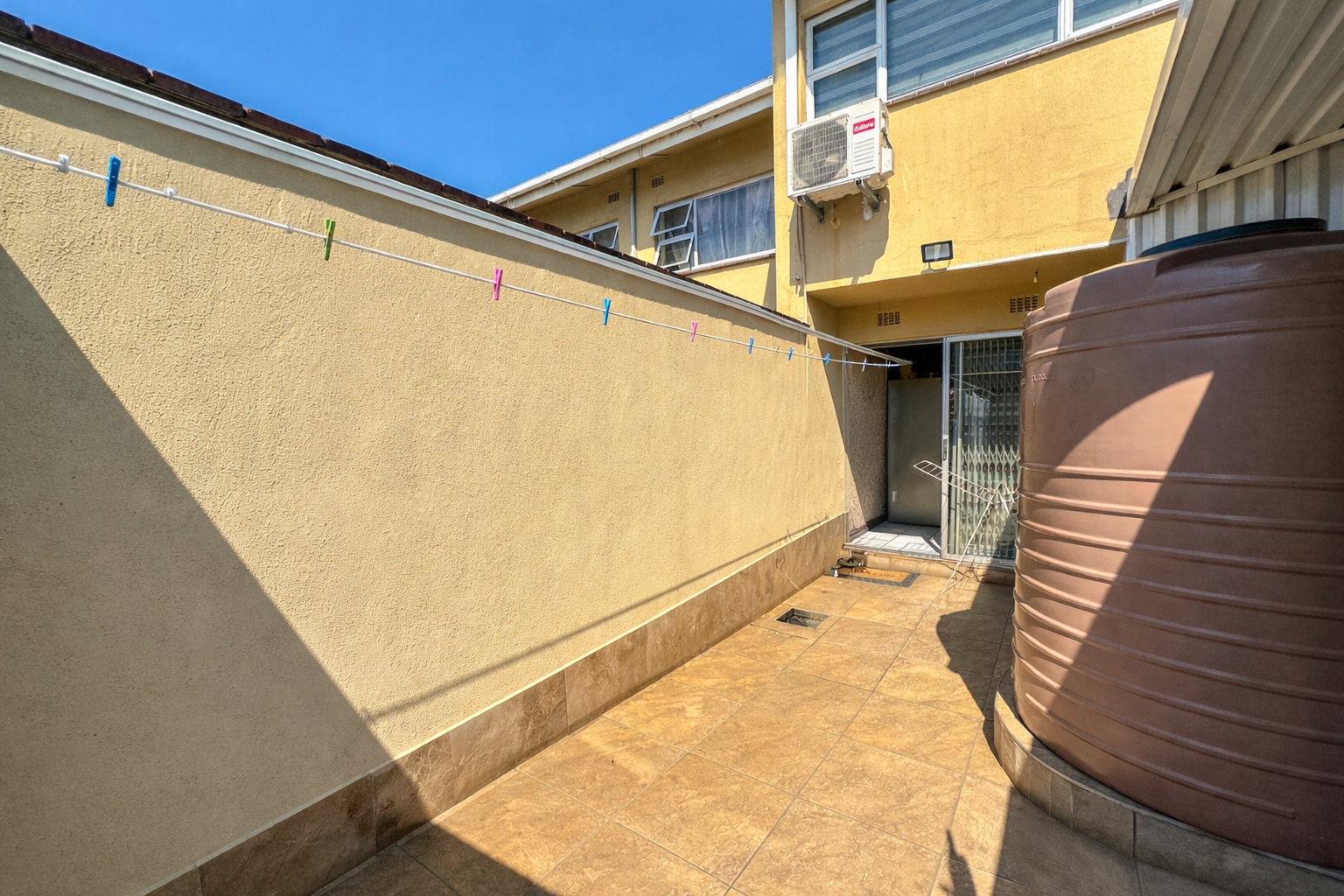The residence comprises three well-proportioned bedrooms and 1.5 bathrooms, providing practical accommodation for residents. Parking is facilitated by a single garage, offering secure storage for a vehicle. The complex benefits from electric fencing, contributing to a secure living environment, and also features water tanks, promoting sustainable living. Paved areas enhance the exterior appeal and functionality.
