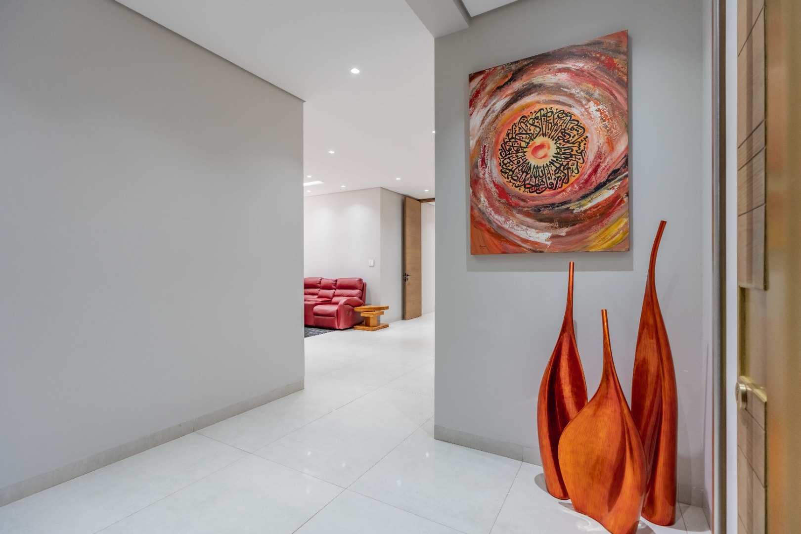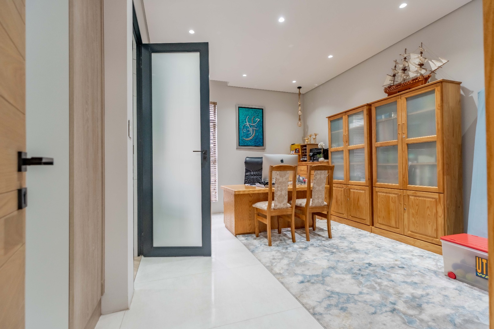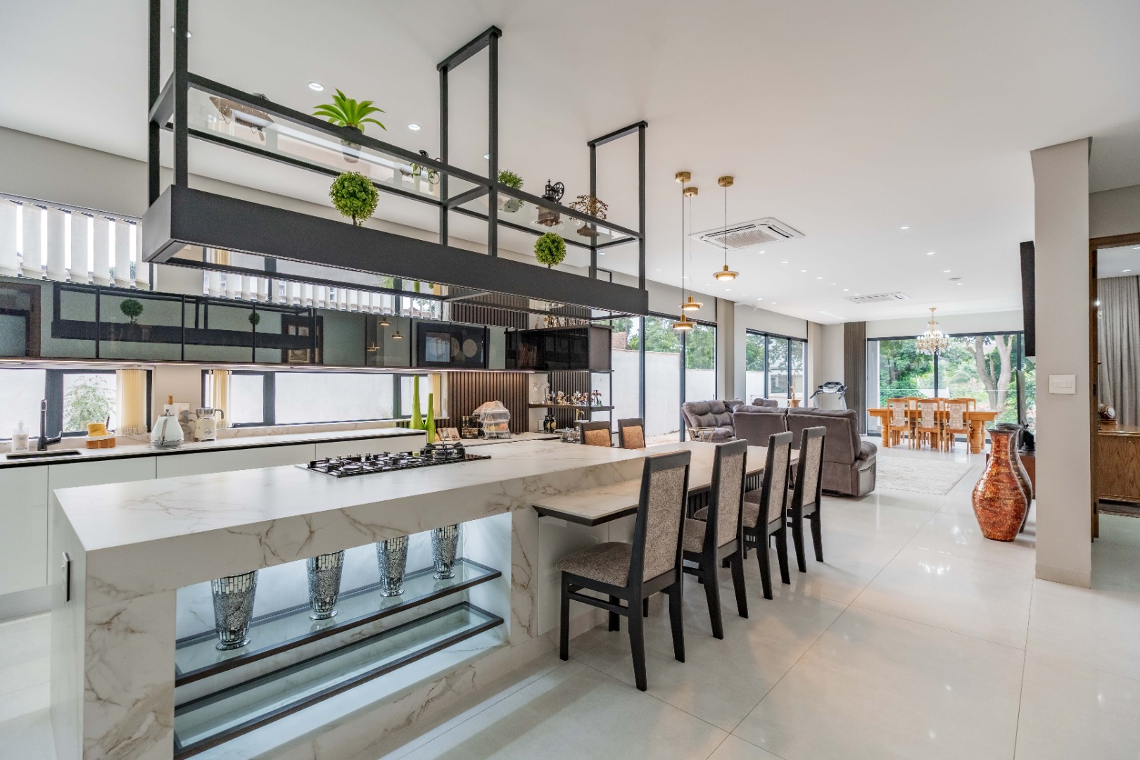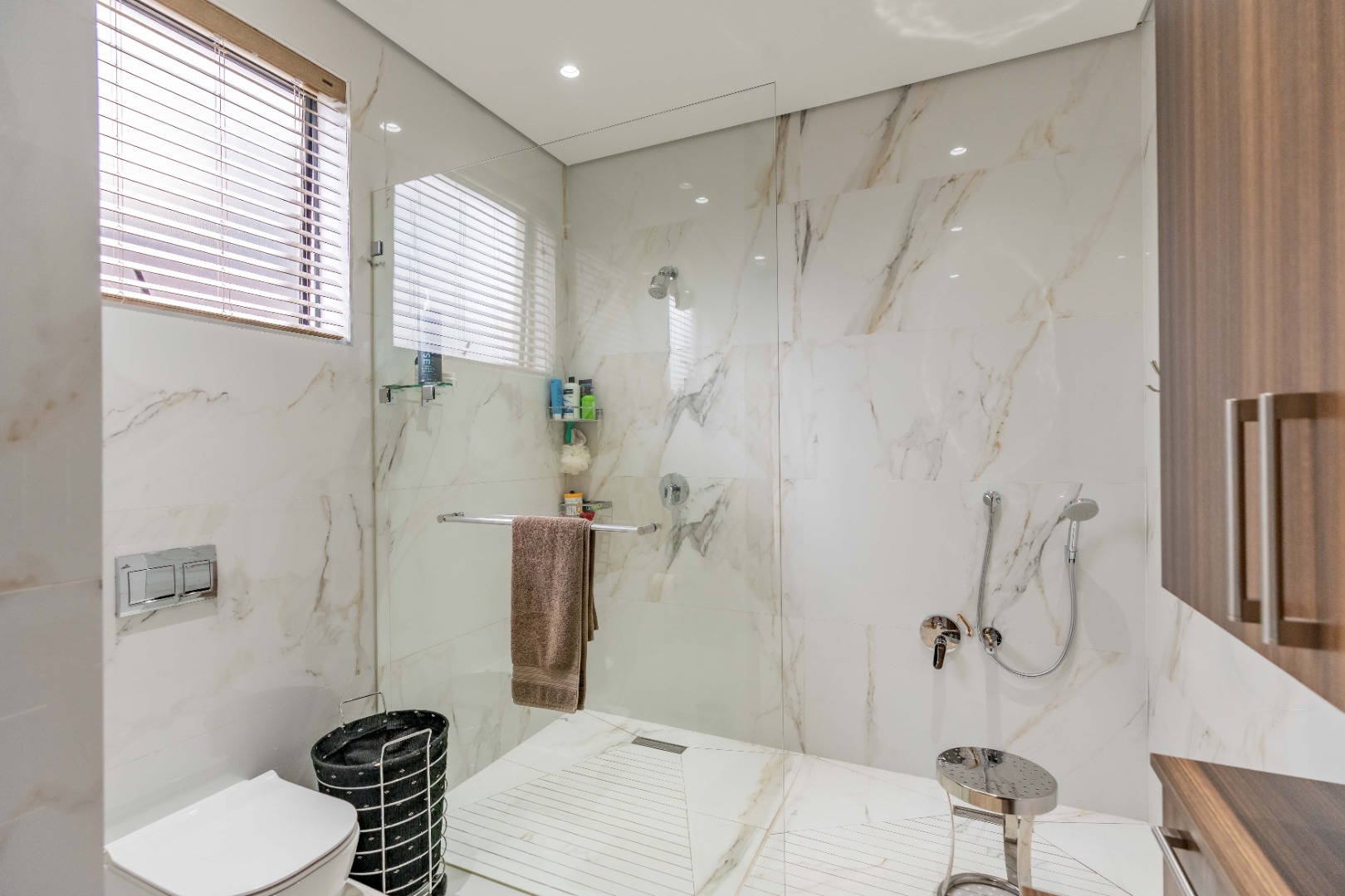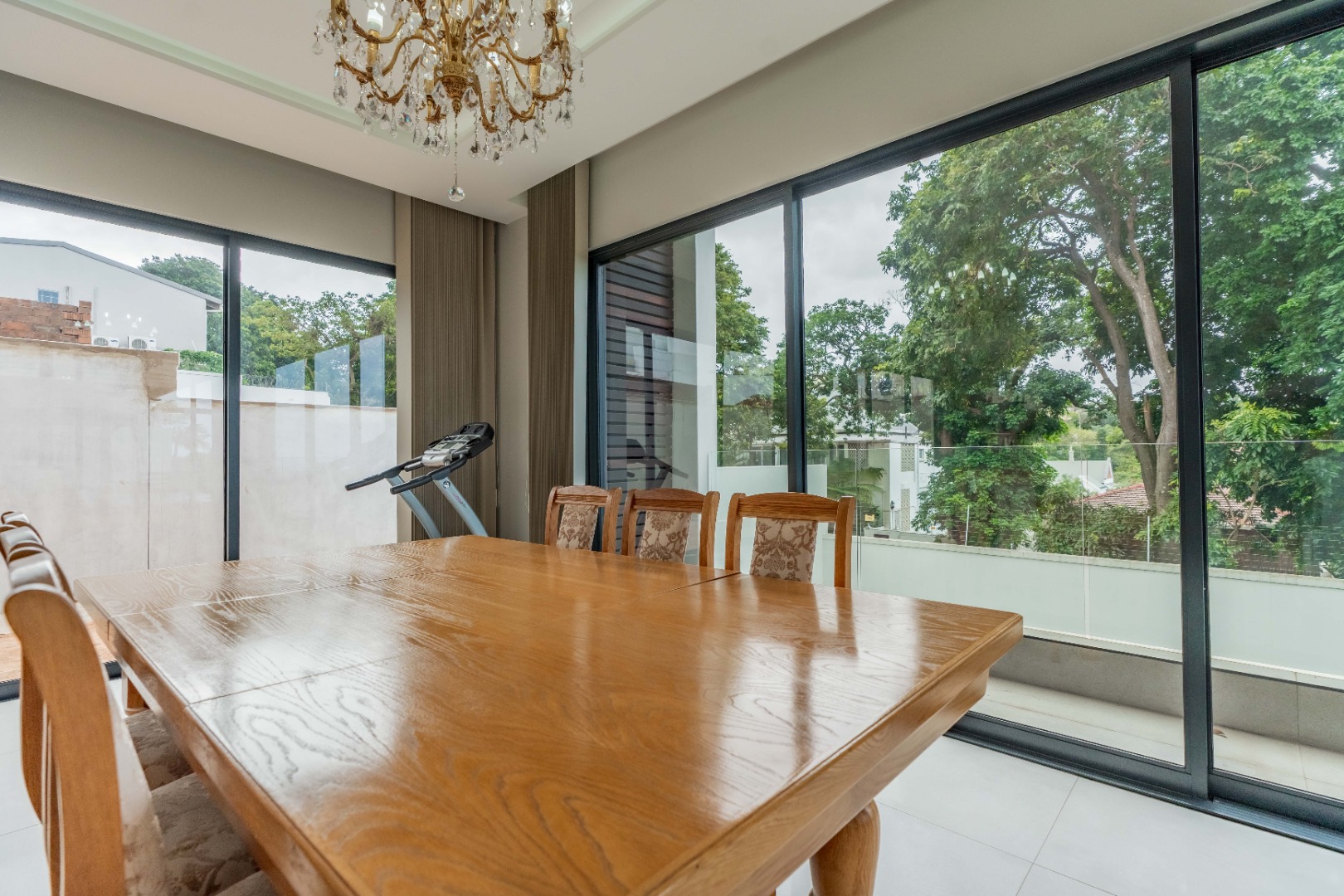 Recently built and less than three years old, the unit showcases high-spec finishes supplied by Classic & Lifestyle, including porcelain tiles, premium sanitaryware, Trellidoor mosquito nets, wave-track curtain rails, and two geysers. The custom cabinetry throughout the bedrooms, kitchen, scullery, and bathrooms—with Dekton stone surfaces—was designed and installed by Kitchen Studio. The kitchen includes a new Siemens oven and gas stove, and the home is further enhanced with custom blinds, seven Carrier inverter air-conditioners, a full alarm system with indoor and outdoor beams, video intercom access, fibre connectivity, wired network points, satellite connections, and provisions for additional surveillance cameras. The property also includes backup water tanks connected to the main supply and a guard house, with security staff currently on duty from 6pm to 6am. Optional extras include a Victron 15kVA inverter system with solar panels, a Siemens integrated fridge and freezer, and bedroom curtains, with certain items excluded and listed separately.