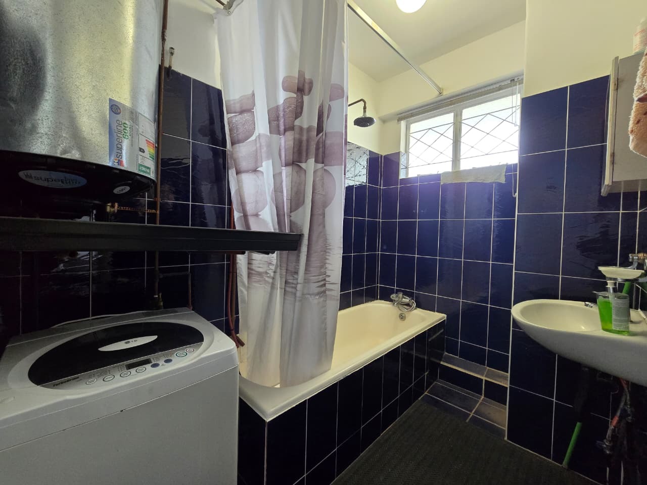 The residence offers 1.5 well-appointed bedrooms and 1.5 bathrooms. Bedrooms benefit from ample natural light and practical features like ceiling fans and built-in storage, ensuring comfort and organisation. The bathroom includes a washing machine for added convenience, alongside a bathtub with an overhead shower, all set within fully tiled walls and floor.