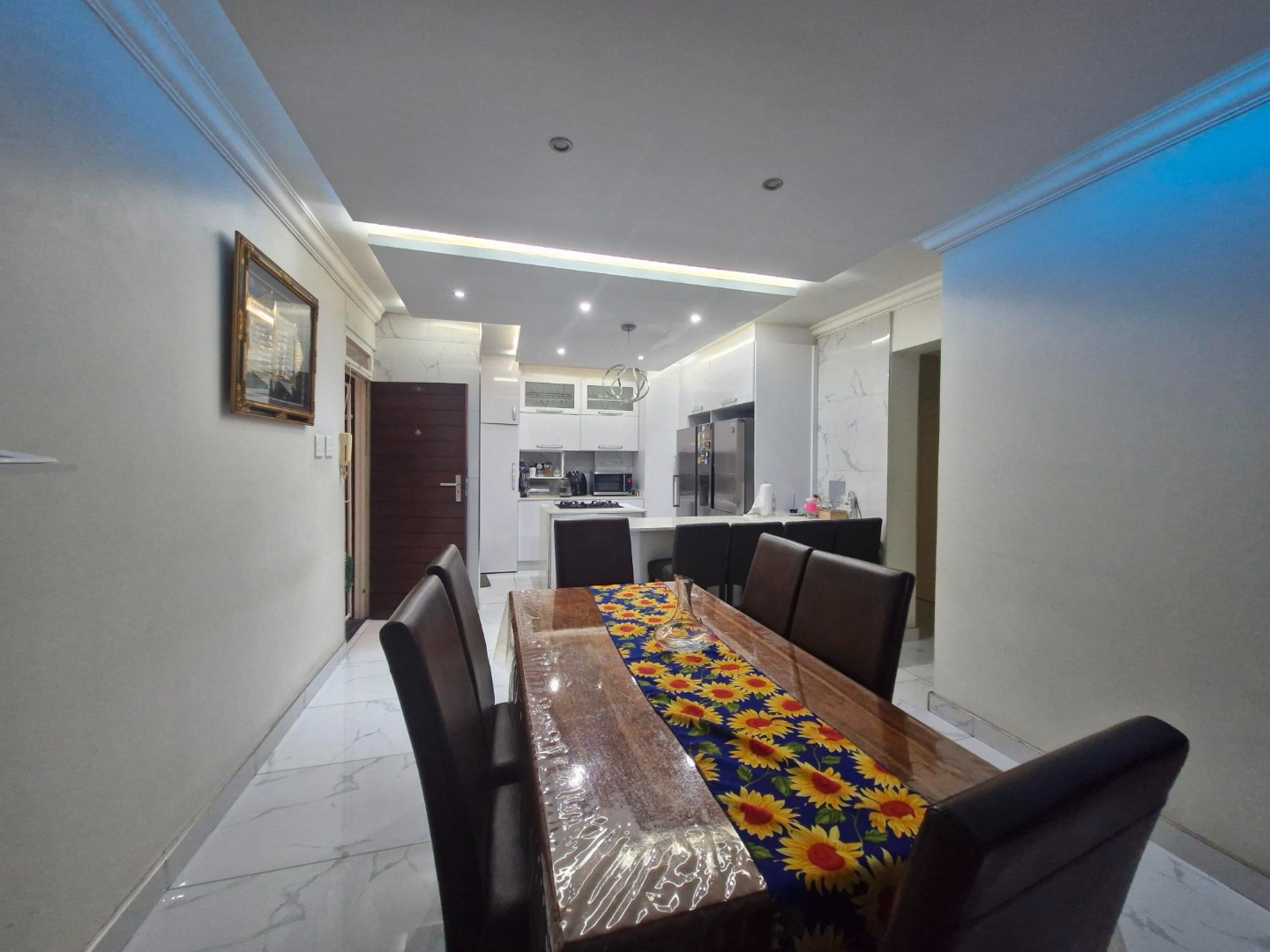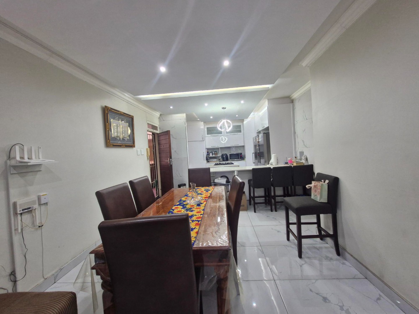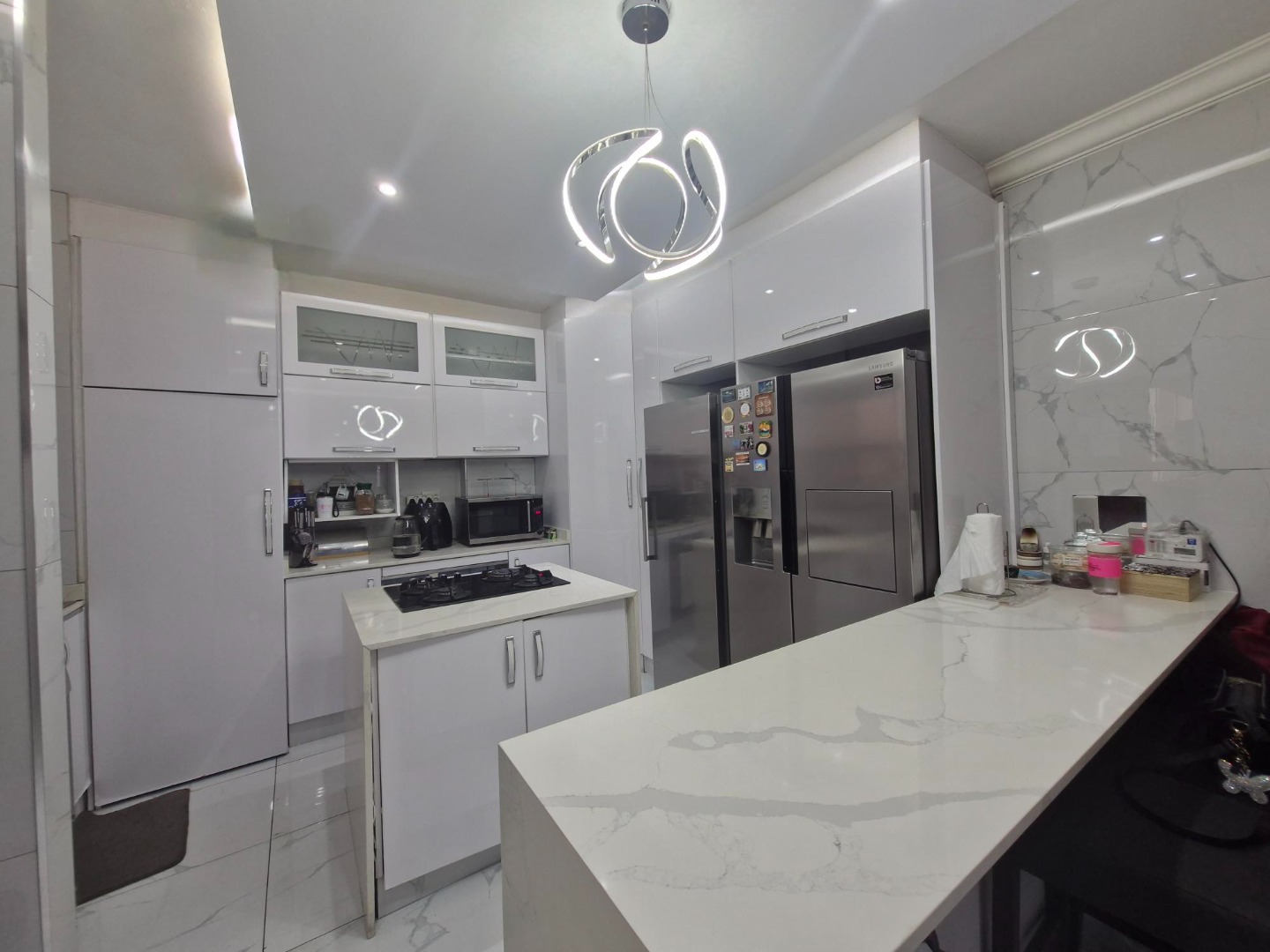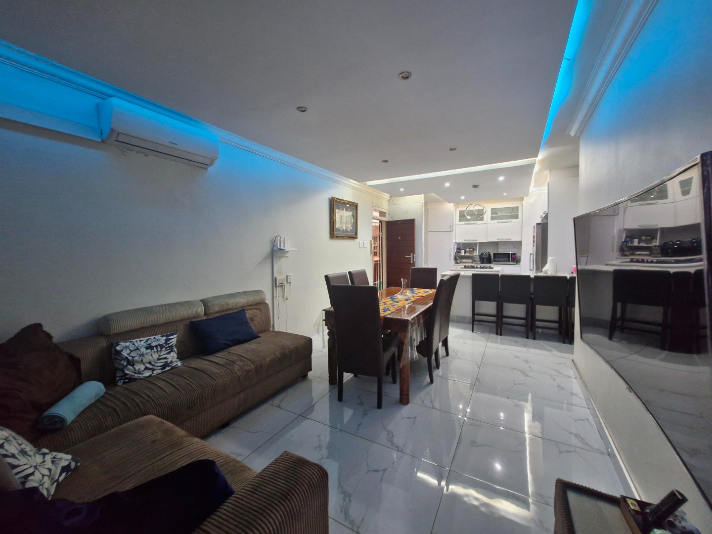 The open-plan layout seamlessly connects the pristine, modern kitchen to the lounge and dining areas, making it perfect for entertaining. The entire apartment is tiled and upgraded, offering a clean, contemporary feel.