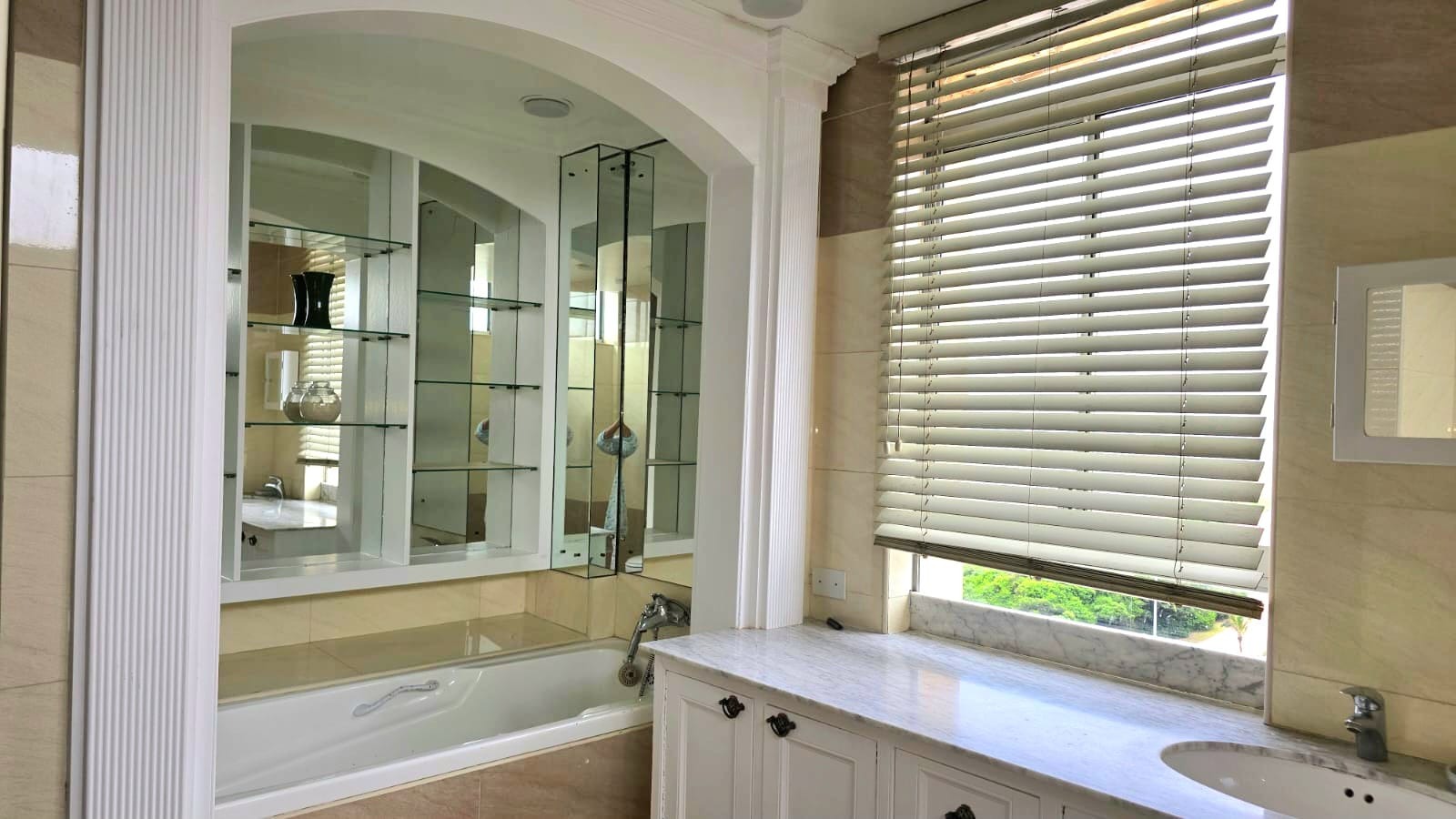 This spacious home features 3 large bedrooms with built-in cupboards, including a spectacular walk-in closet in the main bedroom. There are 2 modern bathrooms with marble finishes.
