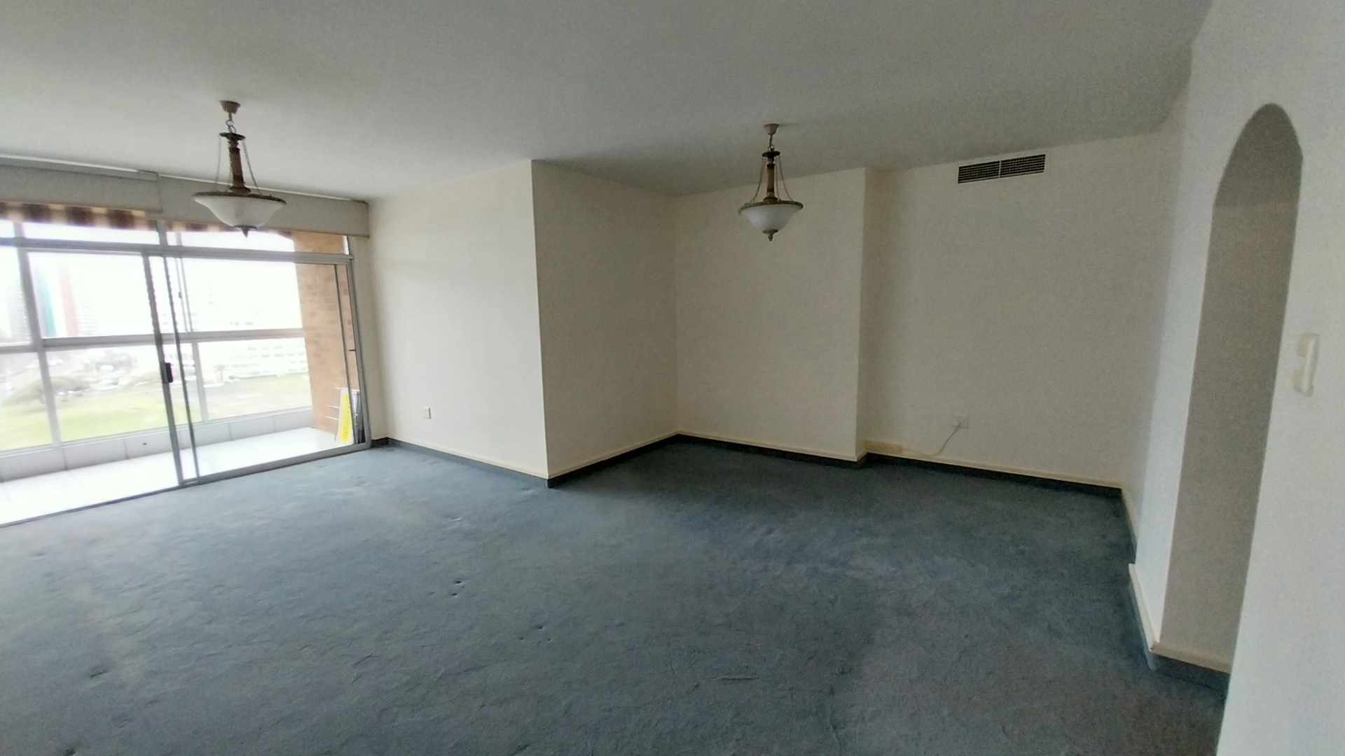 Huge, expansive lounge area leading to an enclosed balcony with stunning ocean views,.