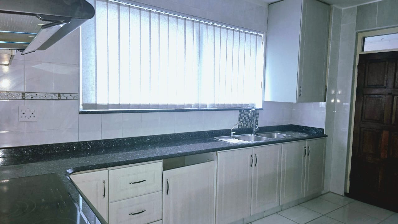 The kitchen opens conveniently with a serving nook, making entertaining effortless.