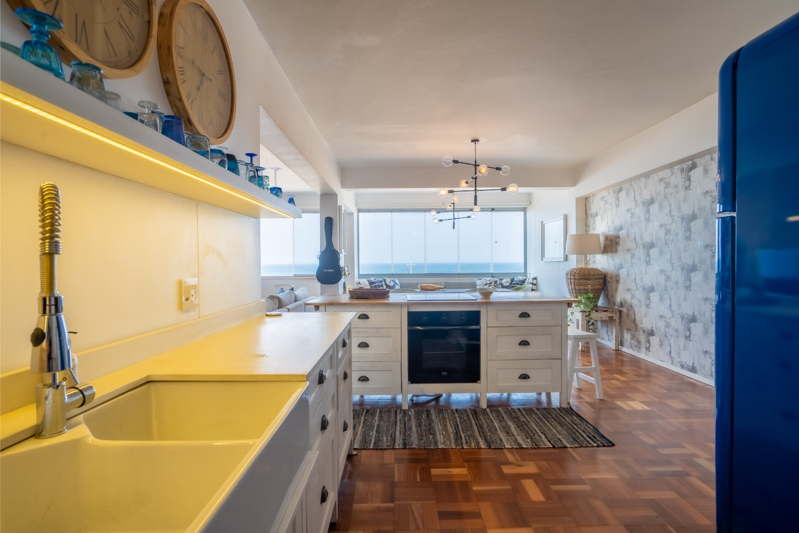 Two flats converted into one massive 200sqm gem . If you're looking for a permanent holiday vibe, this is it! Spacious bedrooms, bathrooms, and an open-plan kitchen/living area overlooking the beach. Frontline flat, perfect for a holiday home or permanent residence. Loads of charm and beauty, with stacked rimless windows making you feel like you're almost on the beach.
