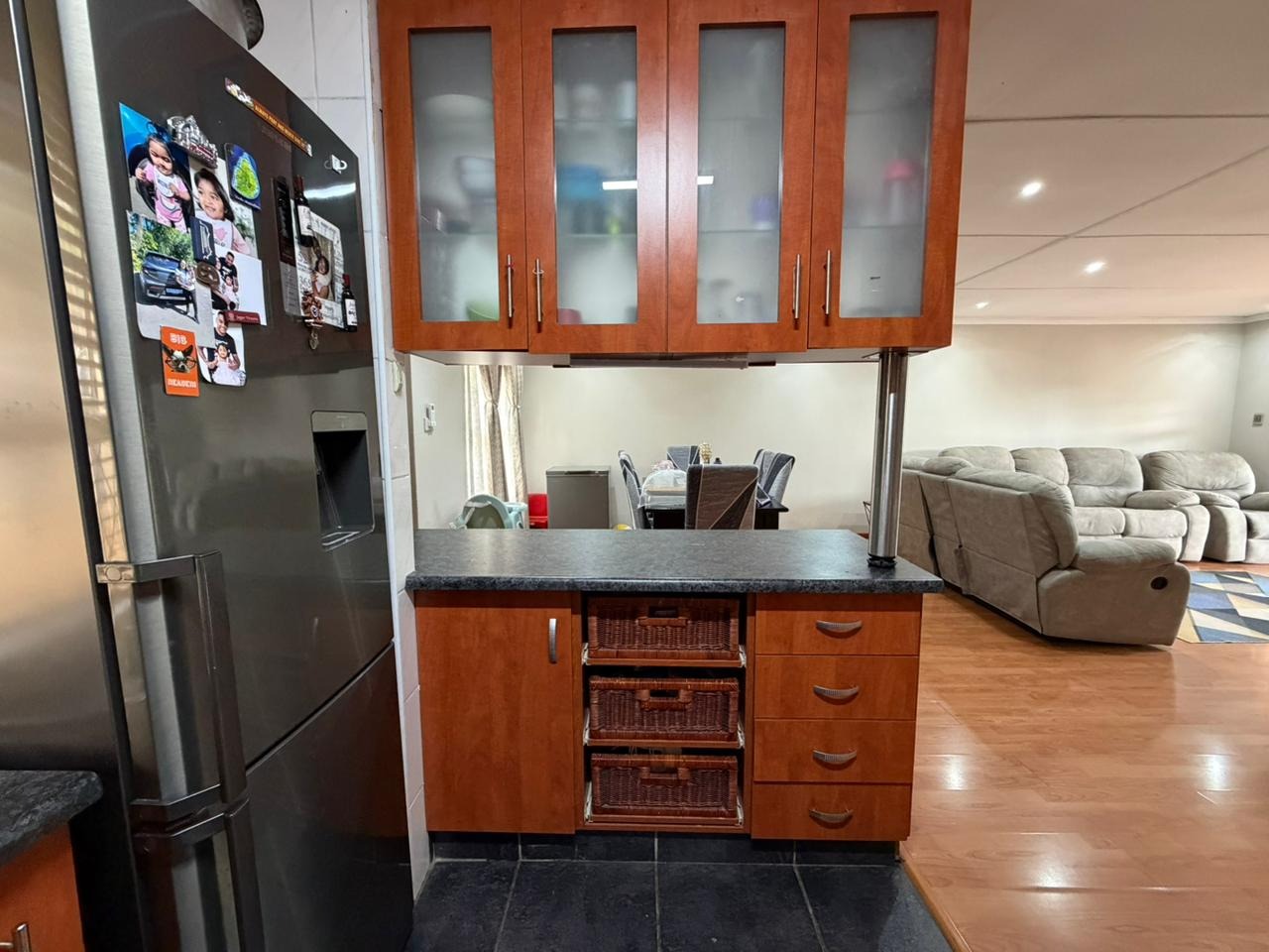 * Spacious living area with laminate flooring
