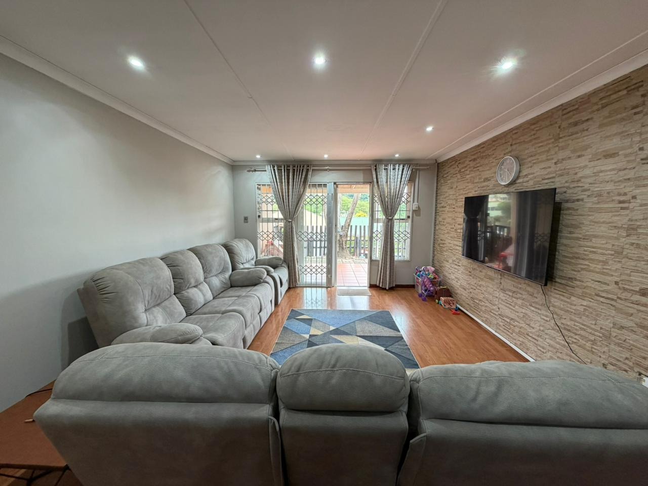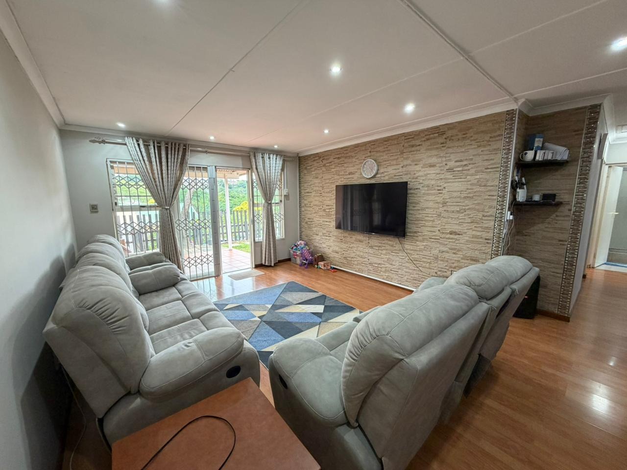 * Spacious living area with laminate flooring