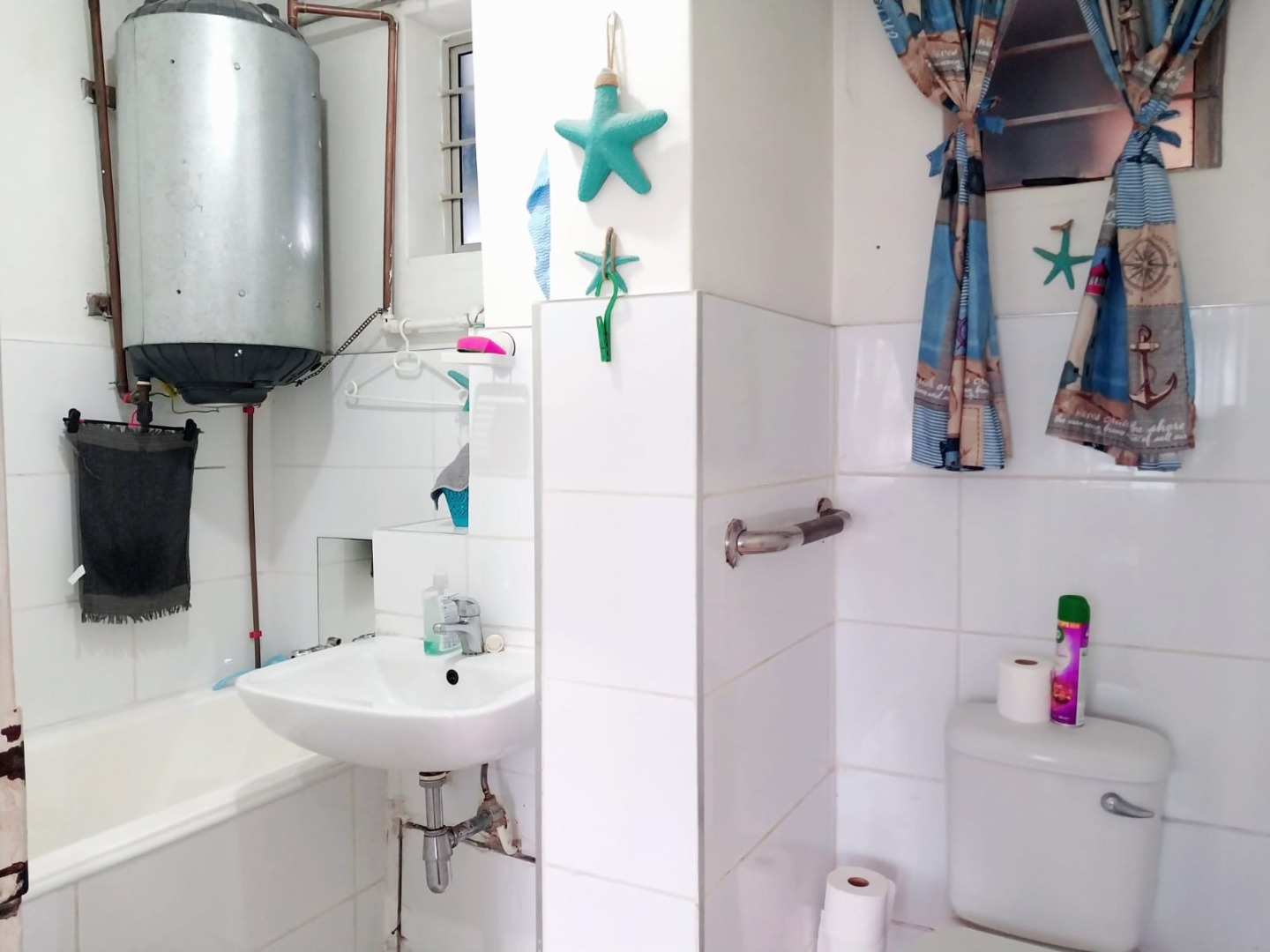 • Functional Bathroom: Compact yet practical, with bathtub, geyser, tiled walls, and homely finishes.