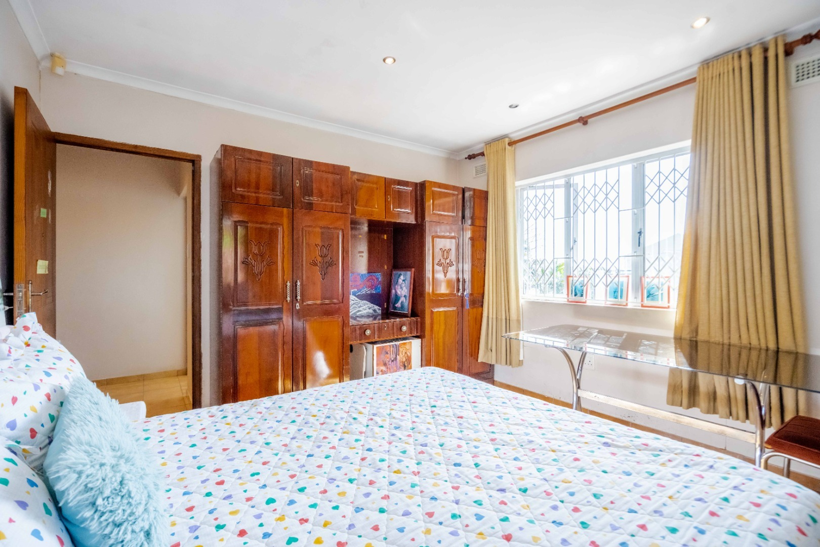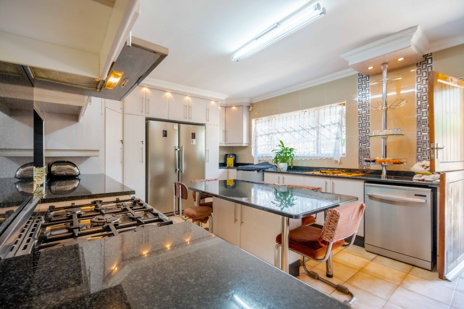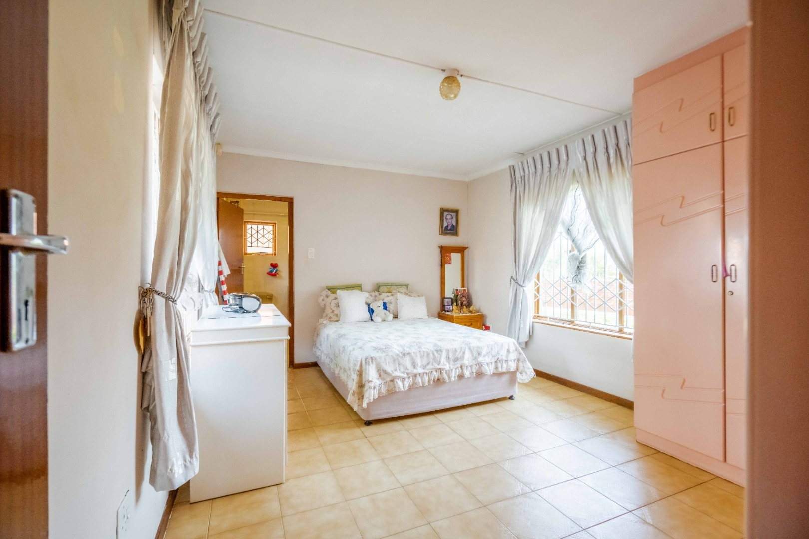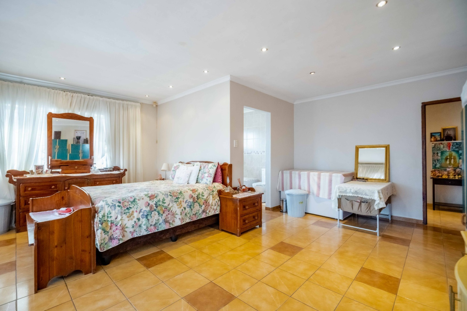 Impeccably maintained, this stunning home is located in the desirable Springfield suburb, just off Fyfe Road in Morningside. Boasting both size and character, this residence is bathed in natural light. Upon entering, you are greeted with ample parking space and a double garage that provides direct access to the home. The entrance hall leads to a cozy family lounge, seamlessly flowing into a spacious dining area with ample cupboard space. The fully fitted kitchen is beautifully finished with high-quality built-in cupboards, granite countertops, a center island, a high-powered extractor, downlighting fixtures, and plumbing for a washing machine and dishwasher. The kitchen conveniently leads to the back area of the property. The second bedroom is generously sized and features its own private ensuite, while a guest loo provides additional convenience. The master bedroom is impressively large, easily accommodating a king-size bed, and includes built-in cupboards and access to a balcony area. The main ensuite bathroom features a luxurious jacuzzi bath, a toilet, and a basin. The third and fourth bedrooms are equally spacious and well-appointed. The family bathroom is tastefully designed with a combined shower and bath, a basin, and is fully tiled throughout.